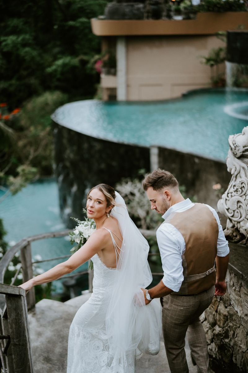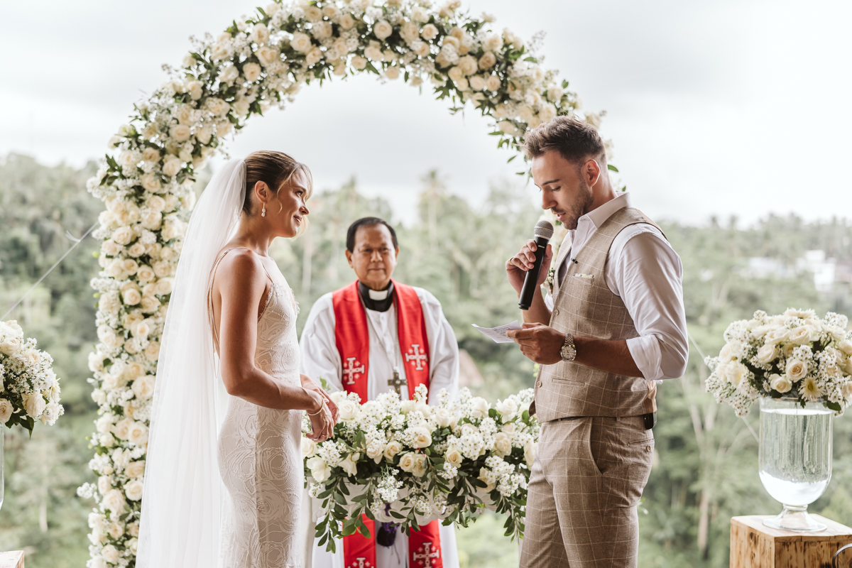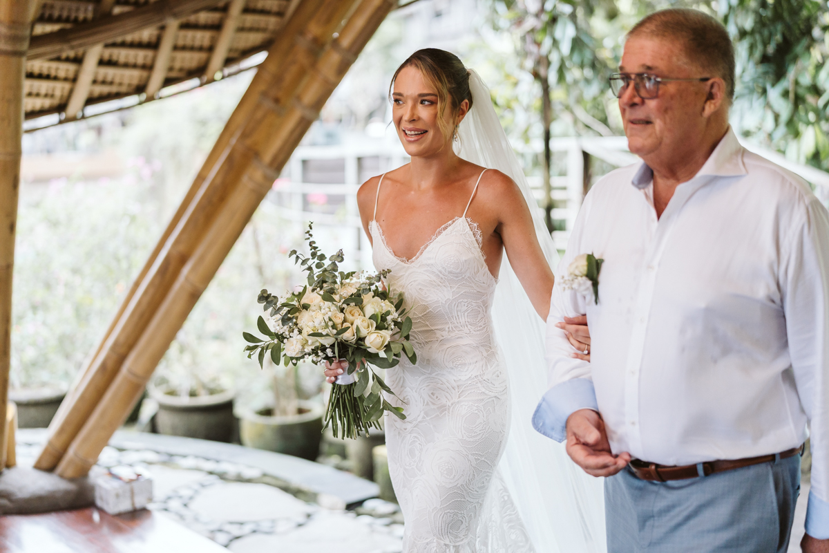 Le mariage magnifique d’Emma et Nick à Bali était une véritable célébration féerique et inoubliable. Niché au cœur des paysages tropicaux luxuriants et de l’ambiance sereine du cœur culturel de Bali, cet événement spécial du couple était une parfaite fusion de romantisme, de tradition et de beauté naturelle.