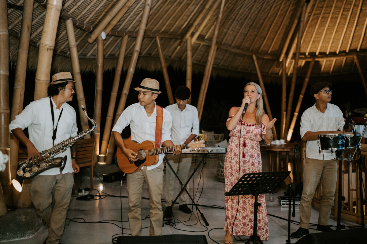 Le menu du mariage mettait en avant une fusion de la cuisine balinaise et internationale. Les invités ont savouré des plats tels que des fruits de mer grillés, un curry de coco et du satay, tout en sirotant des cocktails aux fruits exotiques.