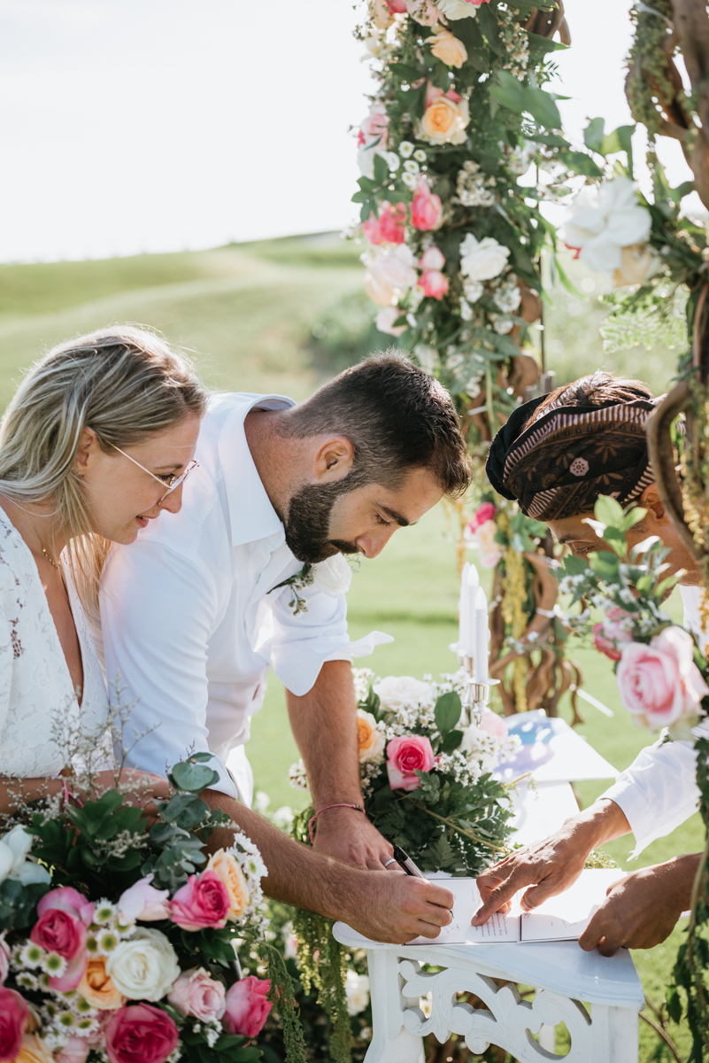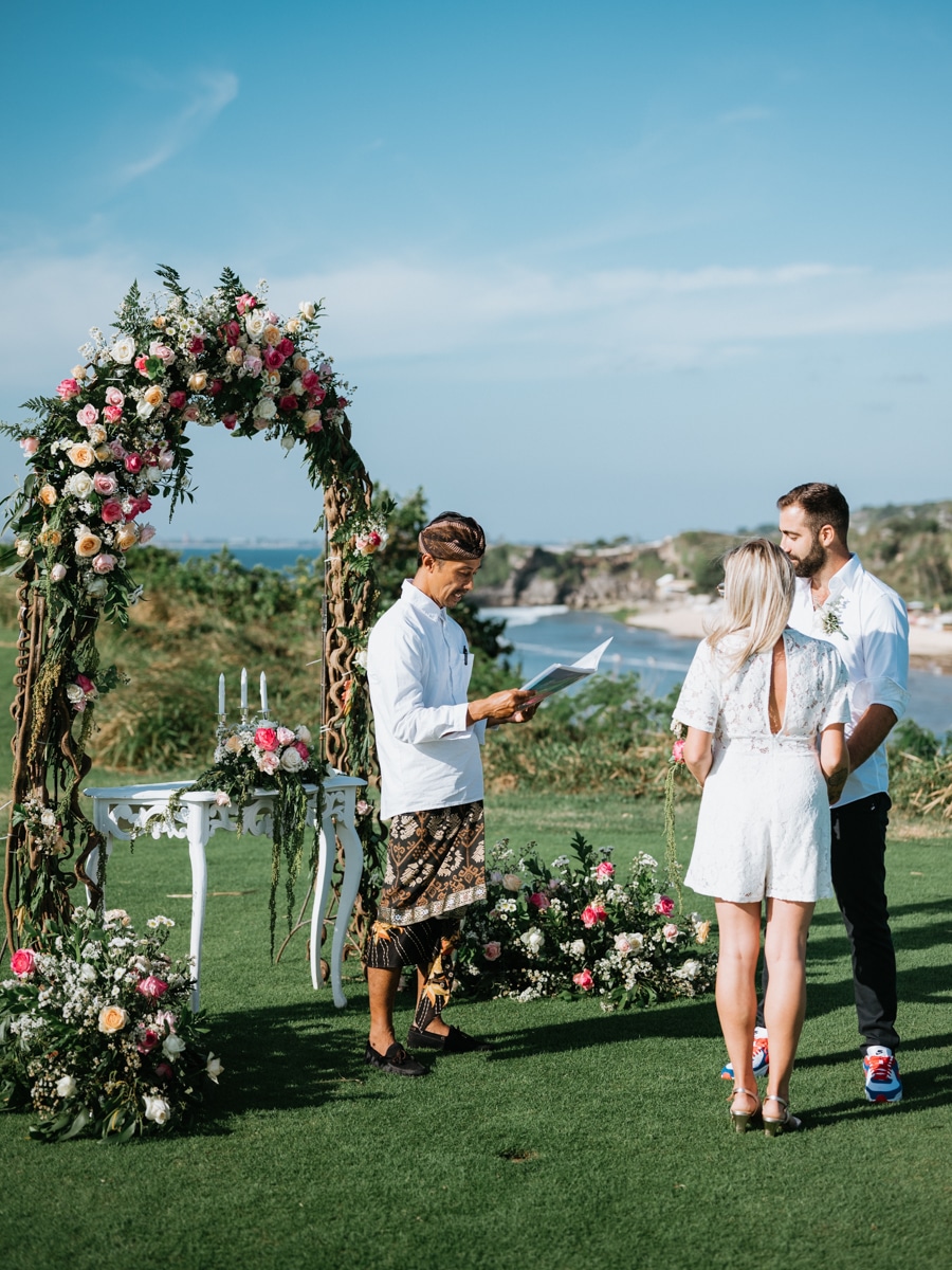 Une belle cérémonie surprise pour Alexandra sur notre plus belle falaise dans le sud de Bali. Une superbe celebration intime pour deux, suivie par un diner sur la plage de Jimbaran pour clôturer un séjour romantique a Bali.