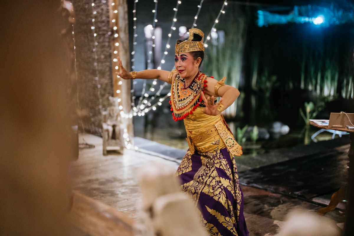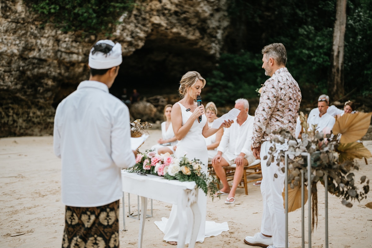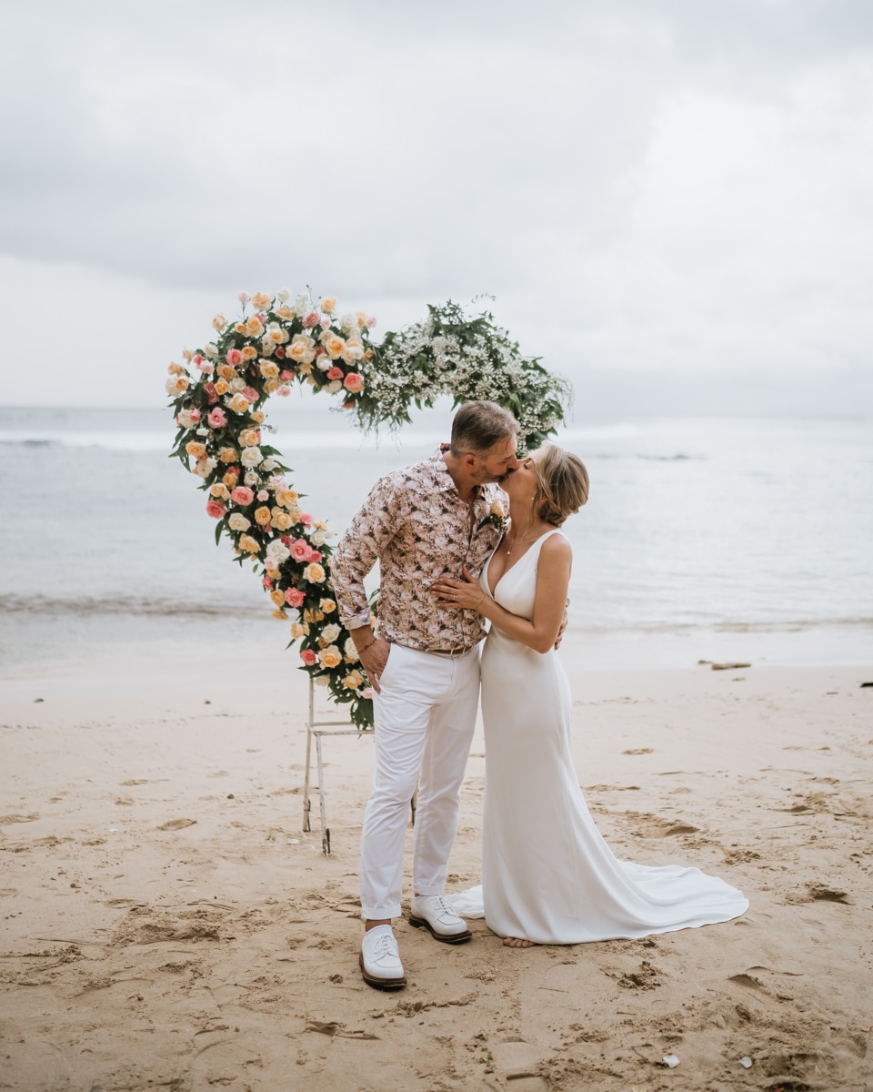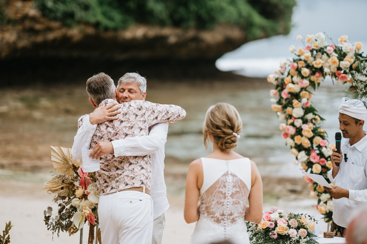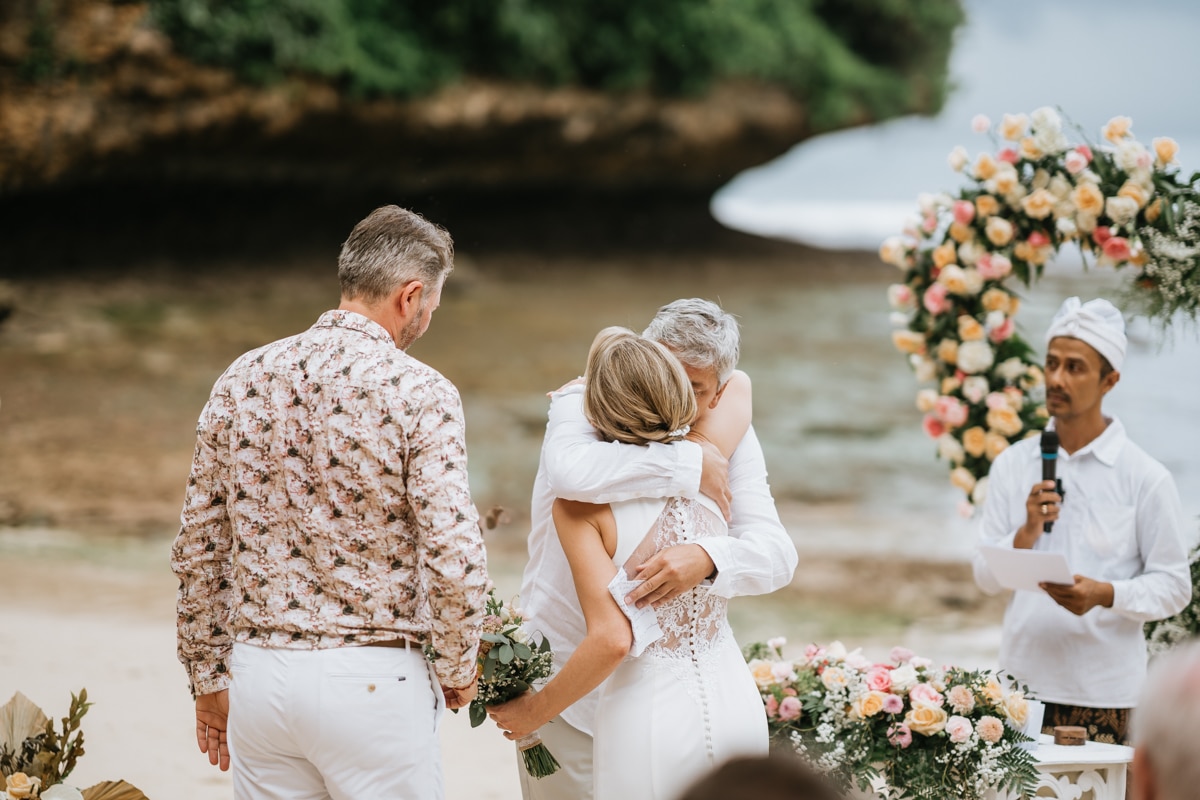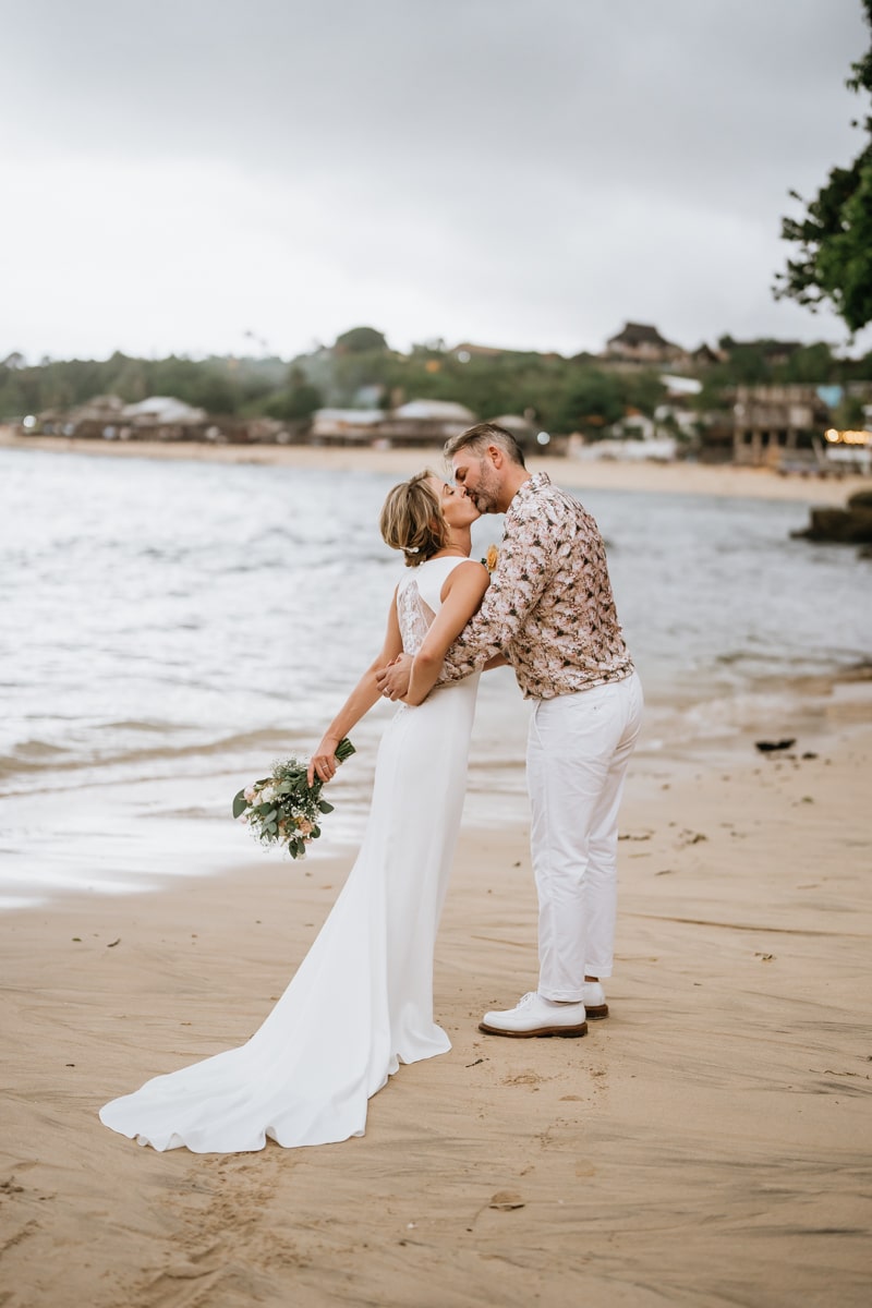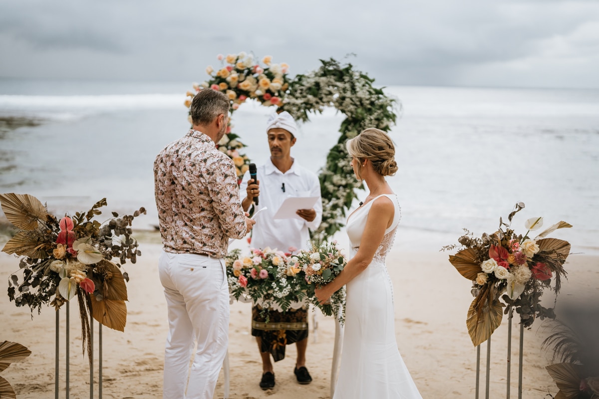 Une magnifique cérémonie avec la famille et les amis proches entre la plage de Balangan dans le sud de Bali suivi par un excellent diner dans une belle villa traditionnelle indonésienne.