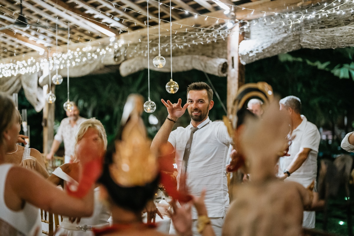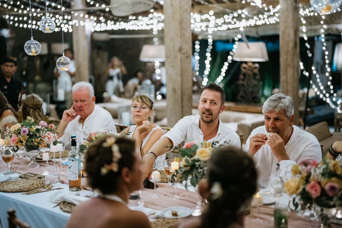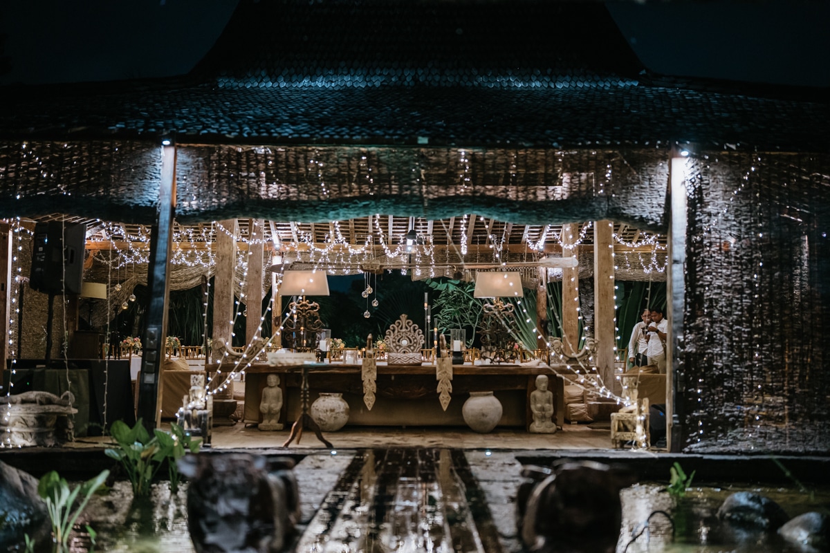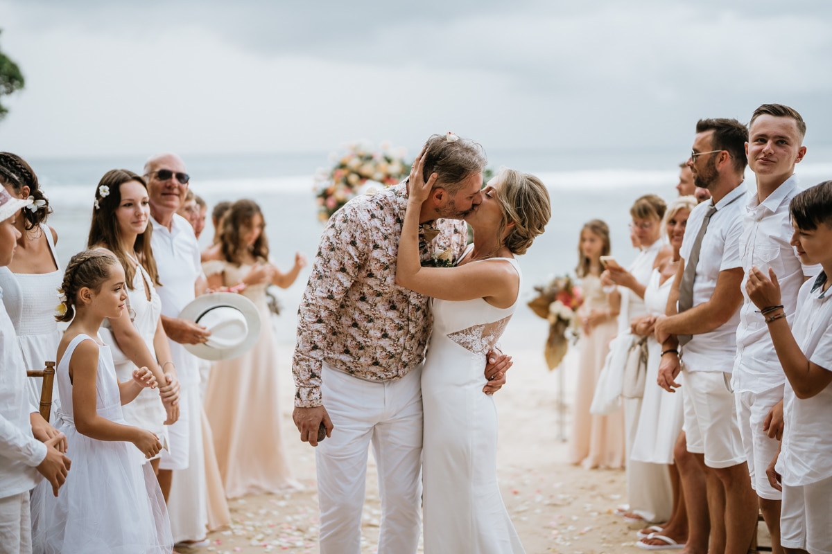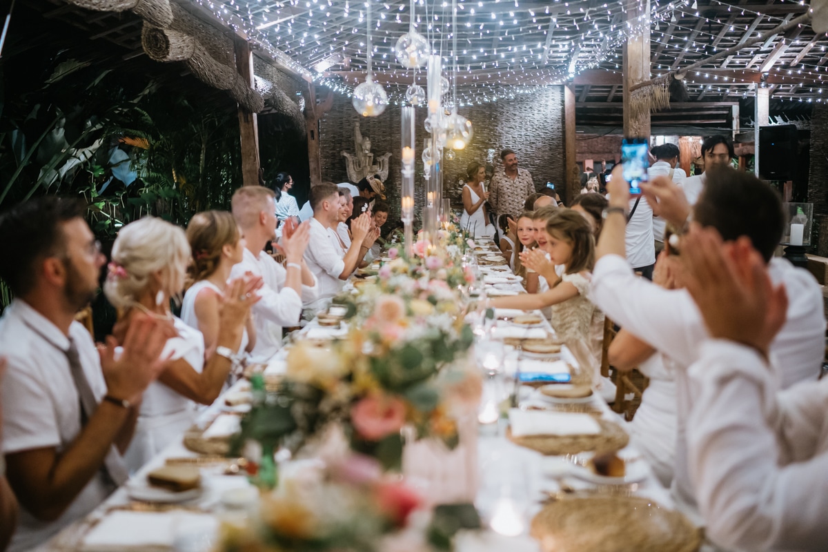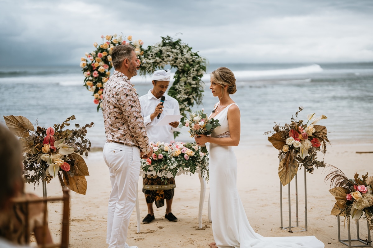 Une magnifique cérémonie avec la famille et les amis proches entre la plage de Balangan dans le sud de Bali suivi par un excellent diner dans une belle villa traditionnelle indonésienne.
