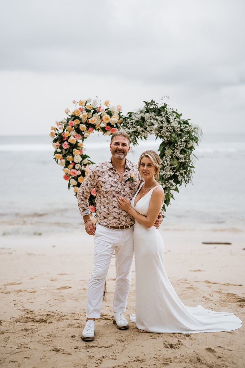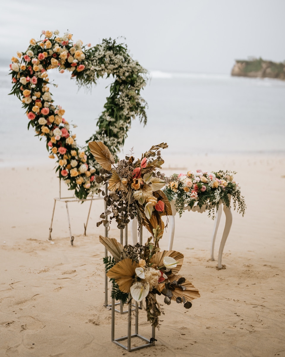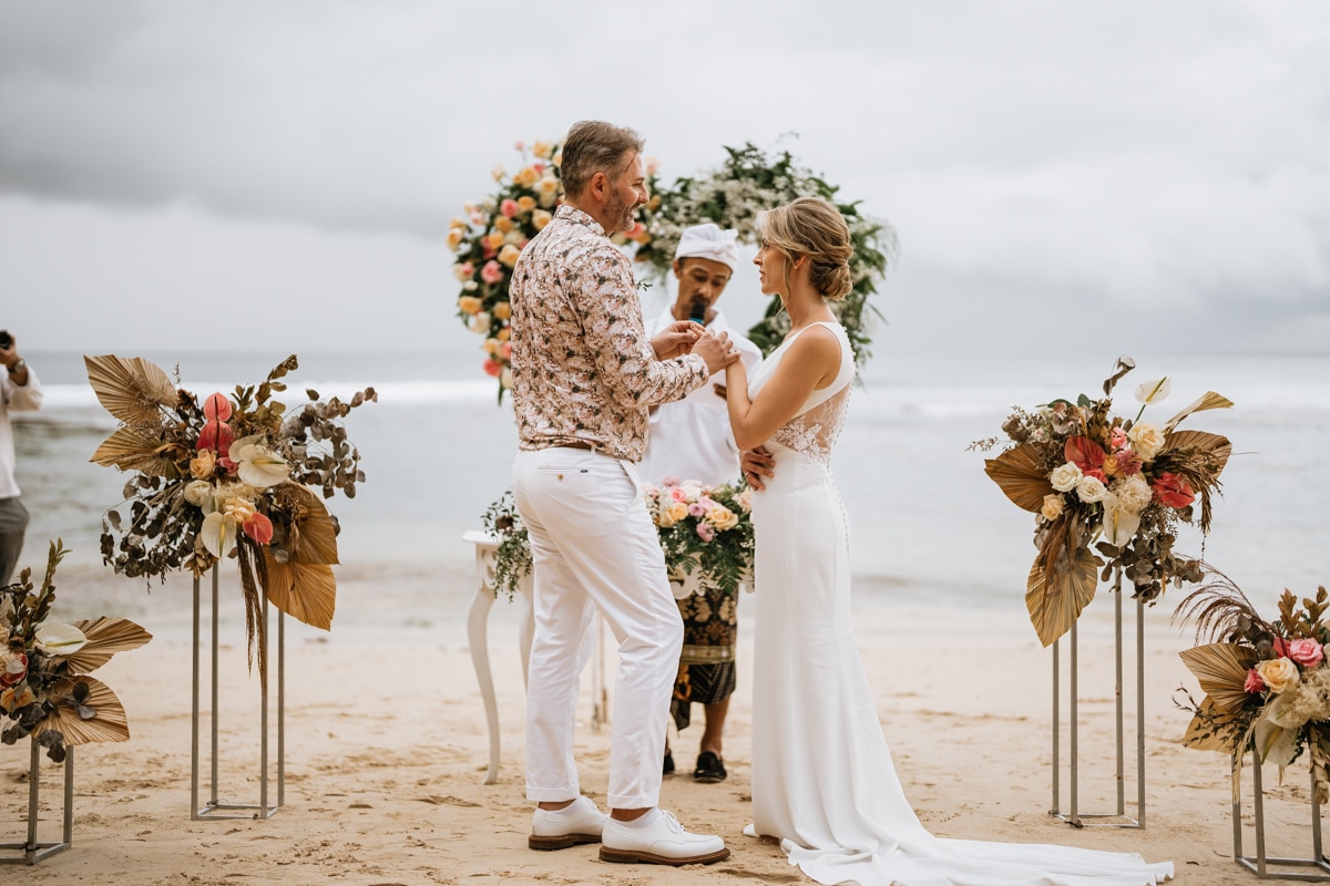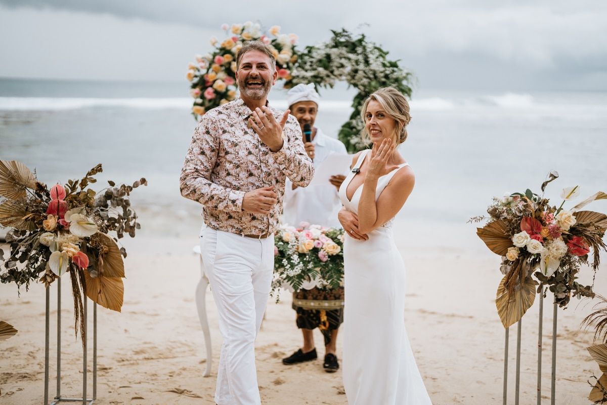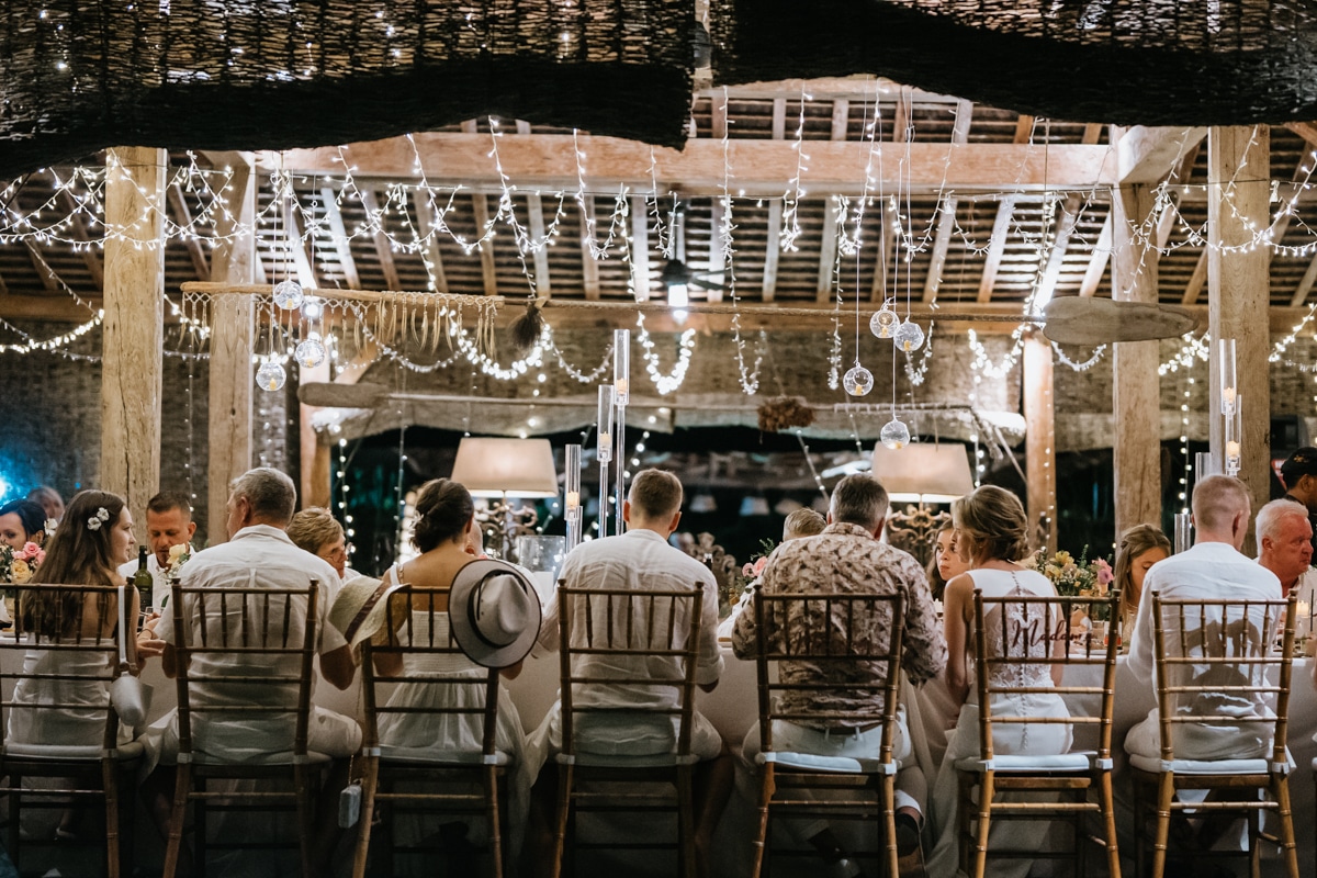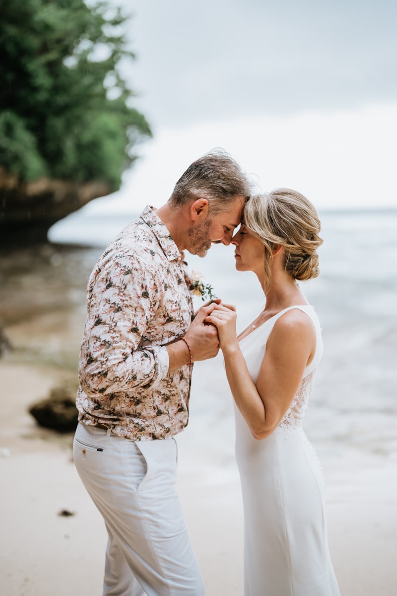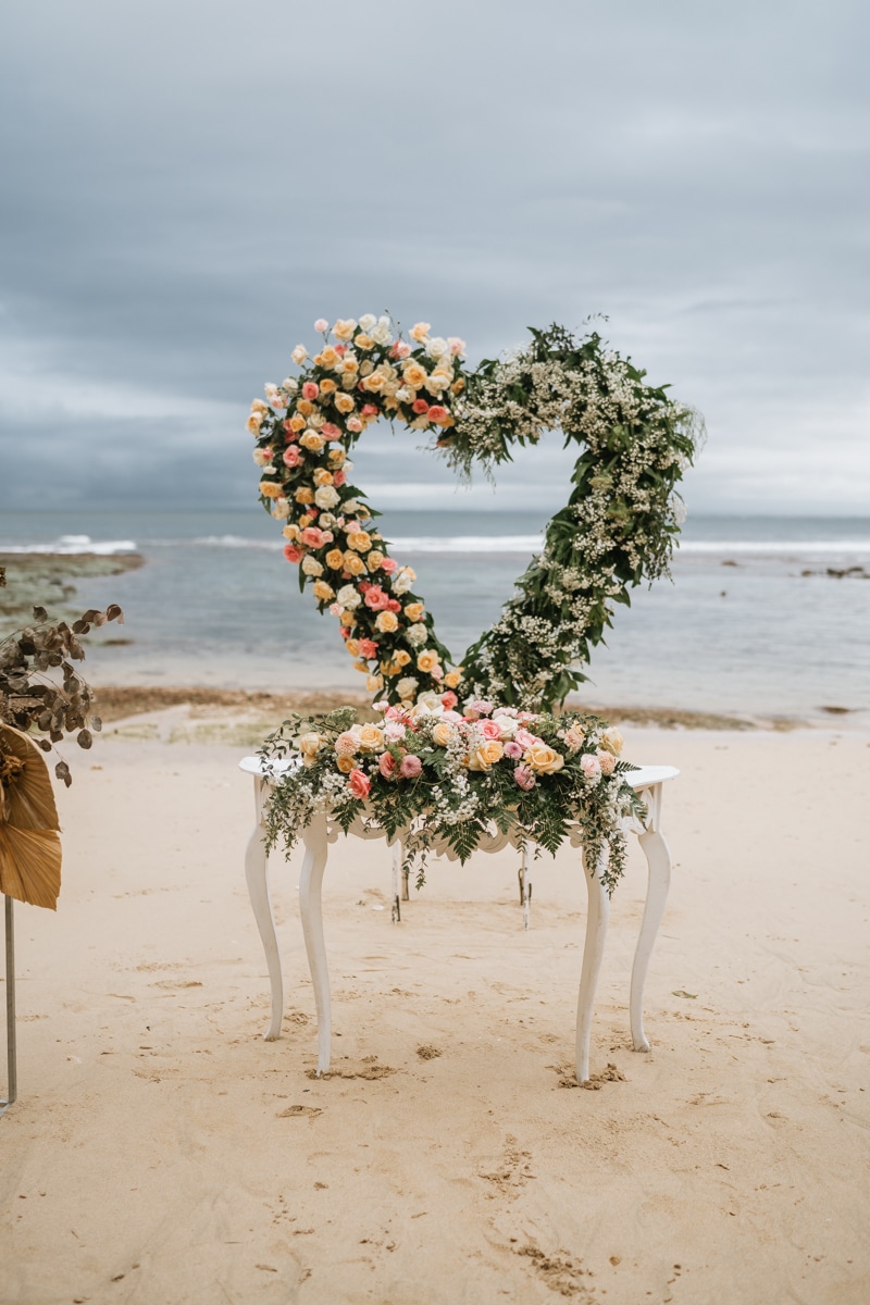 Une magnifique cérémonie avec la famille et les amis proches entre la plage de Balangan dans le sud de Bali suivi par un excellent diner dans une belle villa traditionnelle indonésienne.