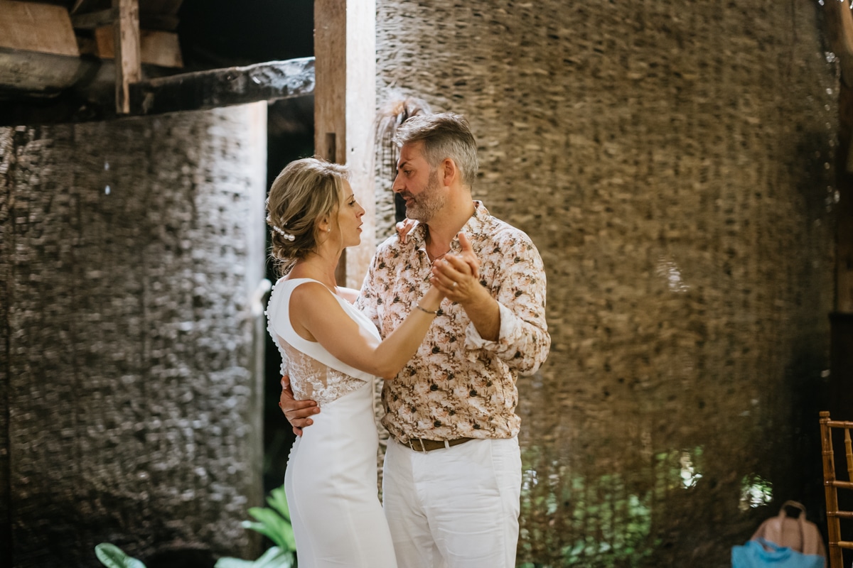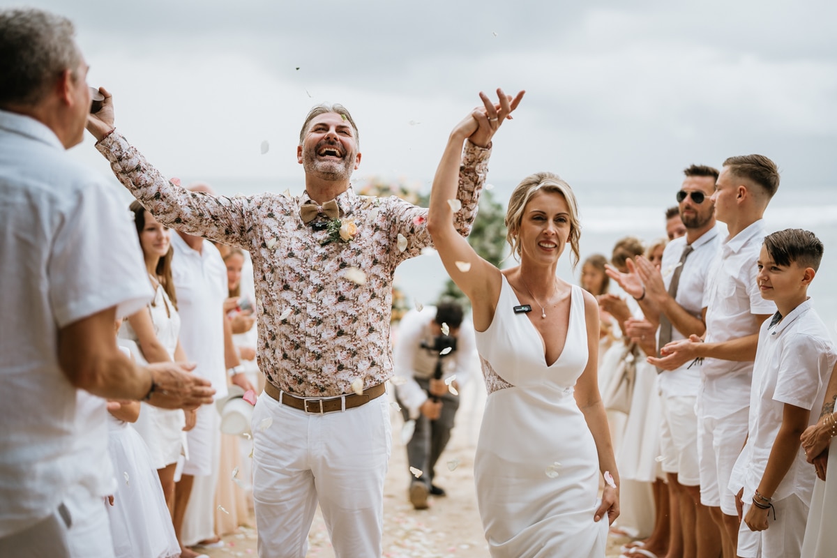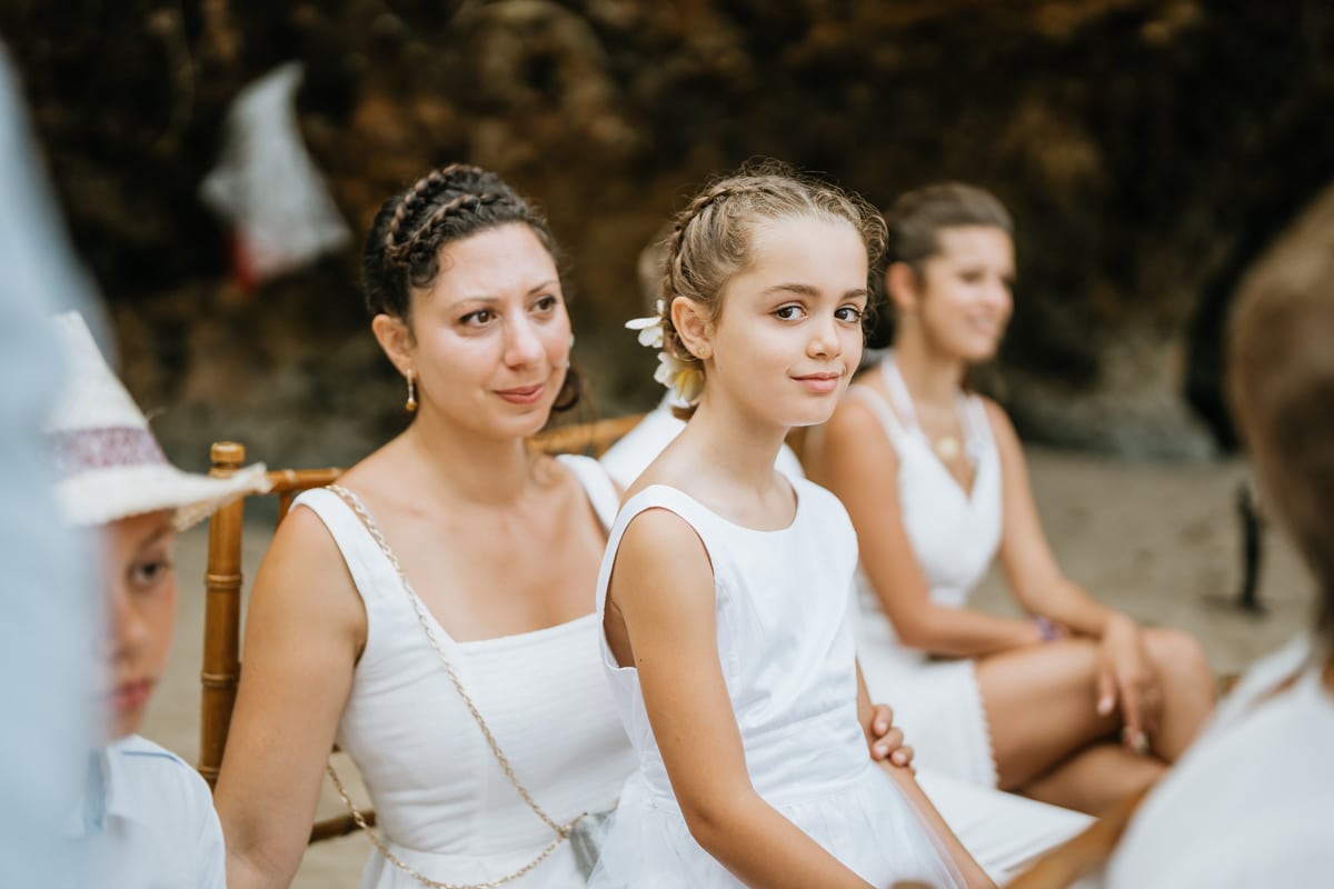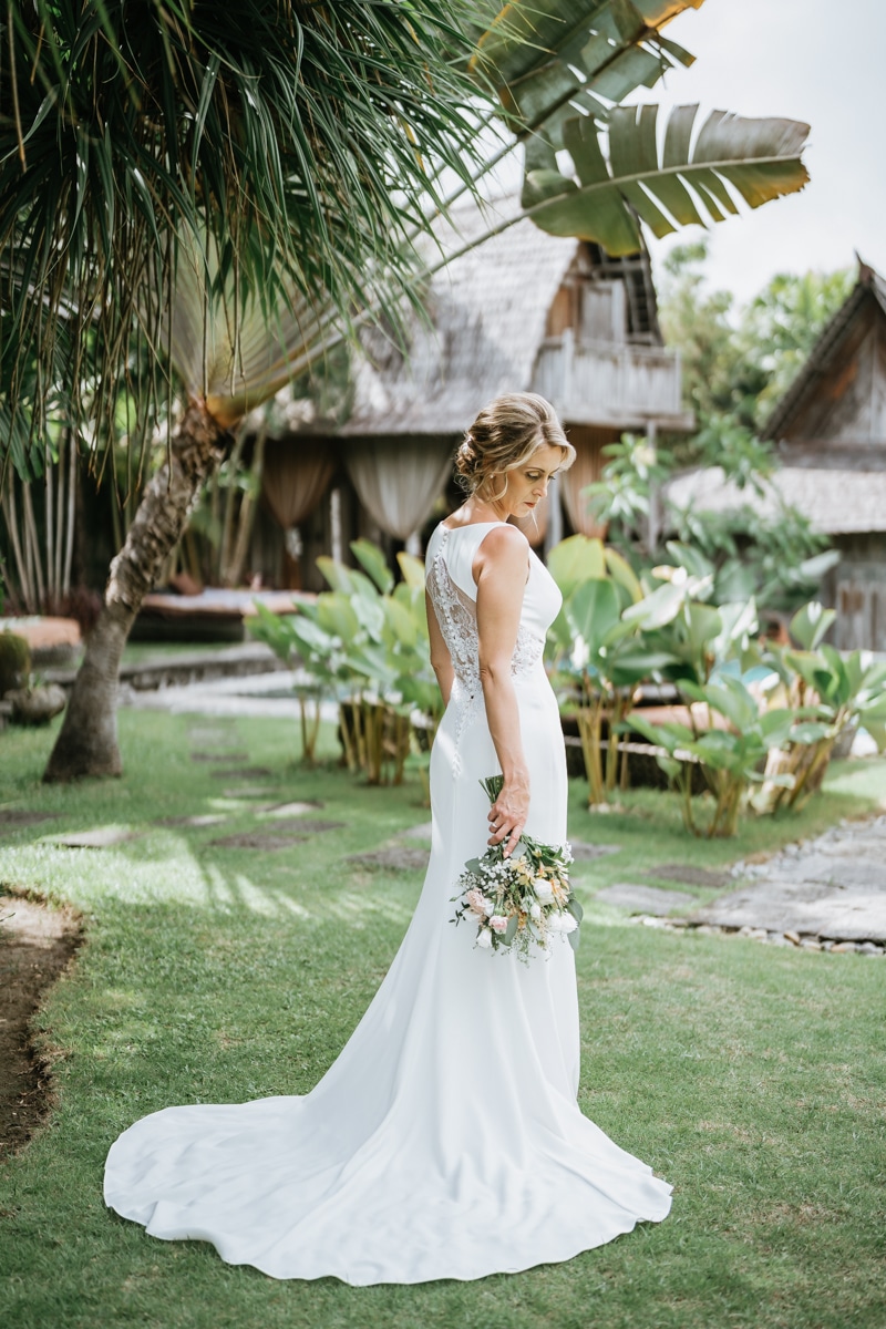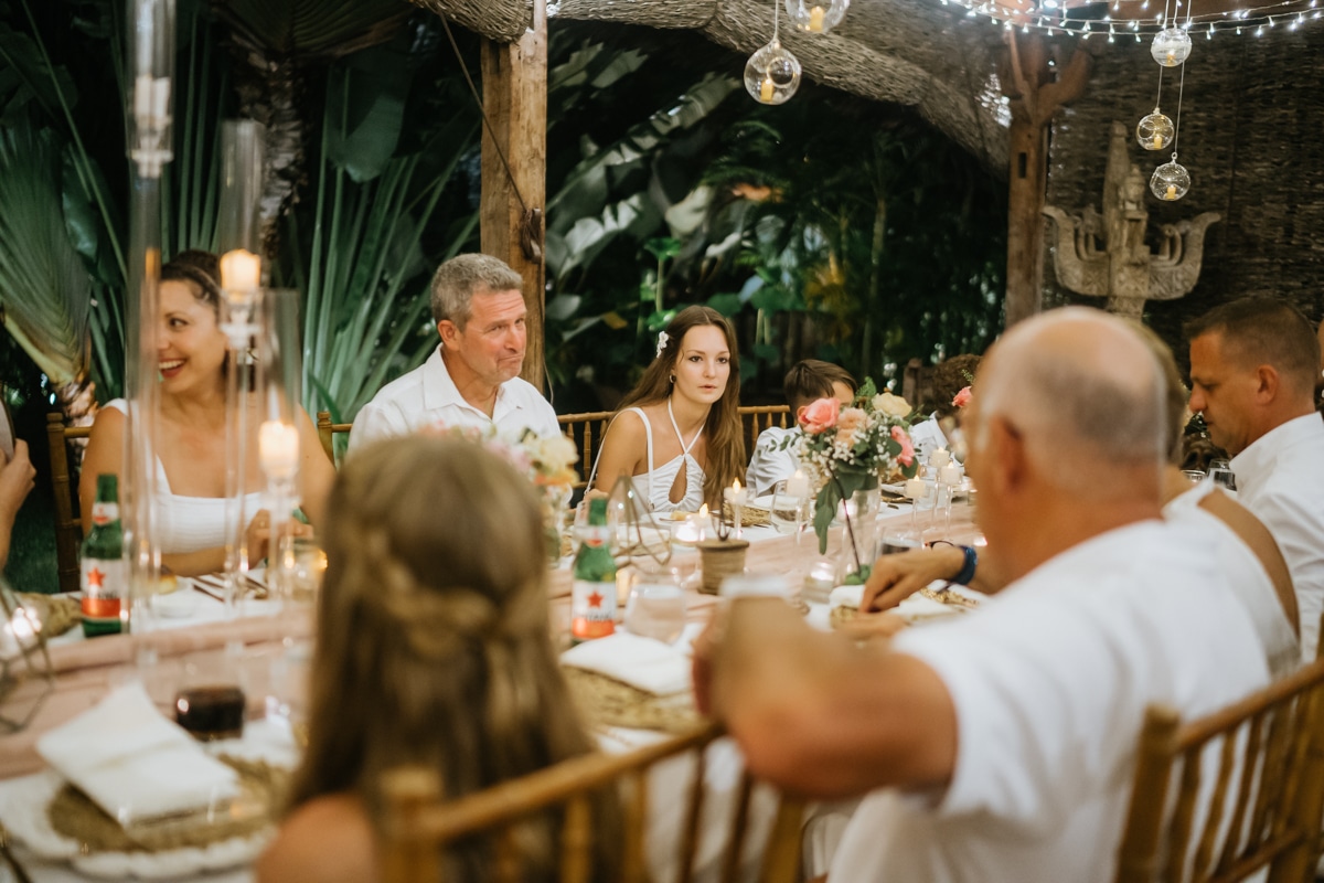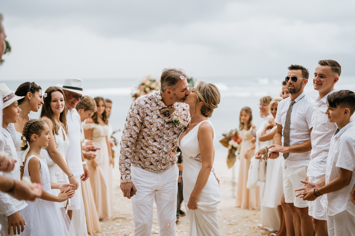 Une magnifique cérémonie avec la famille et les amis proches entre la plage de Balangan dans le sud de Bali suivi par un excellent diner dans une belle villa traditionnelle indonésienne.