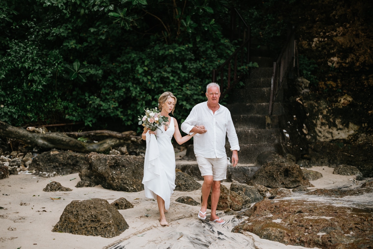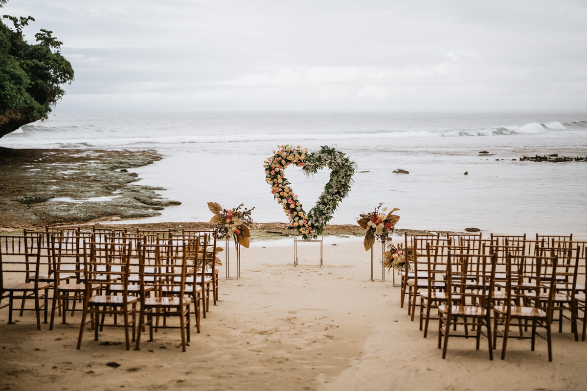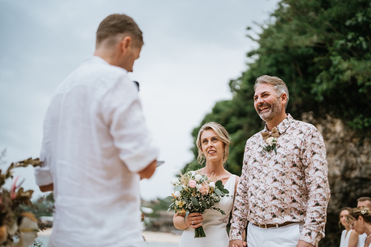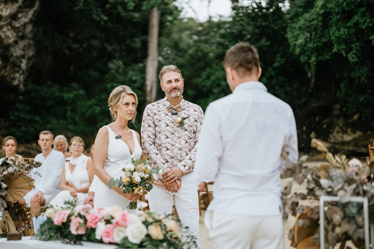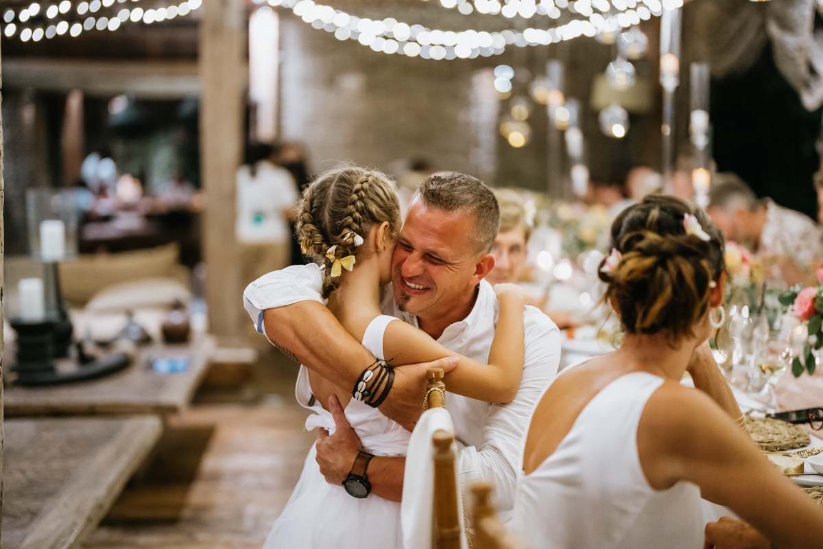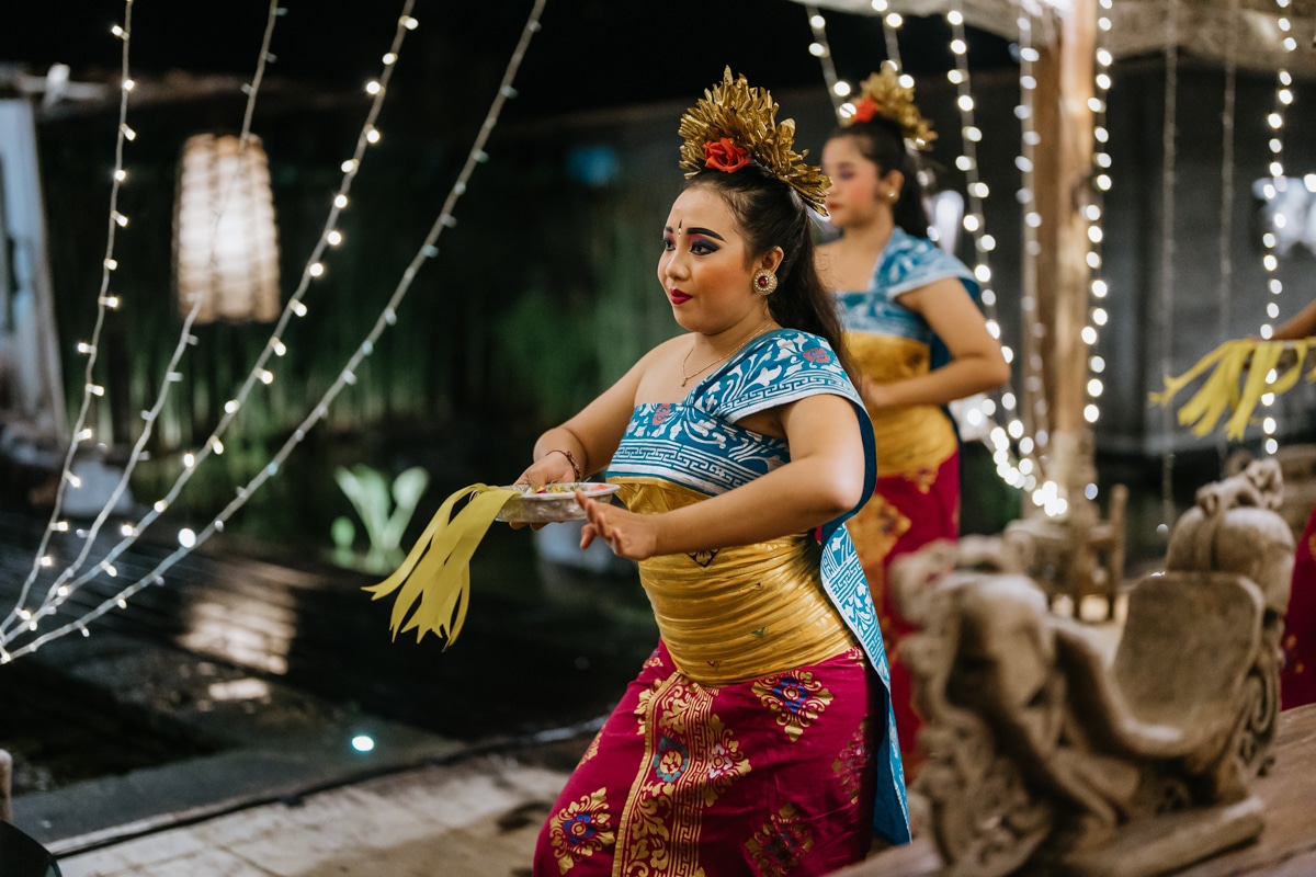 Une magnifique cérémonie avec la famille et les amis proches entre la plage de Balangan dans le sud de Bali suivi par un excellent diner dans une belle villa traditionnelle indonésienne.