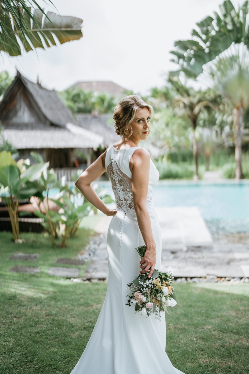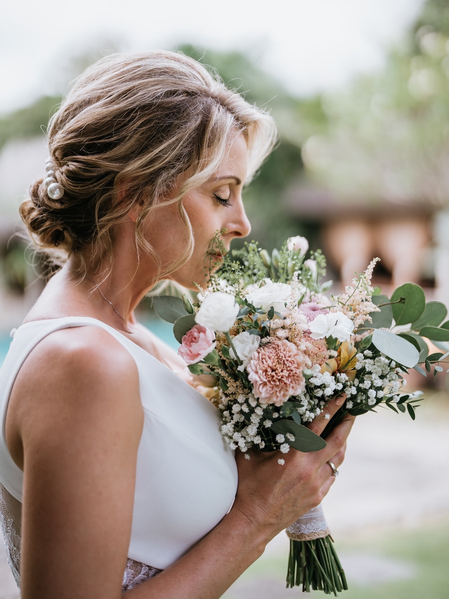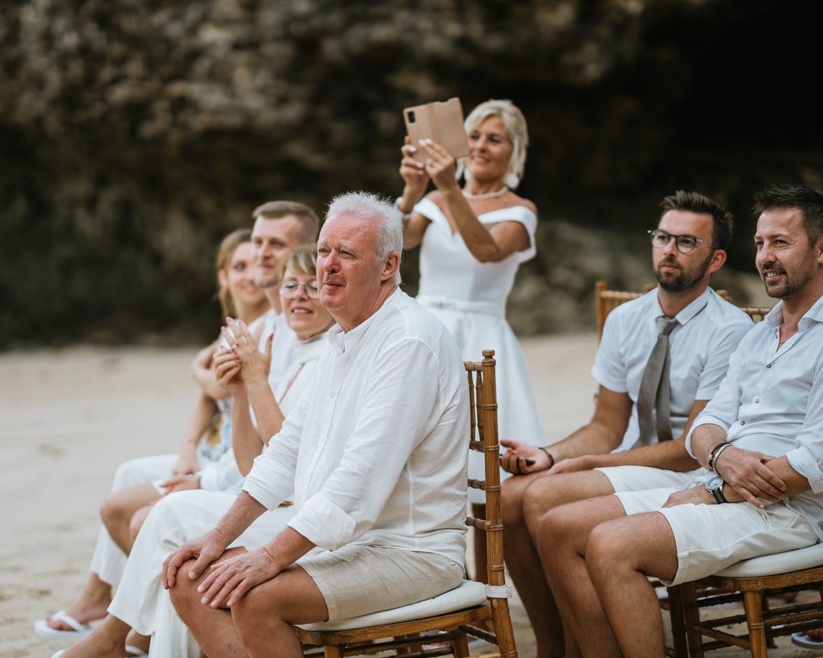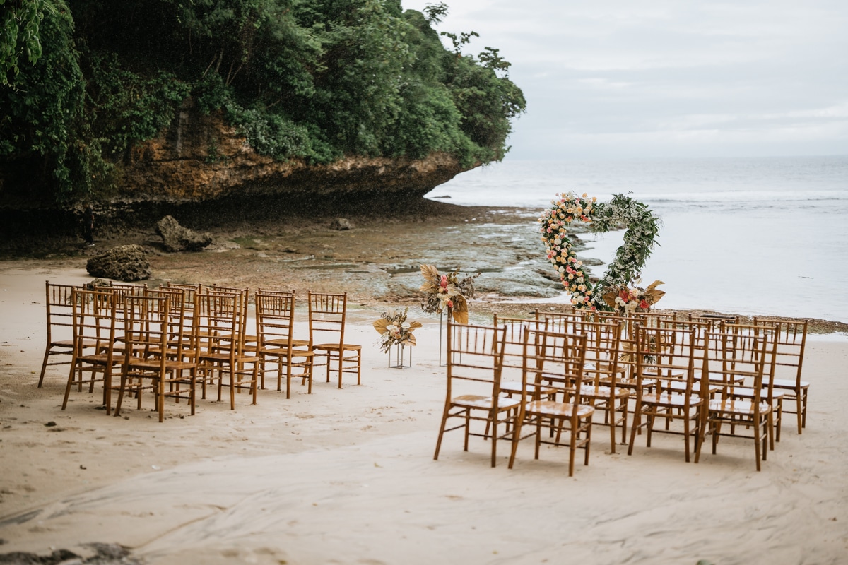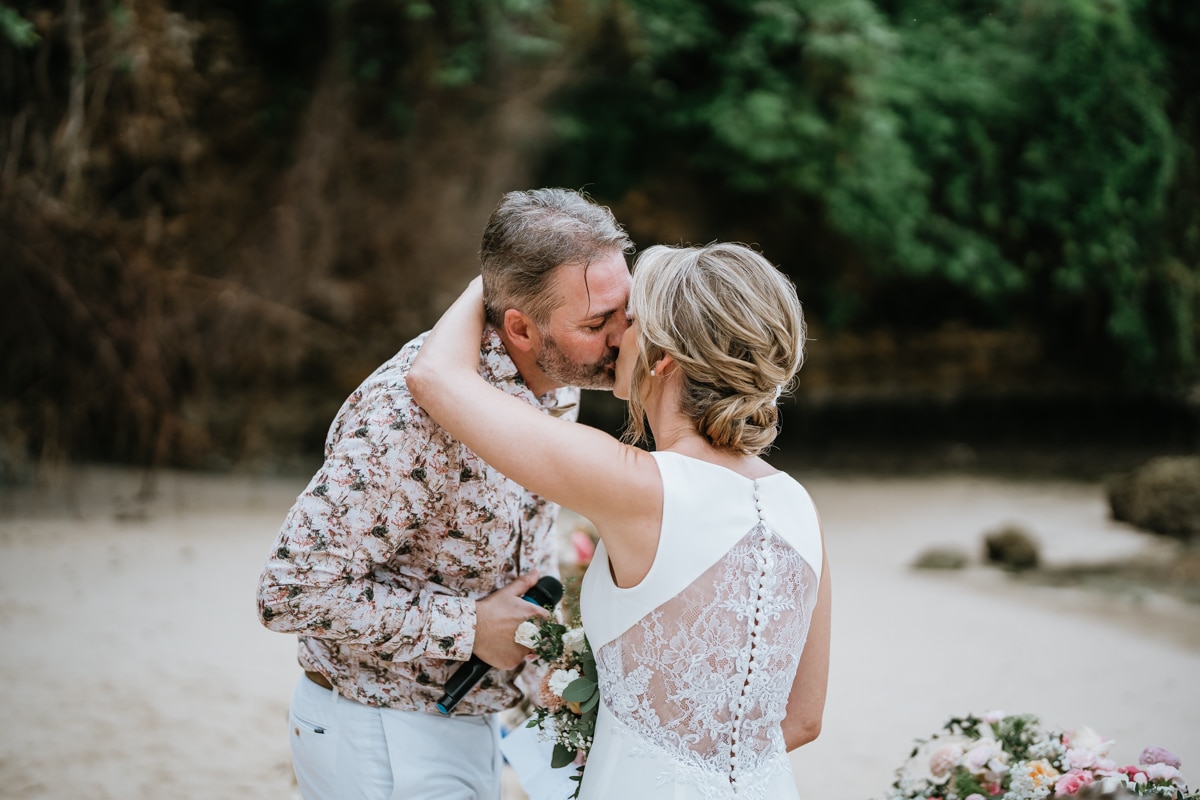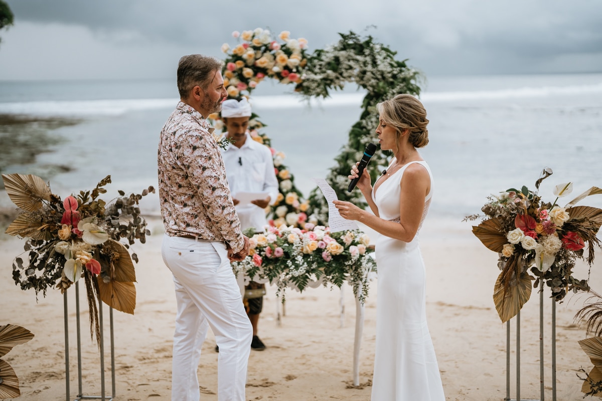 Une magnifique cérémonie avec la famille et les amis proches entre la plage de Balangan dans le sud de Bali suivi par un excellent diner dans une belle villa traditionnelle indonésienne.