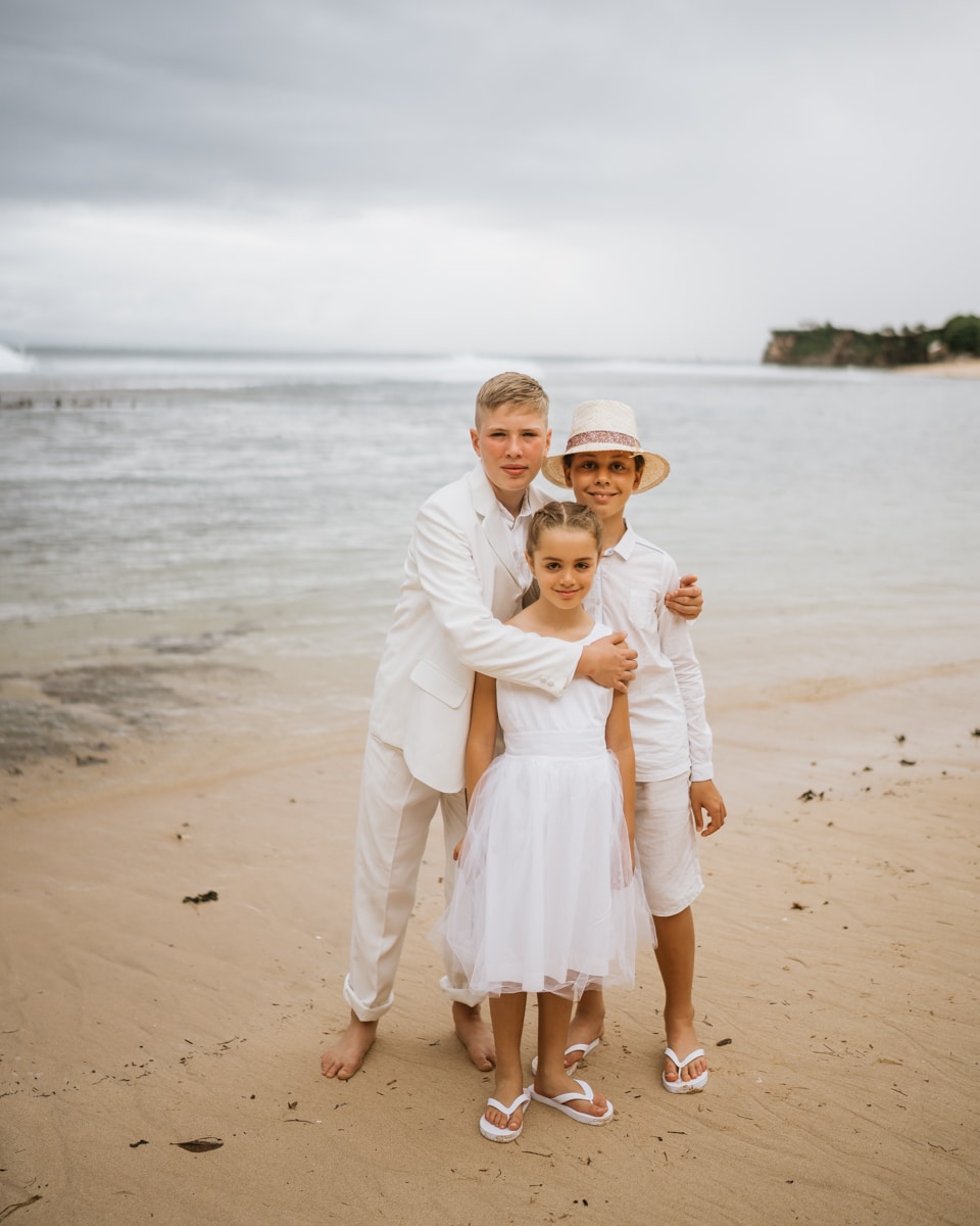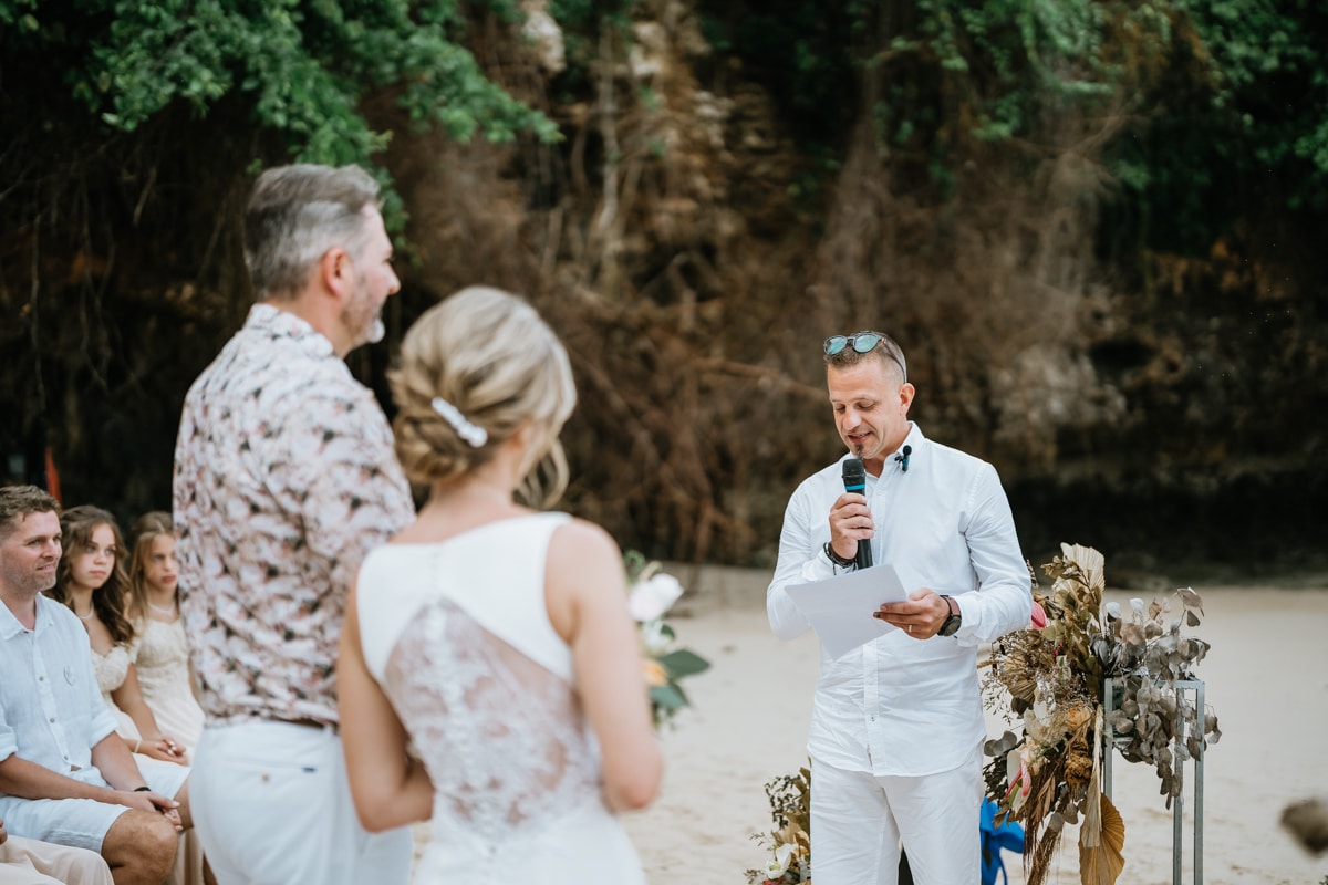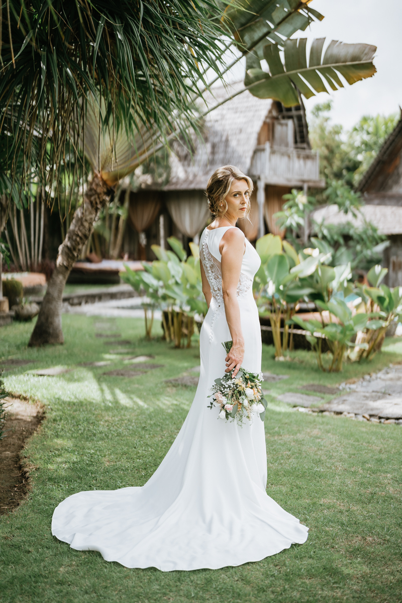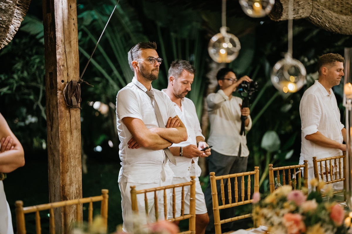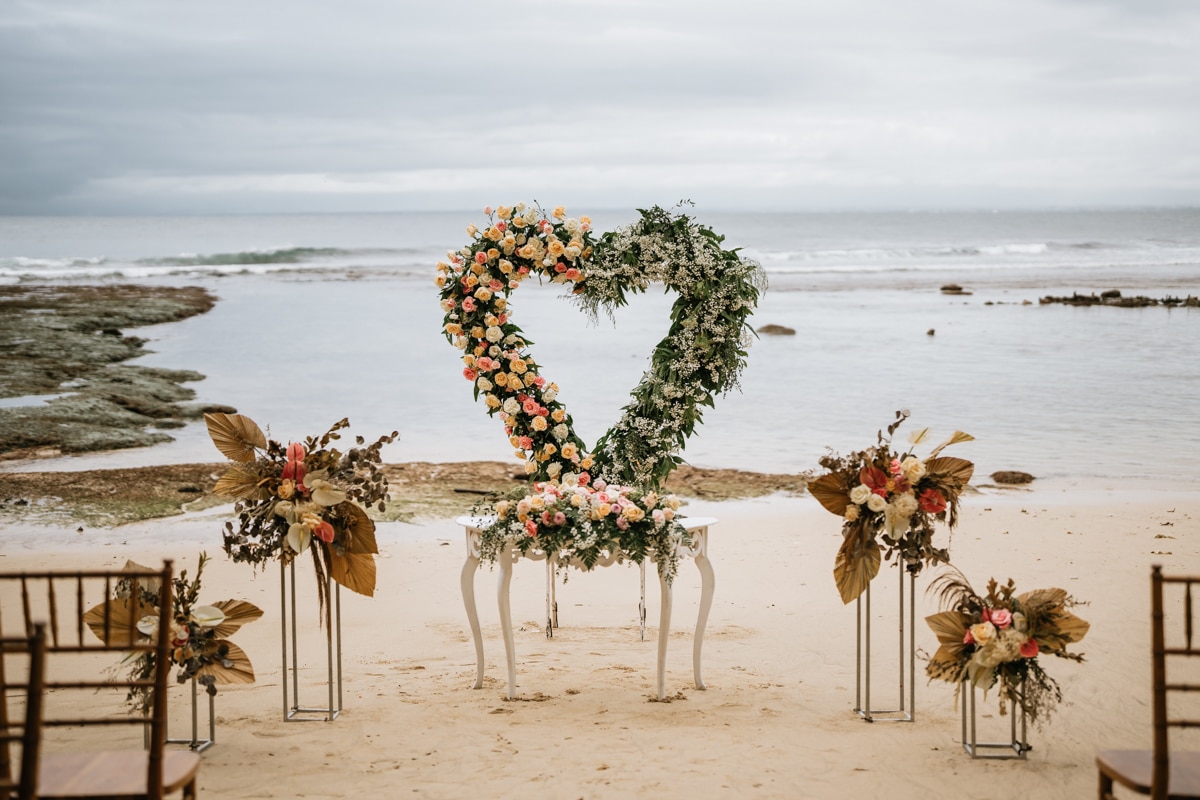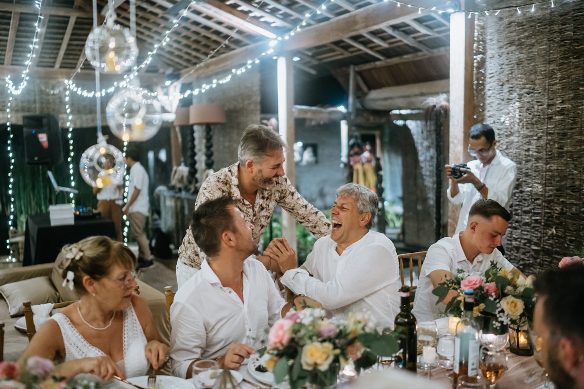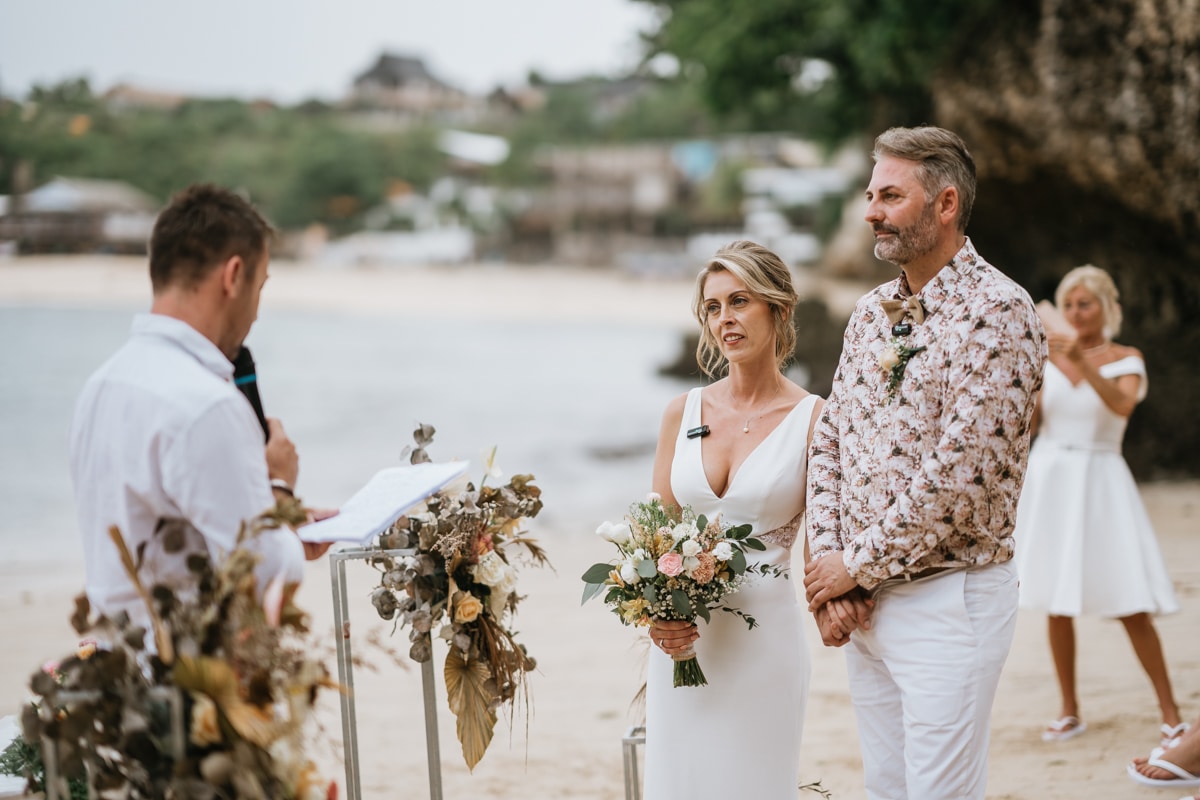 Une magnifique cérémonie avec la famille et les amis proches entre la plage de Balangan dans le sud de Bali suivi par un excellent diner dans une belle villa traditionnelle indonésienne.