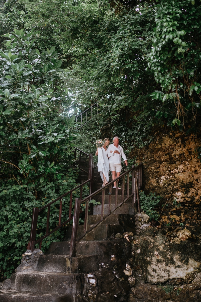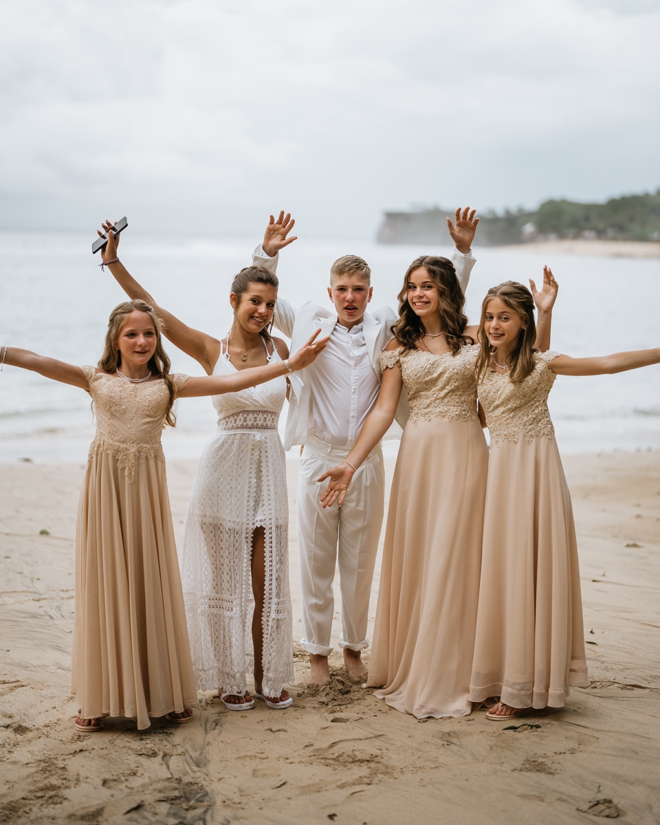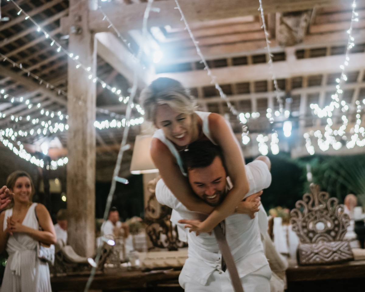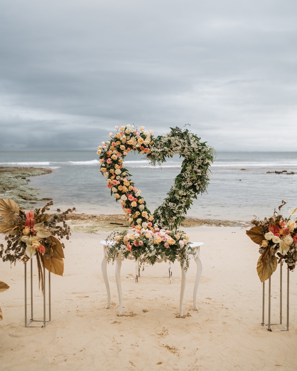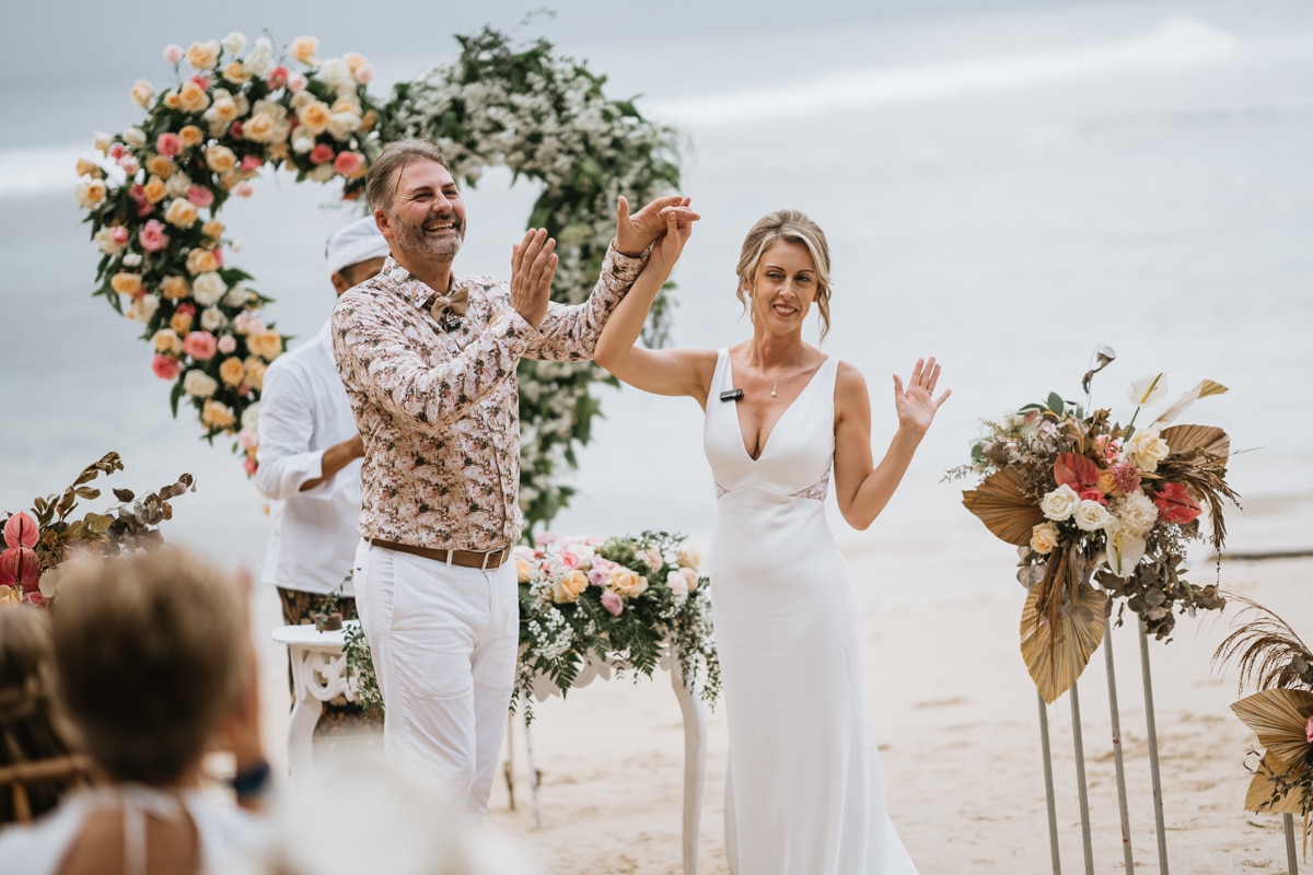 Une magnifique cérémonie avec la famille et les amis proches entre la plage de Balangan dans le sud de Bali suivi par un excellent diner dans une belle villa traditionnelle indonésienne.