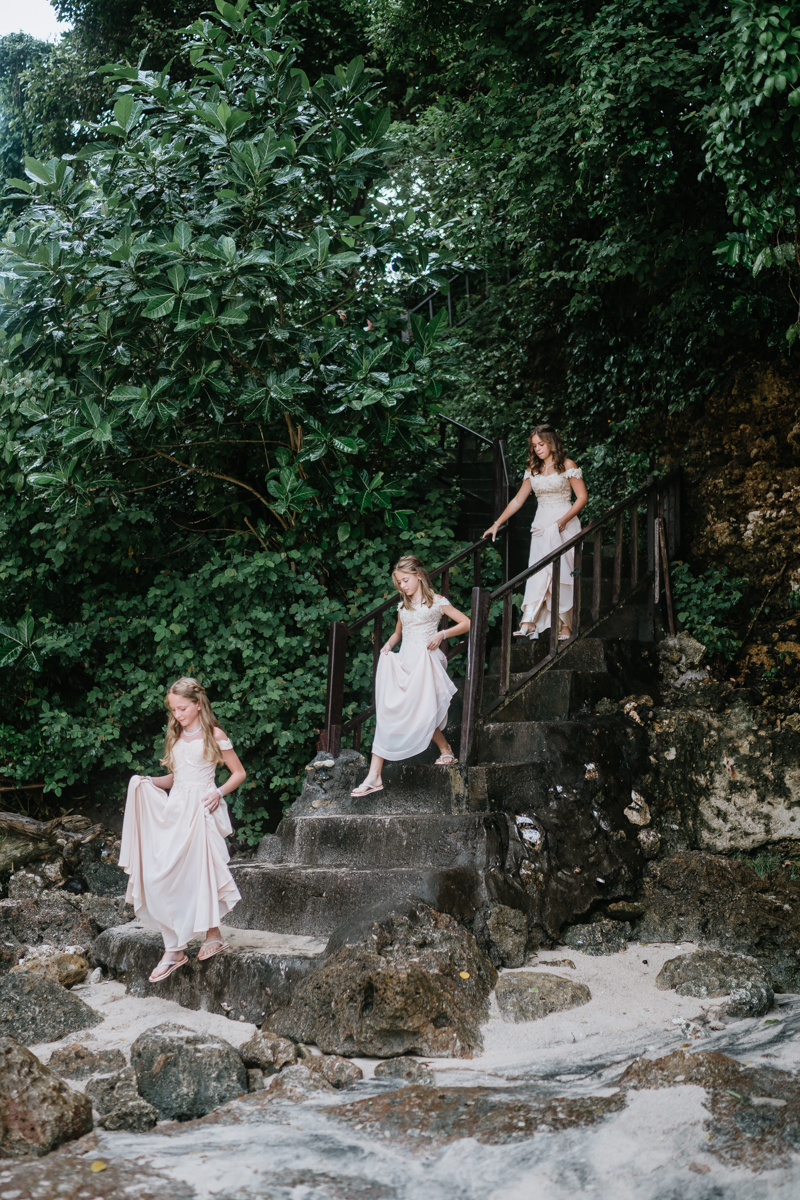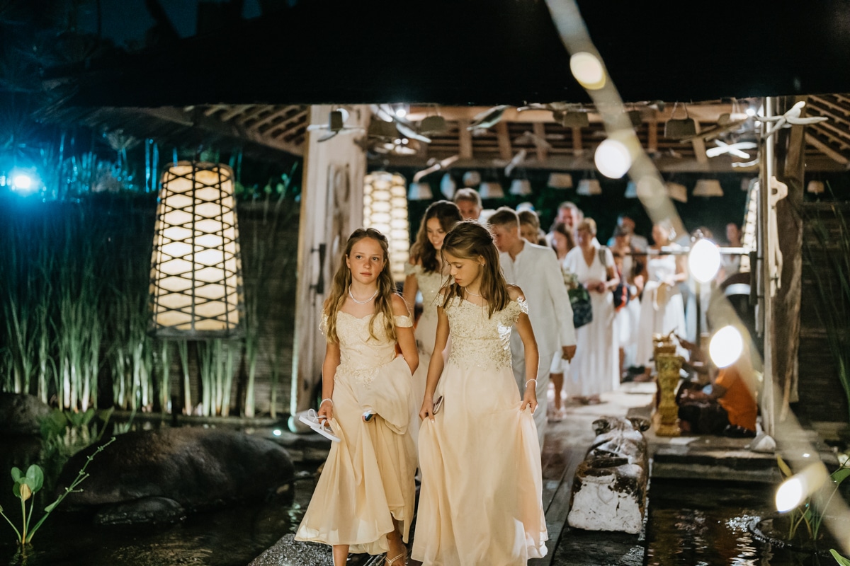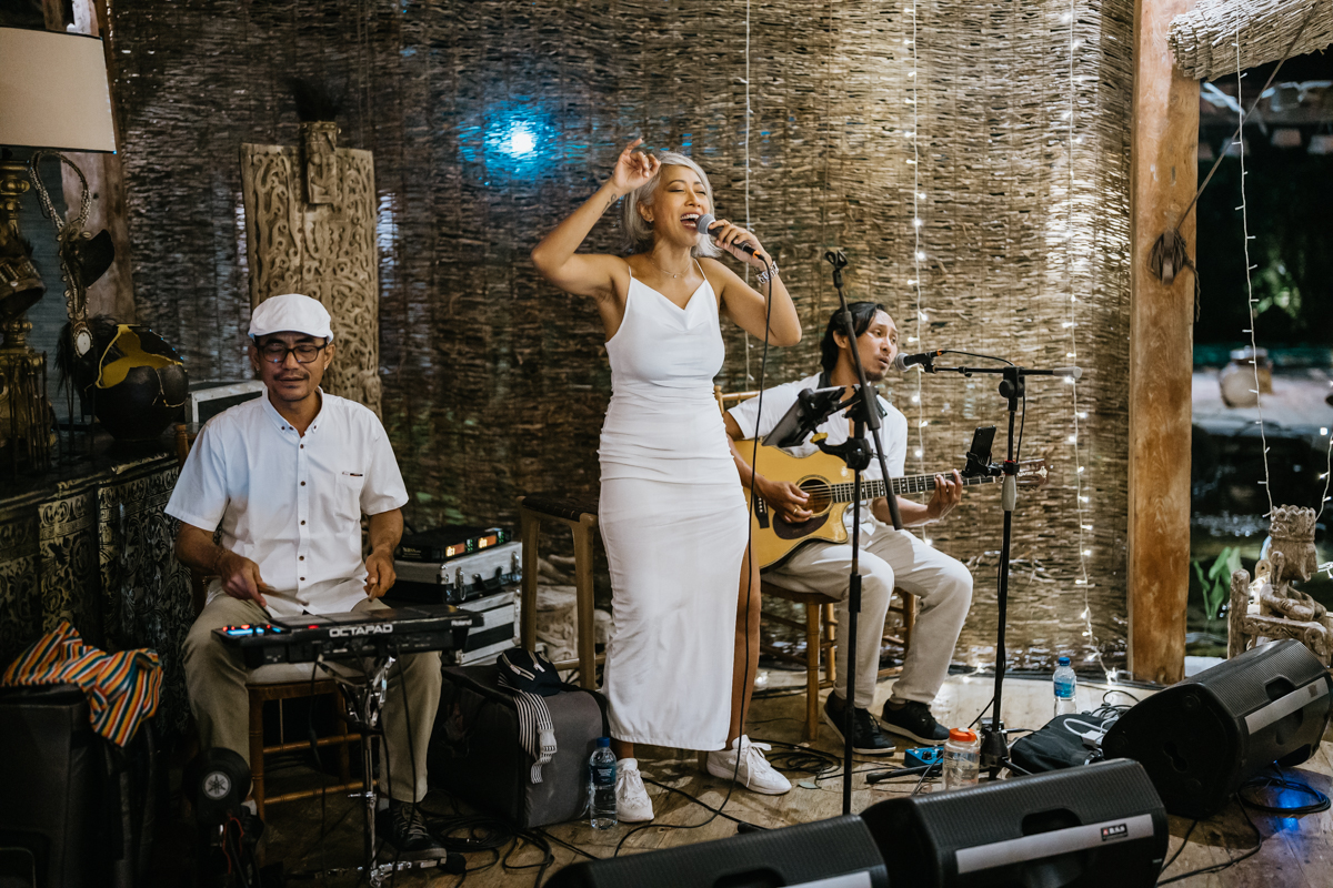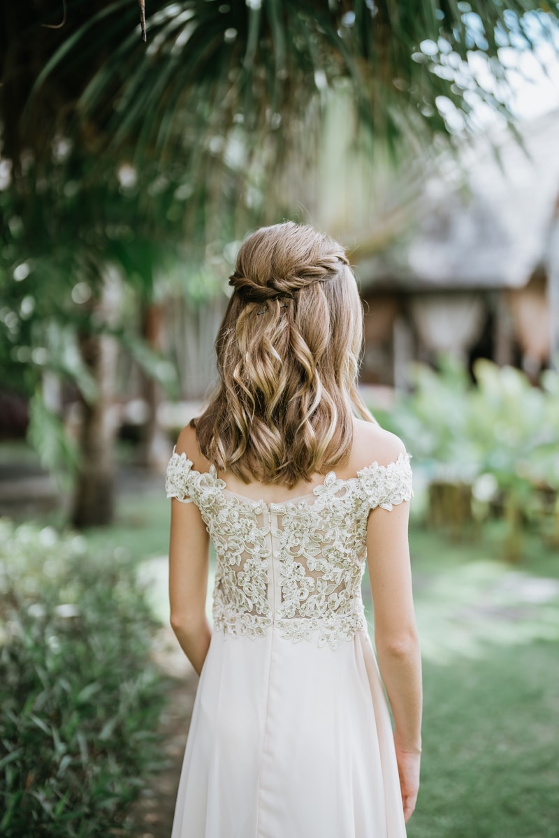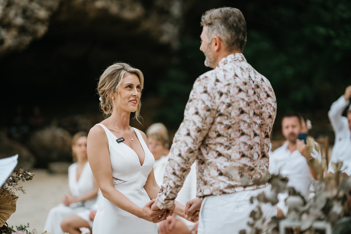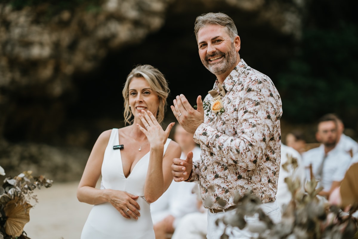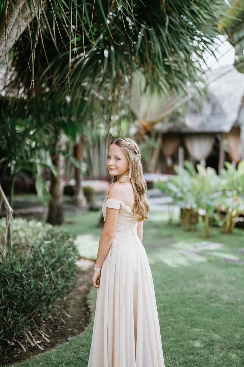 Une magnifique cérémonie avec la famille et les amis proches entre la plage de Balangan dans le sud de Bali suivi par un excellent diner dans une belle villa traditionnelle indonésienne.