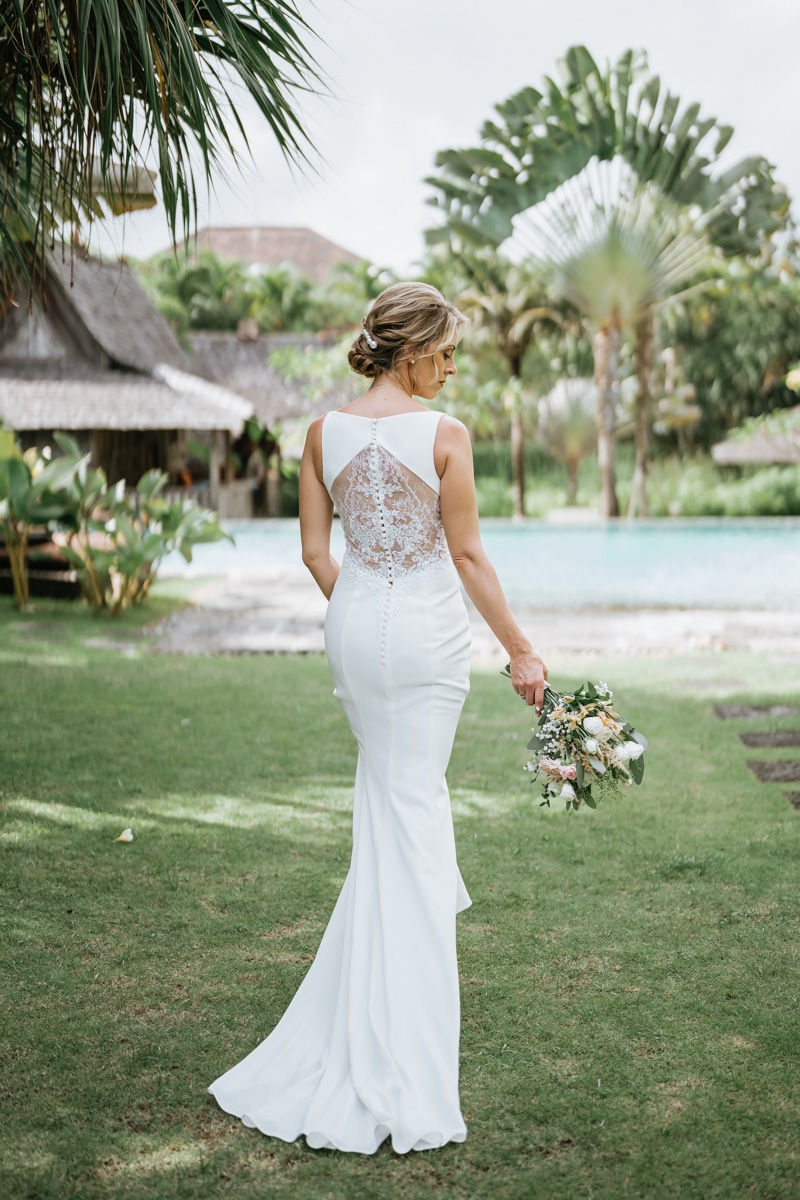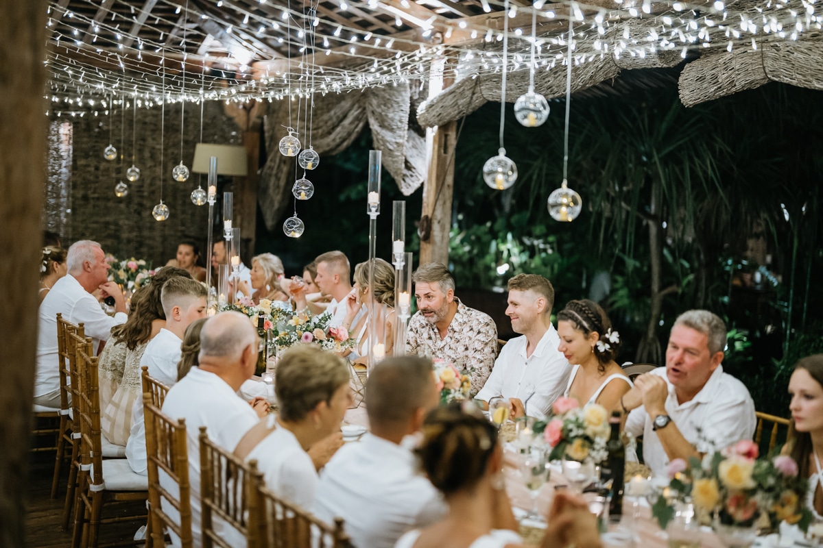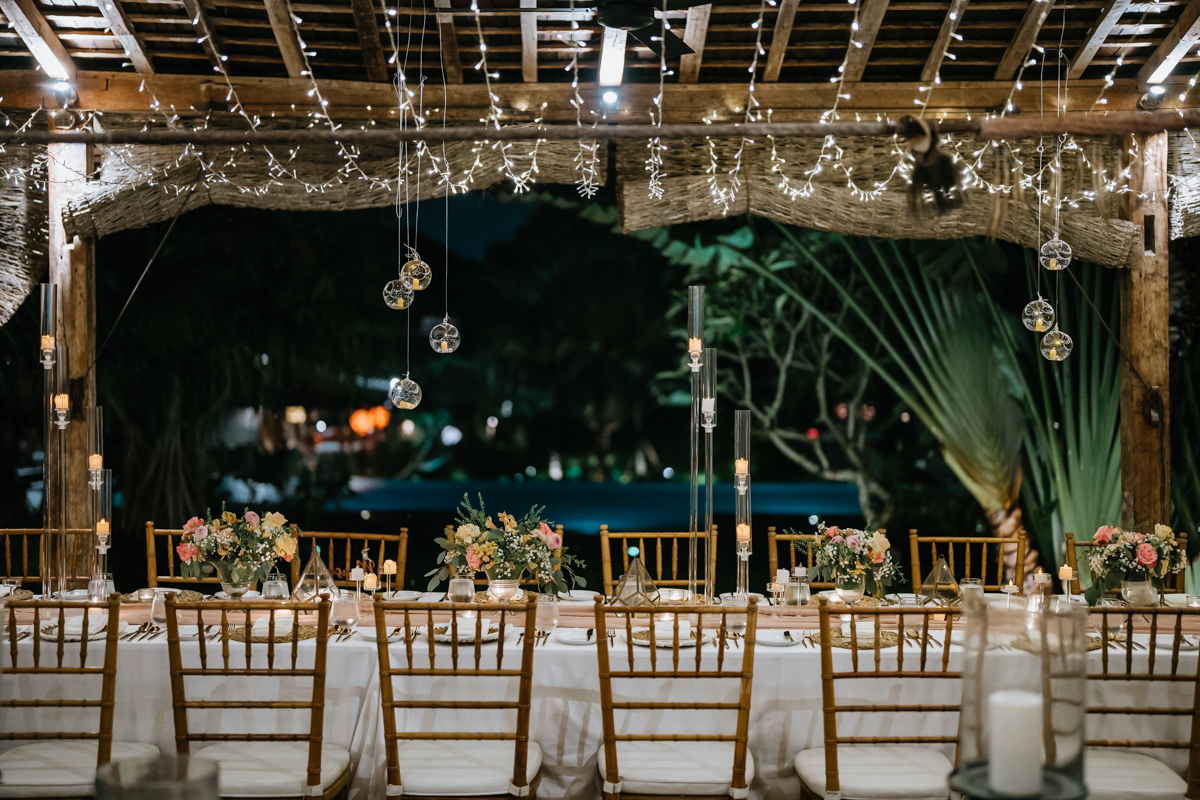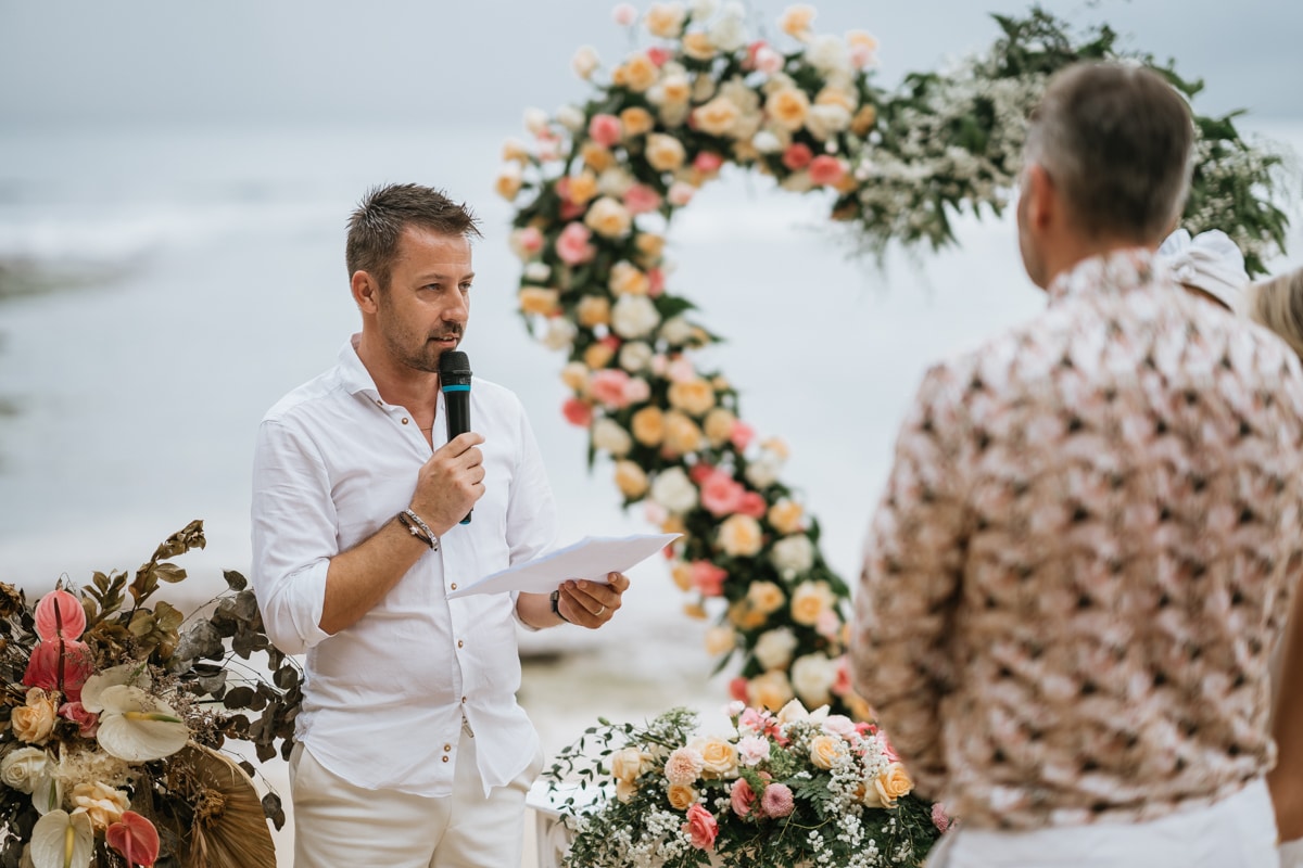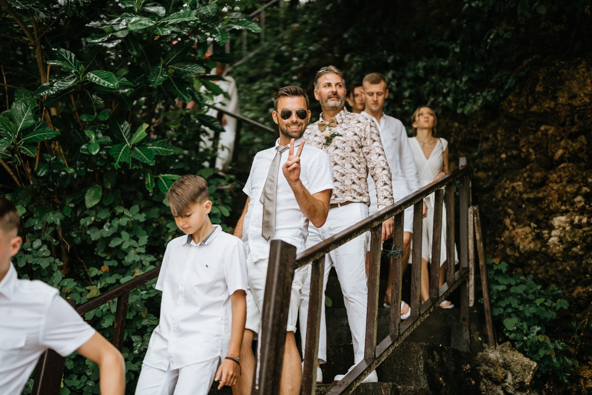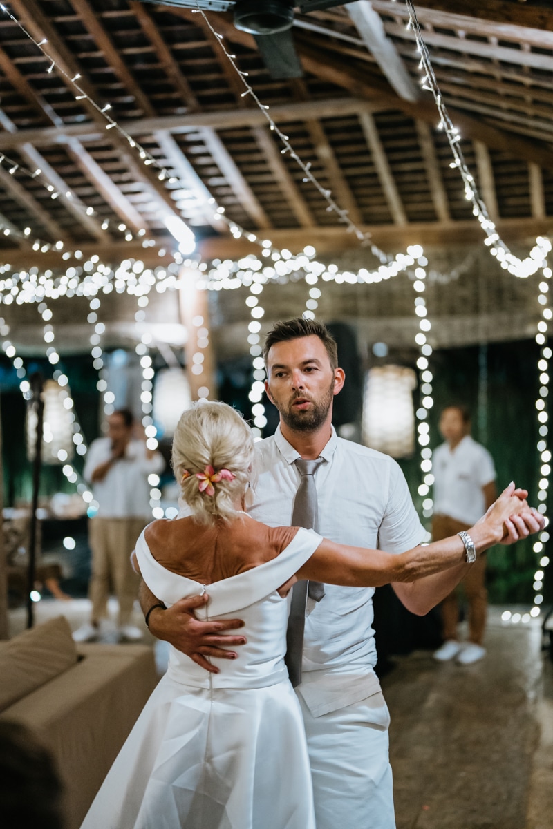 Une magnifique cérémonie avec la famille et les amis proches entre la plage de Balangan dans le sud de Bali suivi par un excellent diner dans une belle villa traditionnelle indonésienne.