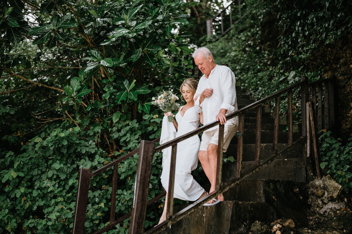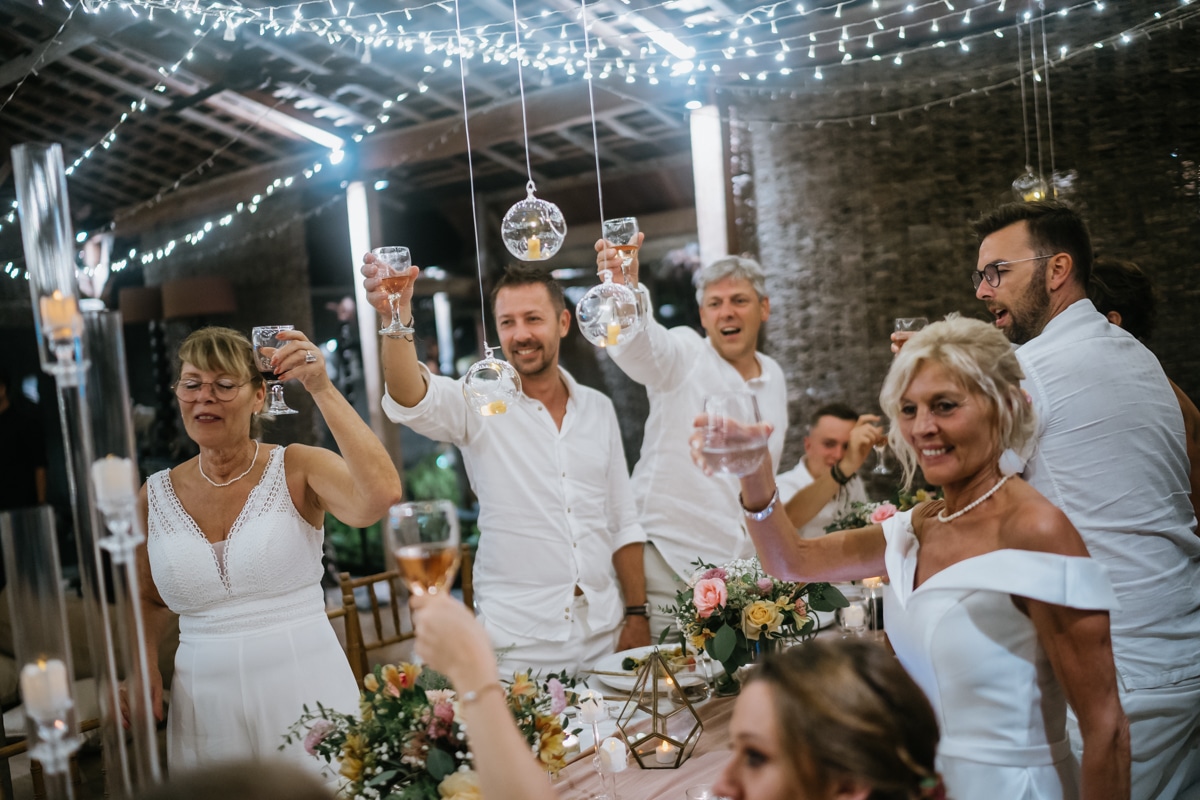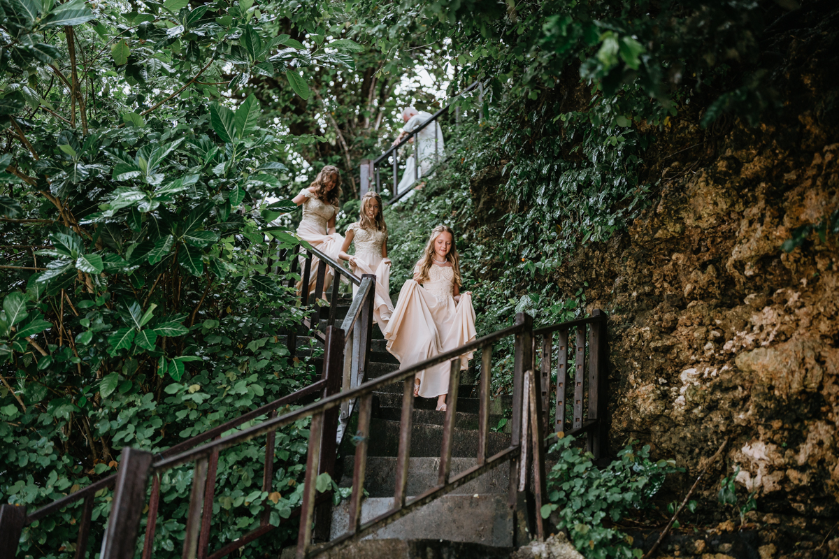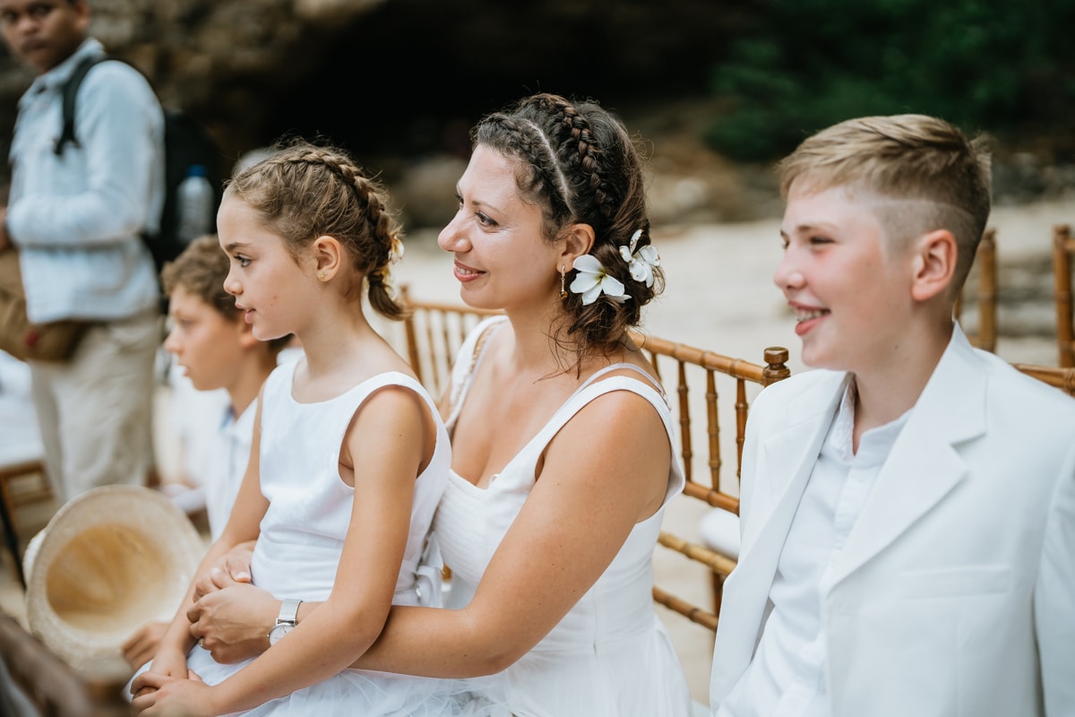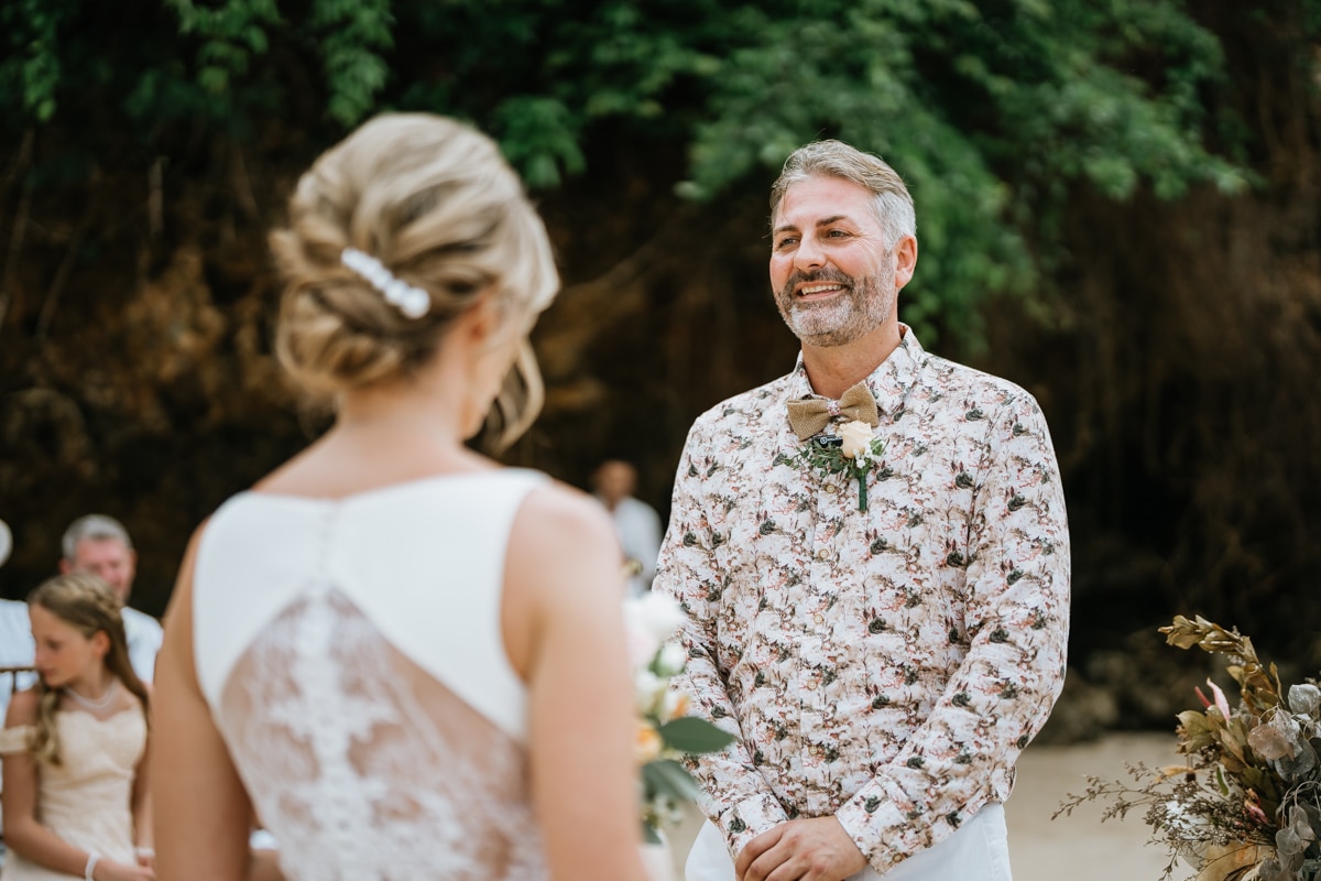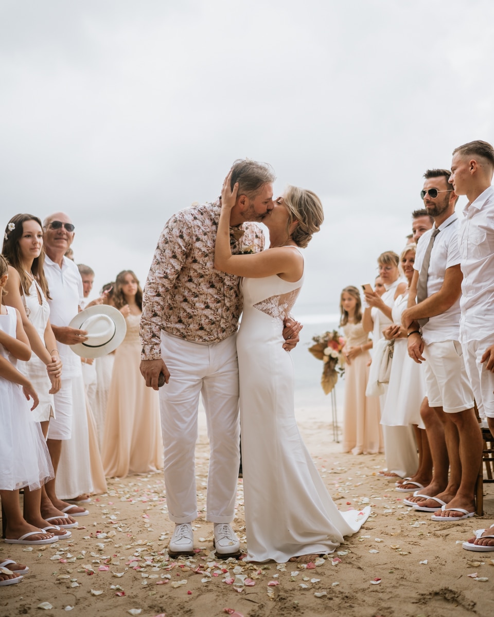 Une magnifique cérémonie avec la famille et les amis proches entre la plage de Balangan dans le sud de Bali suivi par un excellent diner dans une belle villa traditionnelle indonésienne.