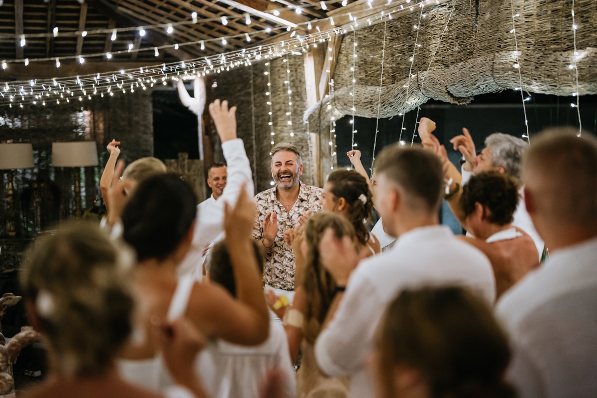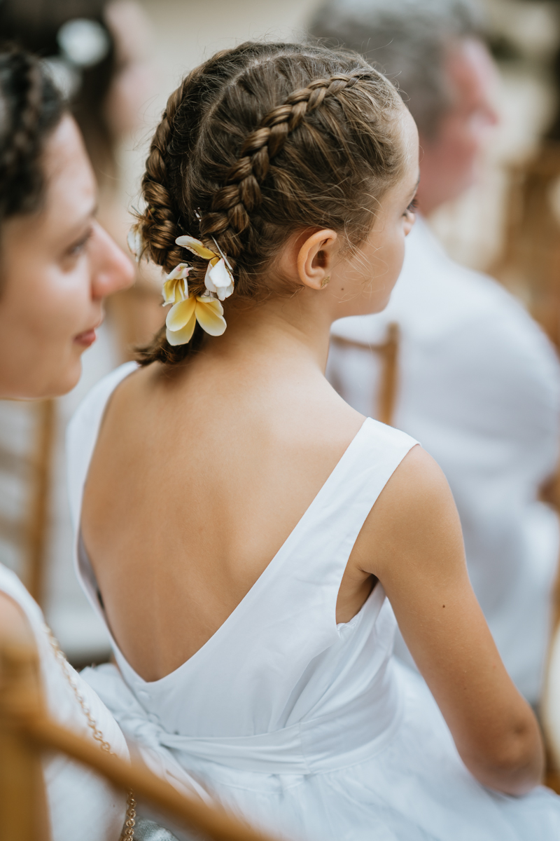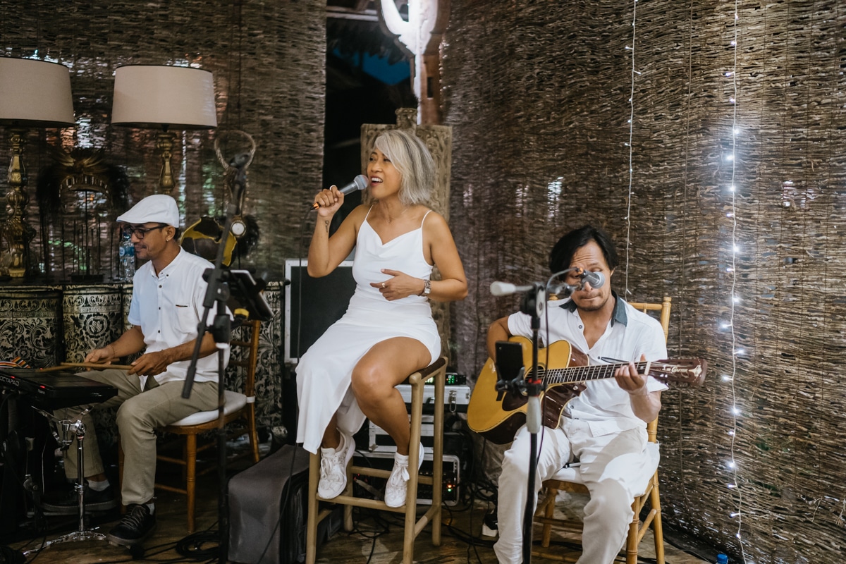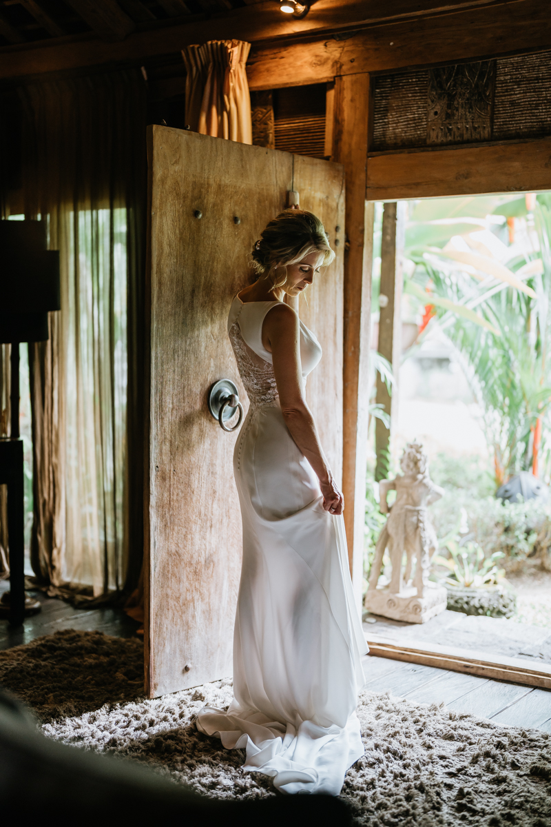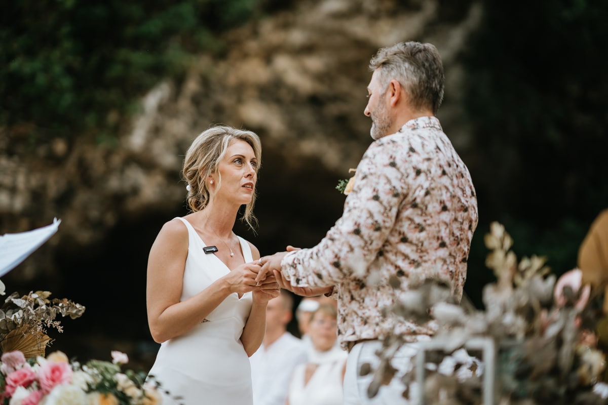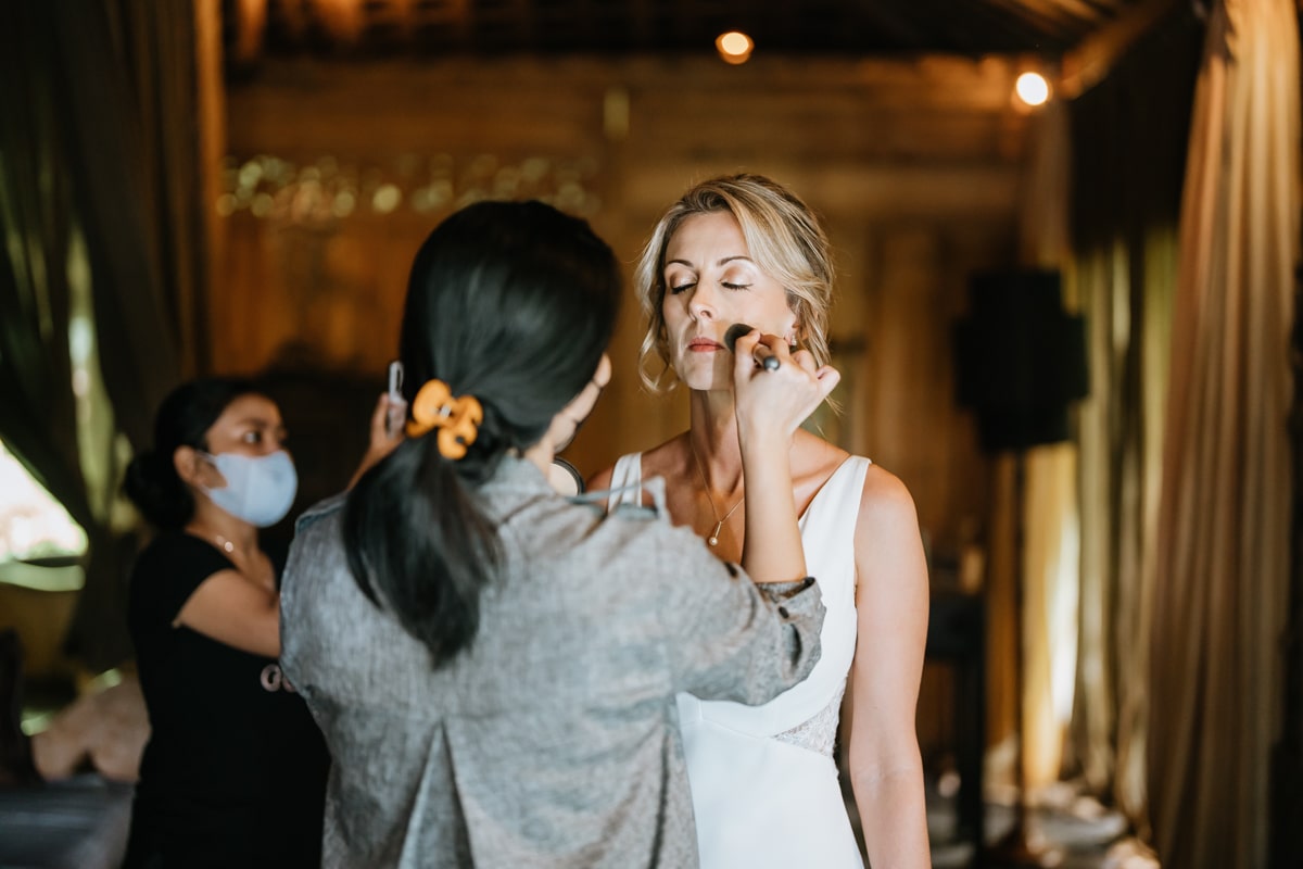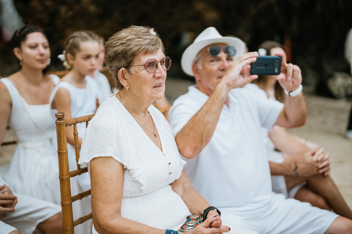 Une magnifique cérémonie avec la famille et les amis proches entre la plage de Balangan dans le sud de Bali suivi par un excellent diner dans une belle villa traditionnelle indonésienne.
