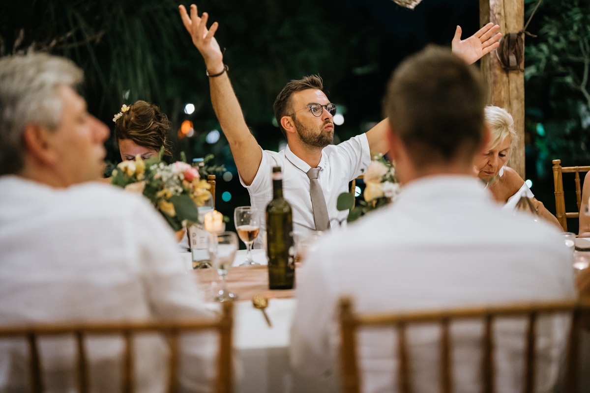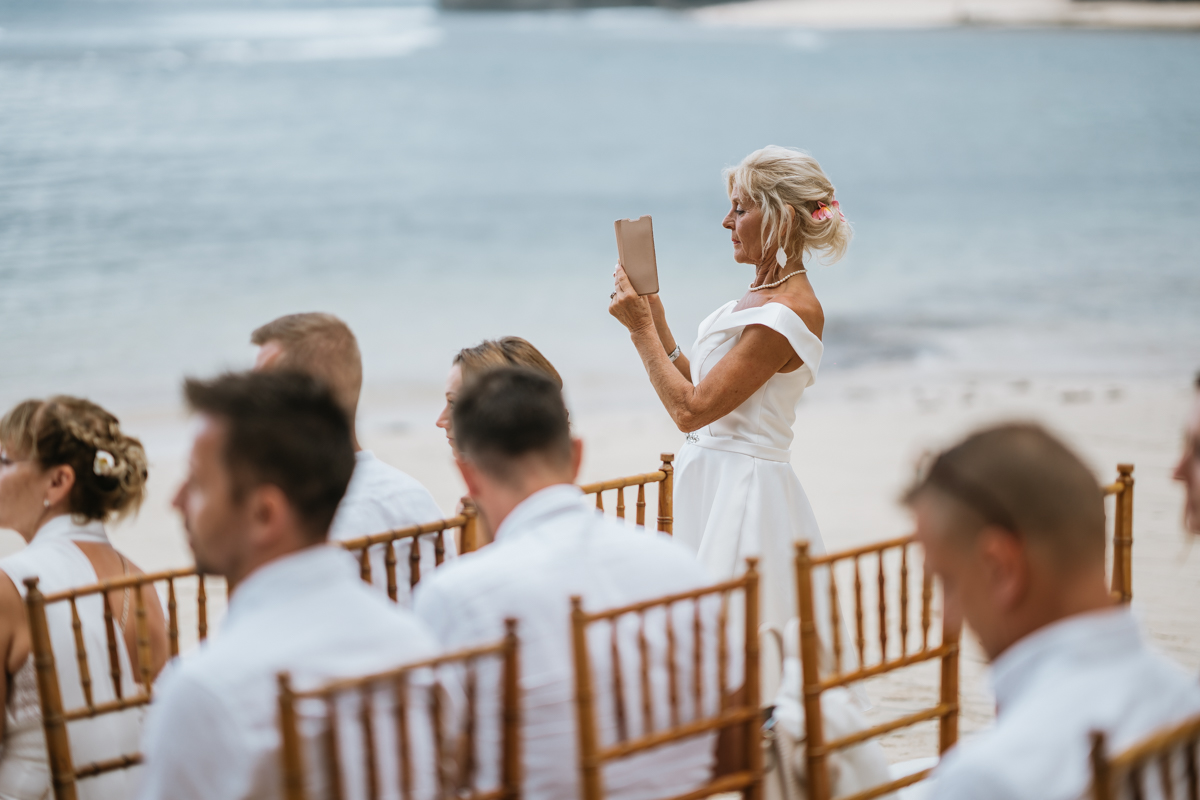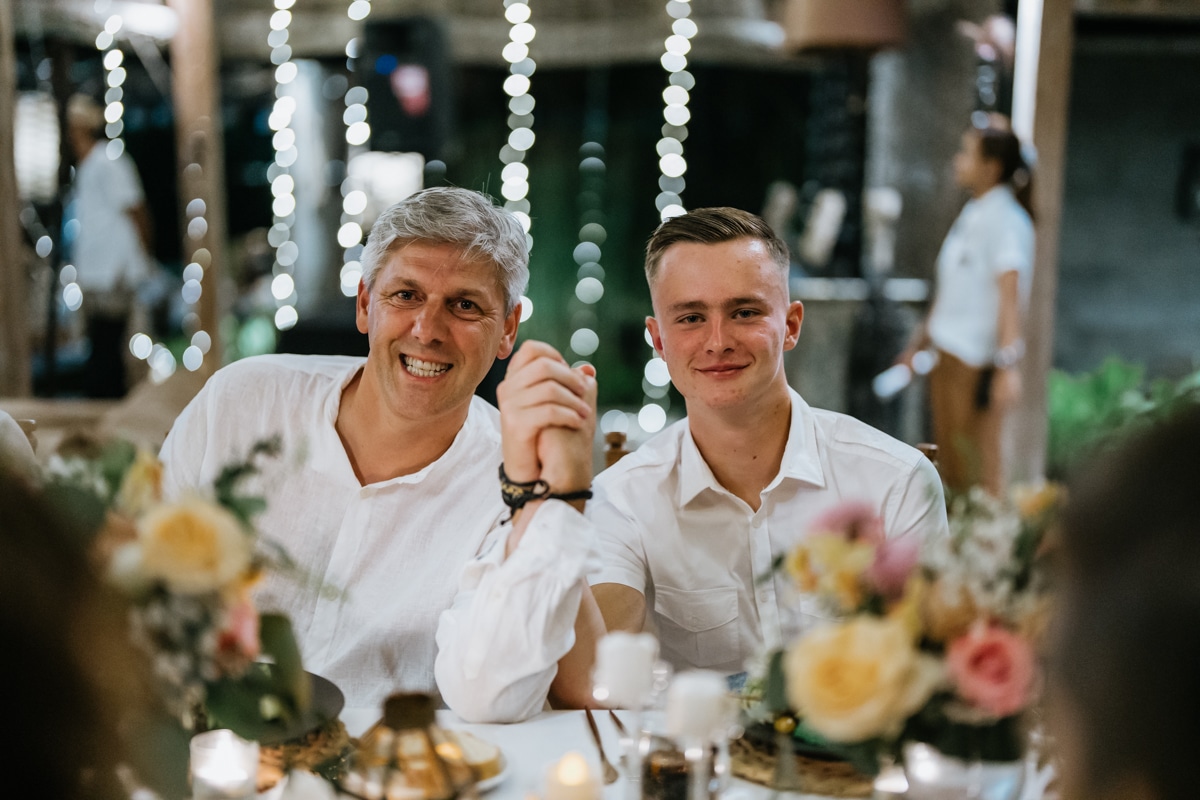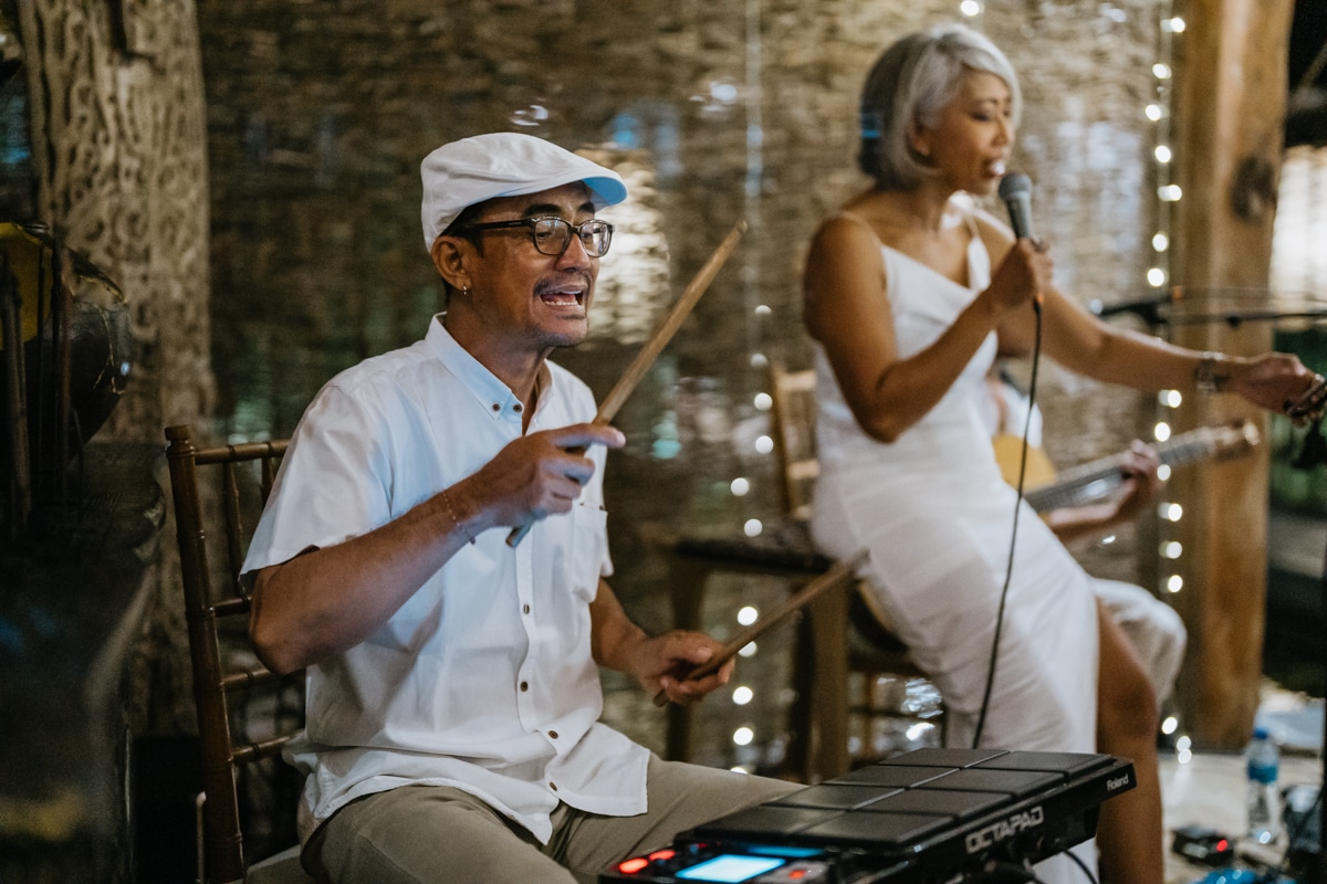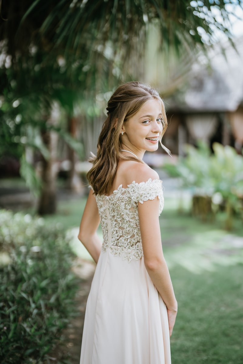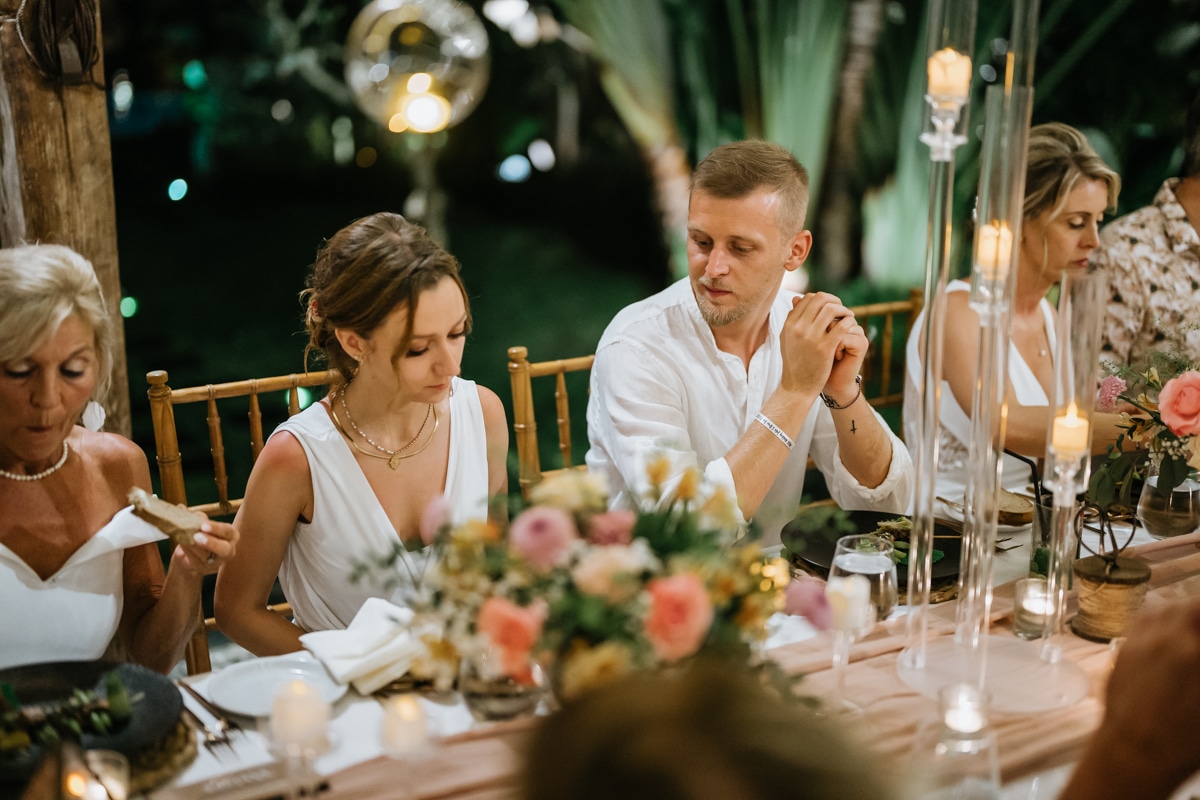 Une magnifique cérémonie avec la famille et les amis proches entre la plage de Balangan dans le sud de Bali suivi par un excellent diner dans une belle villa traditionnelle indonésienne.