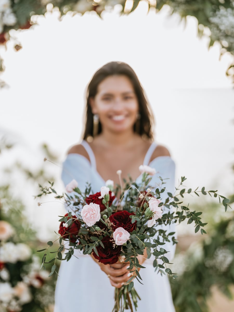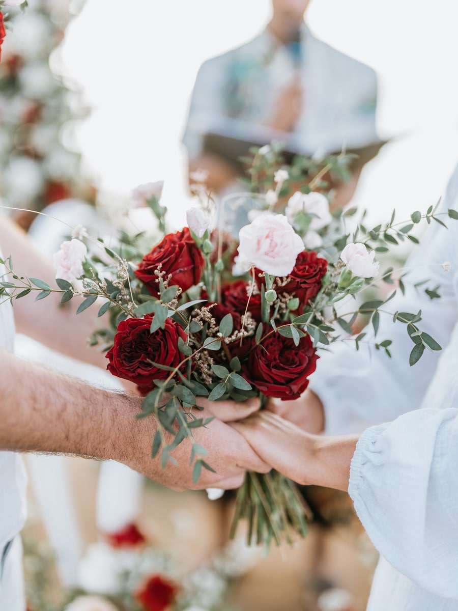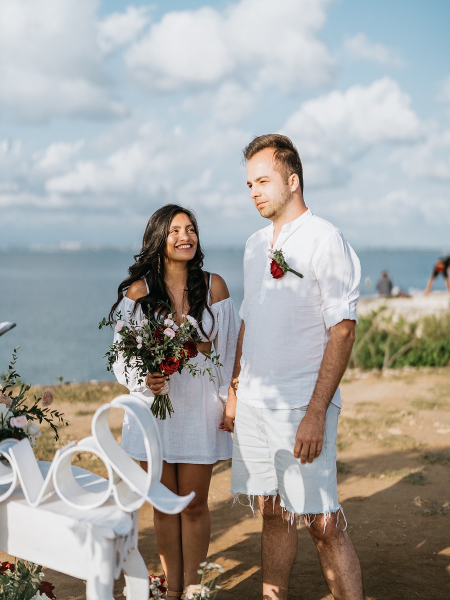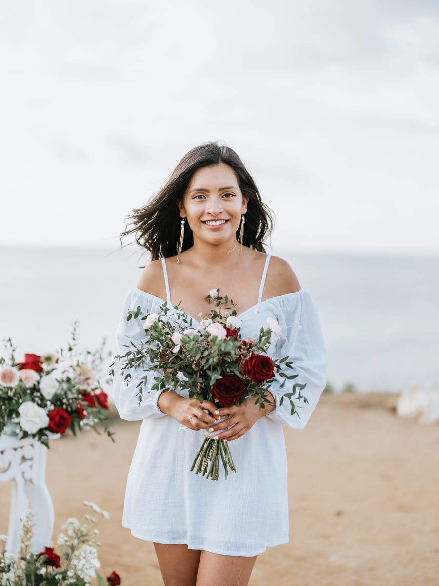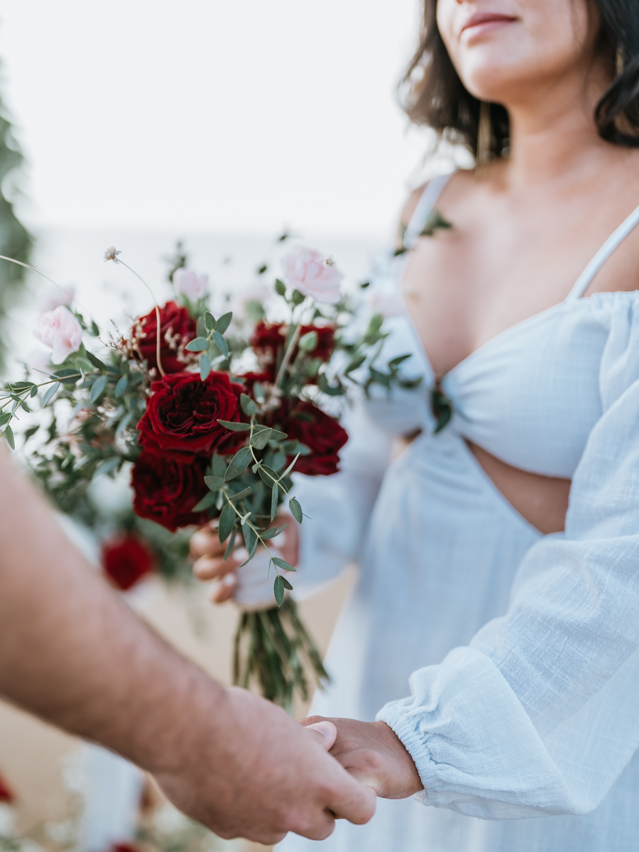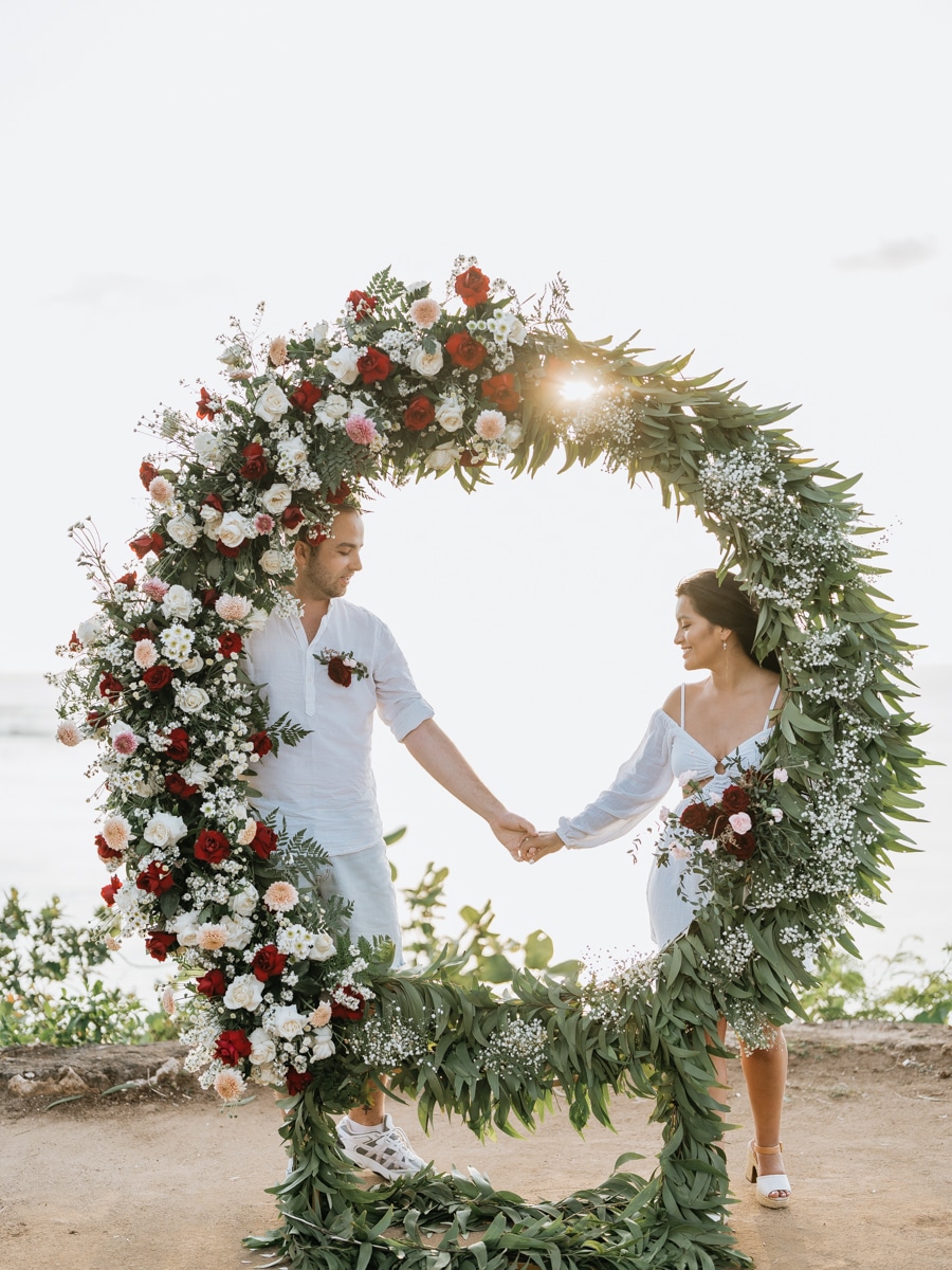 Dans l’intimité la plus totale, Karen et Mauricio se sont unis sans témoins ni invités, surplombant majestueusement les vagues déferlantes de l’océan Indien. La falaise, témoin silencieux de leur amour, a servi de toile de fond à une cérémonie empreinte de simplicité et de beauté brute. Les vœux échangés au son des vagues et sous le ciel balinais ont créé une atmosphère intime, reflétant la profondeur de l’engagement entre ces deux âmes liées par le destin.