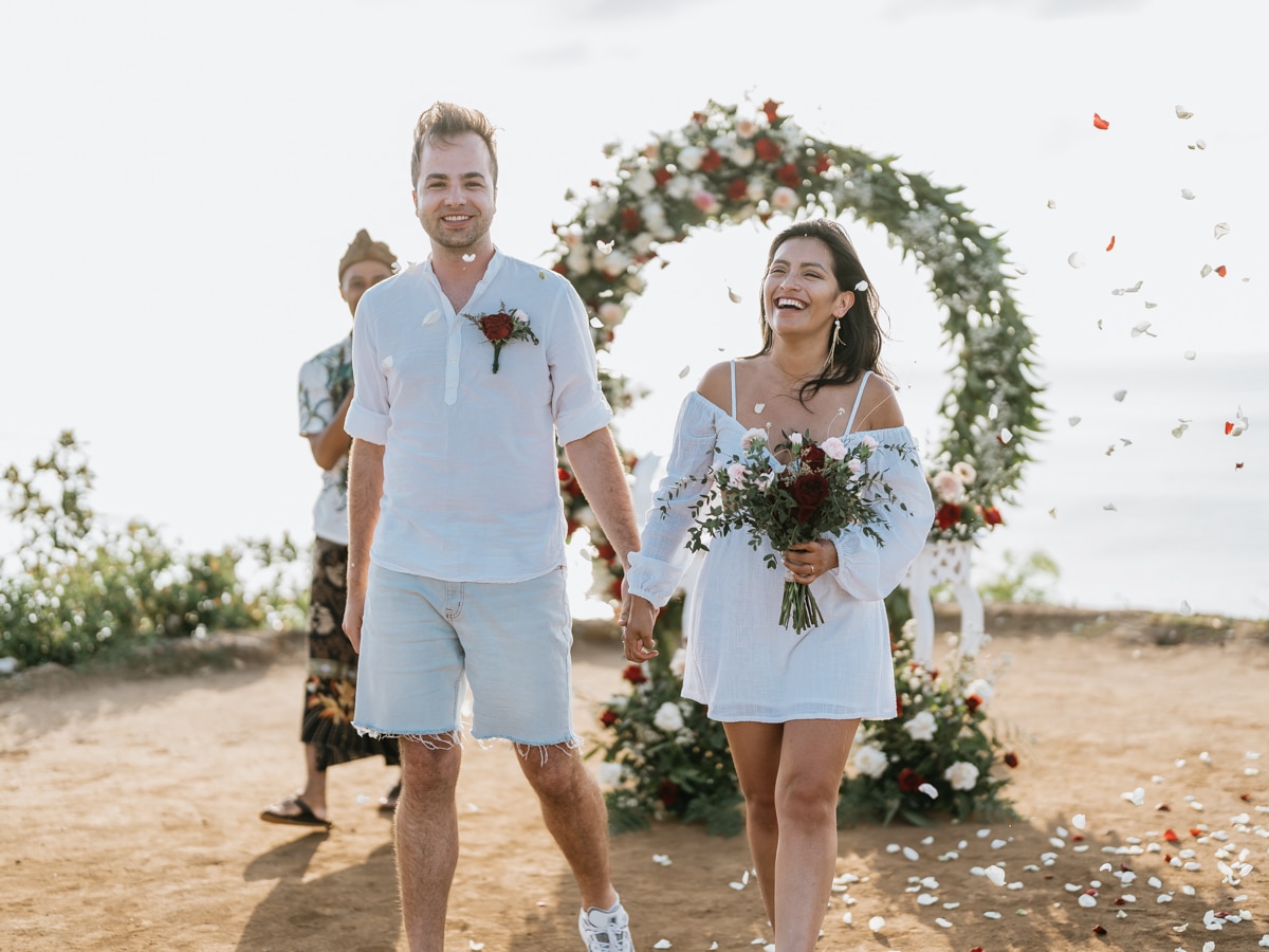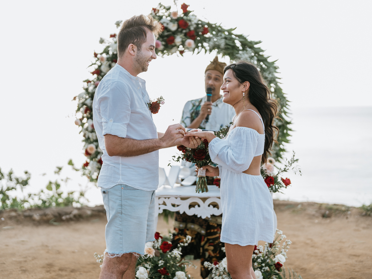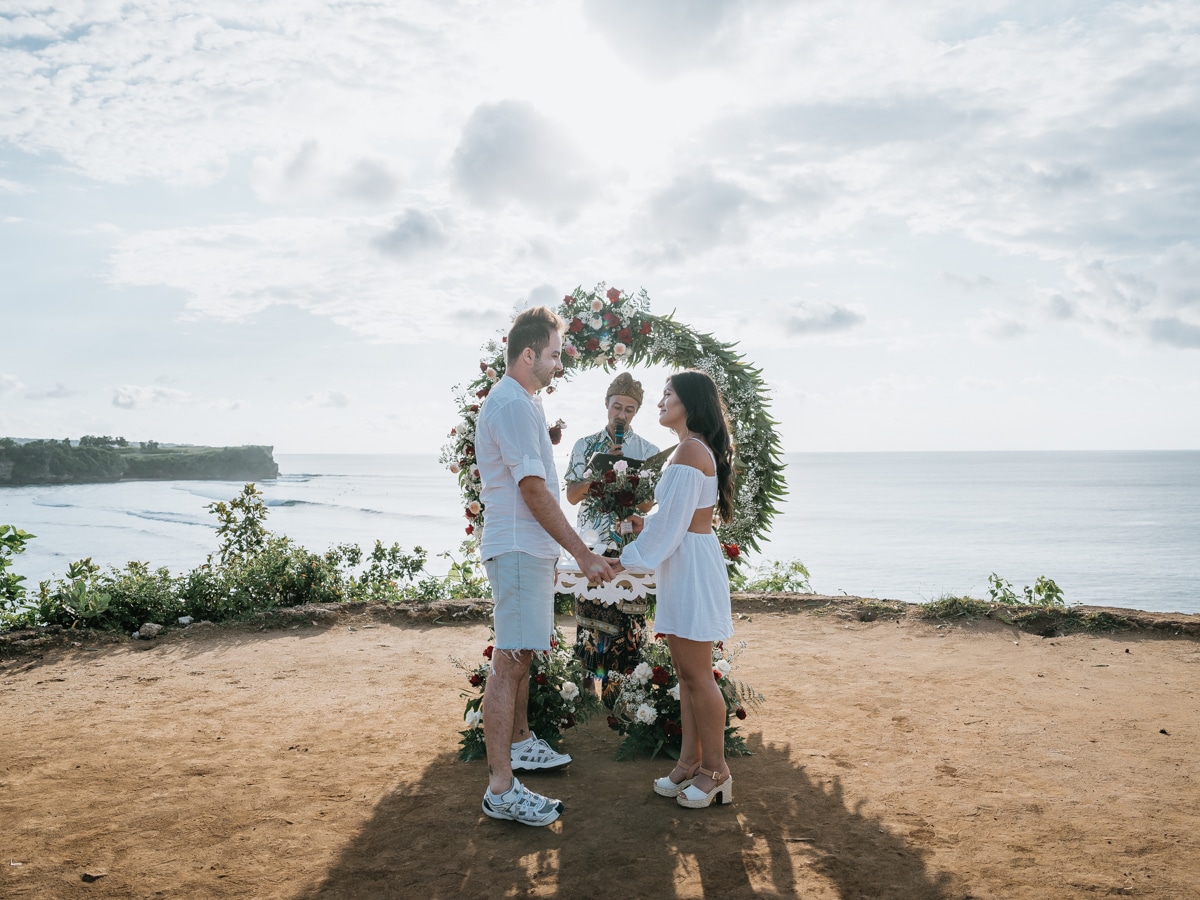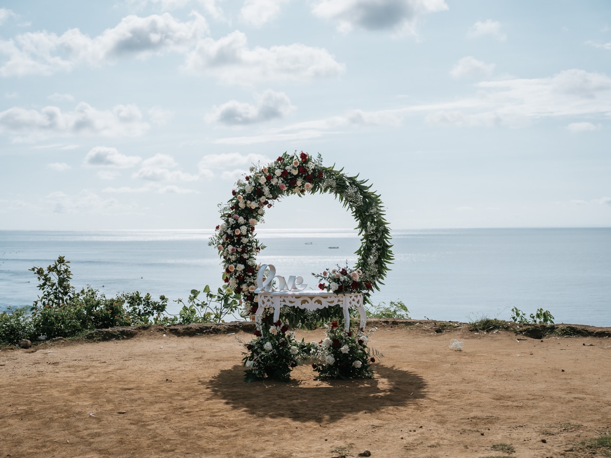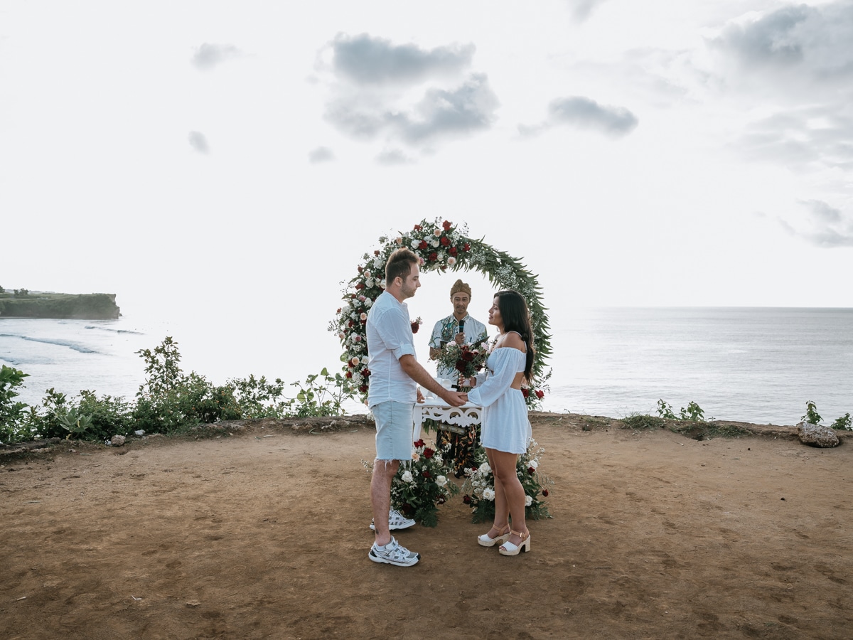 Le mariage de Karen et Mauricio sur la falaise de Balangan représente bien une petite cérémonie de mariage à Bali que nous organisons tout au long de l’année pour un petit budget.