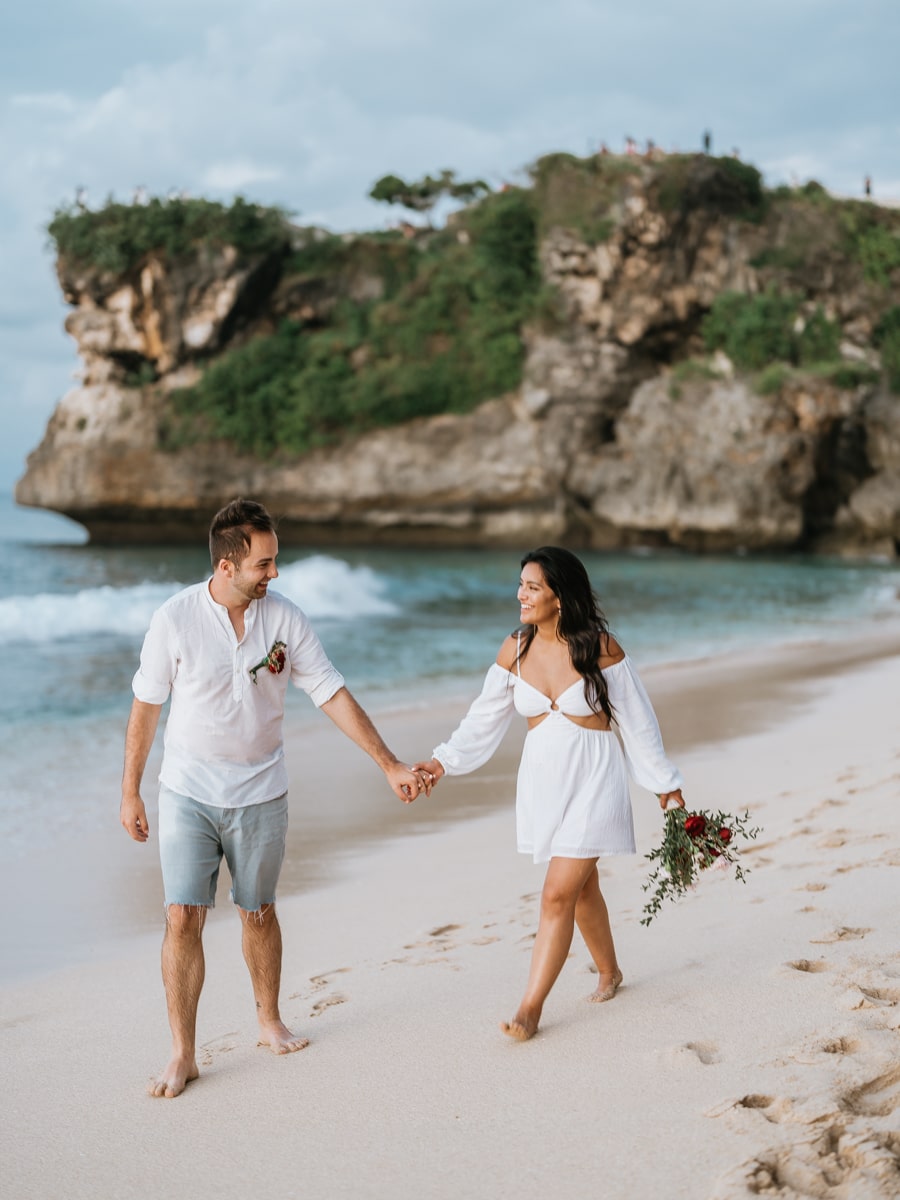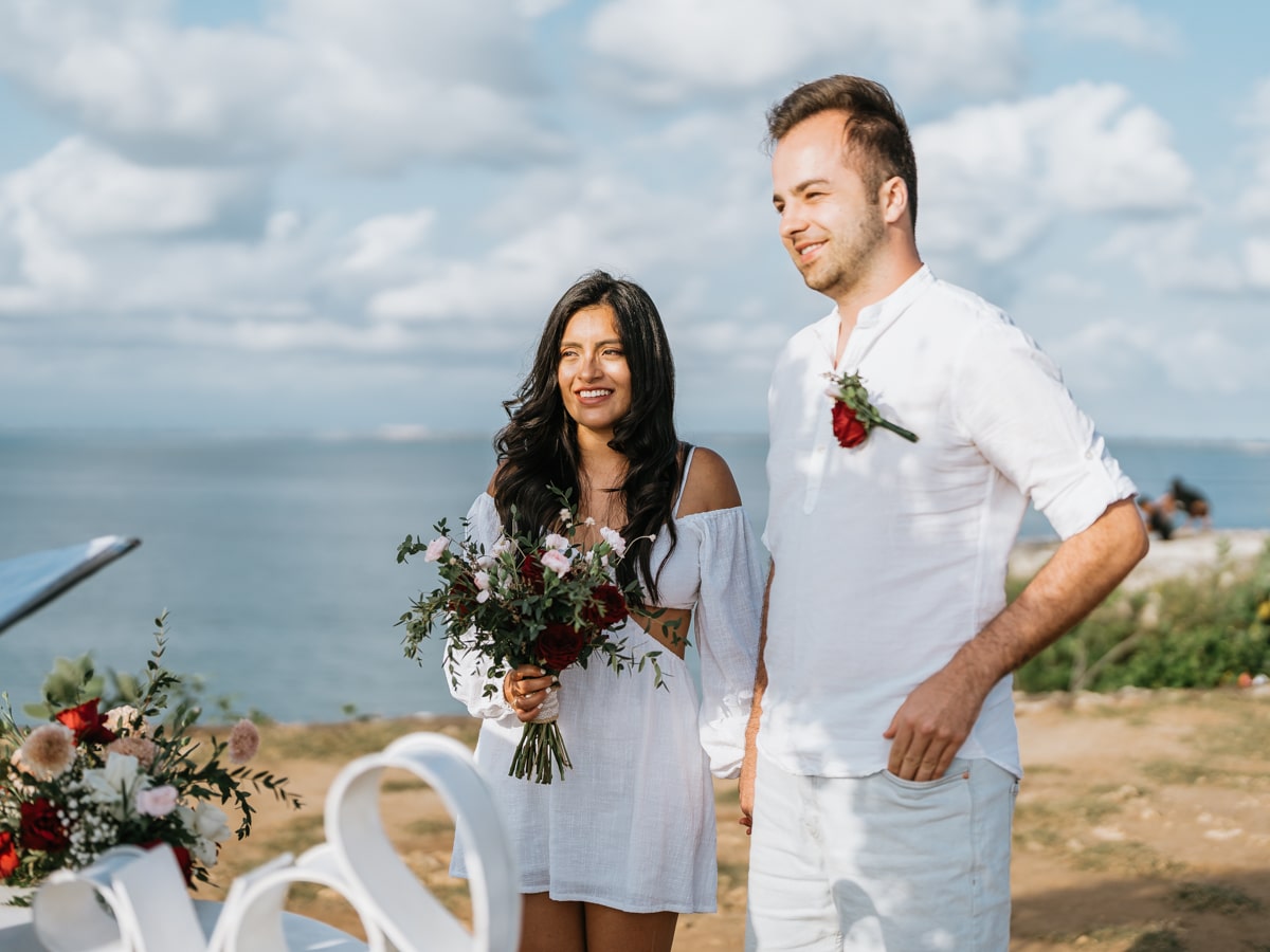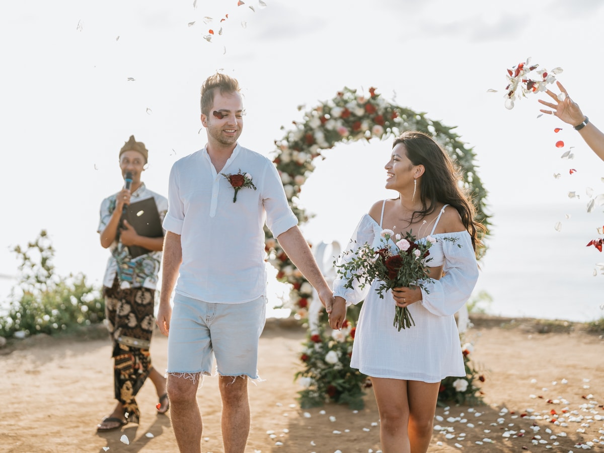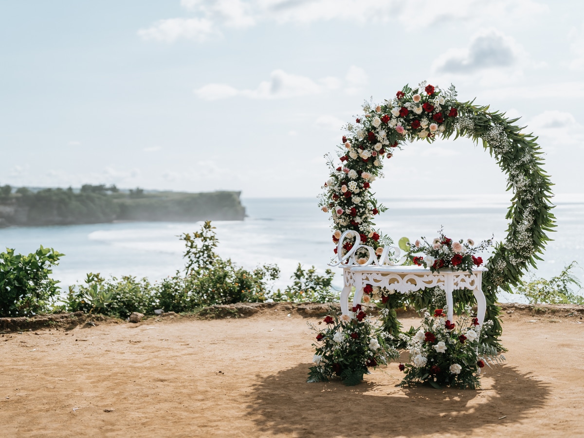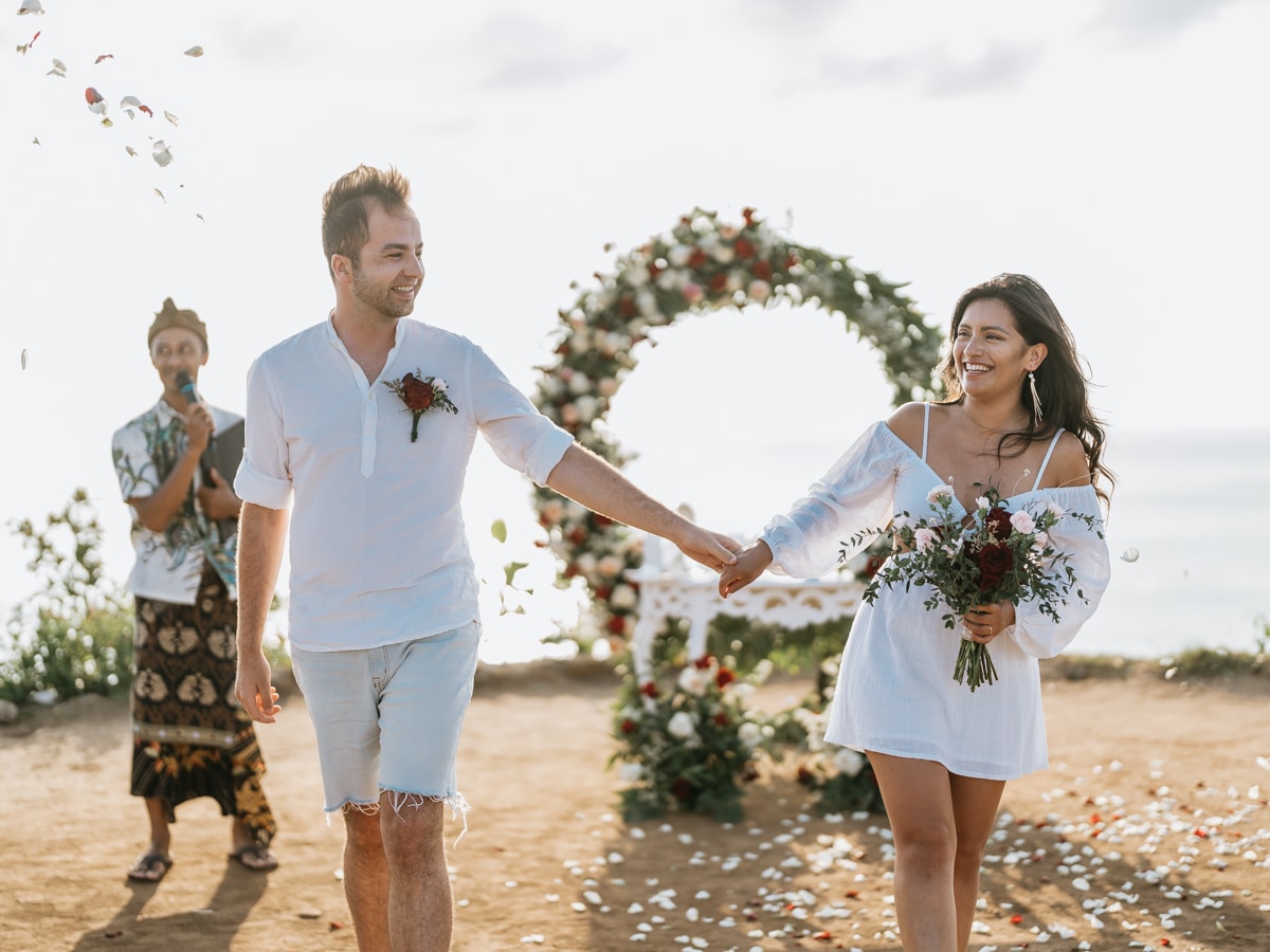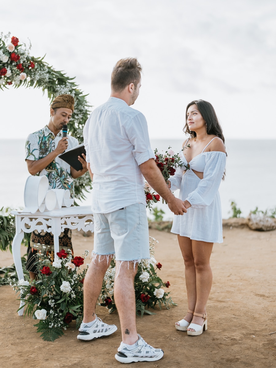 Le mariage de Karen et Mauricio sur la falaise de Balangan représente bien une petite cérémonie de mariage à Bali que nous organisons tout au long de l’année pour un petit budget.
