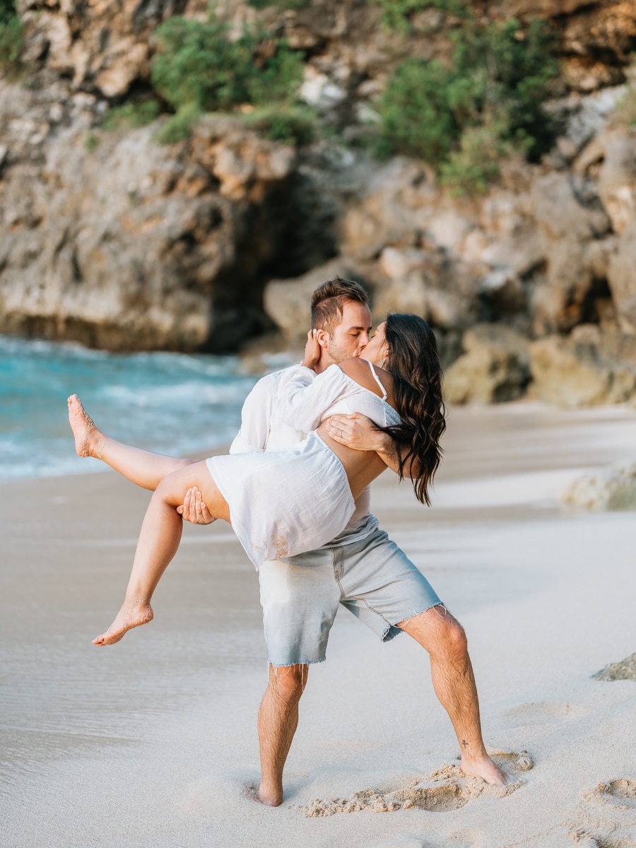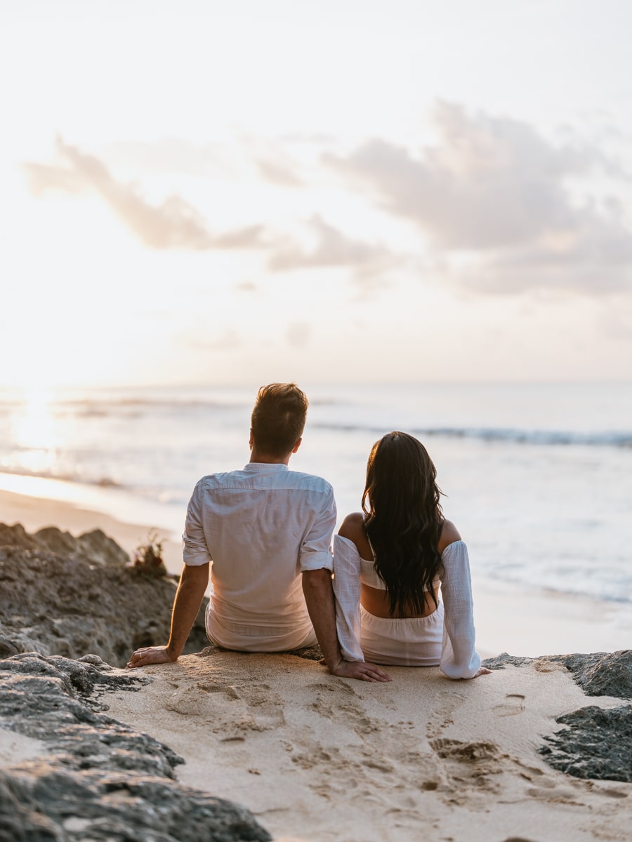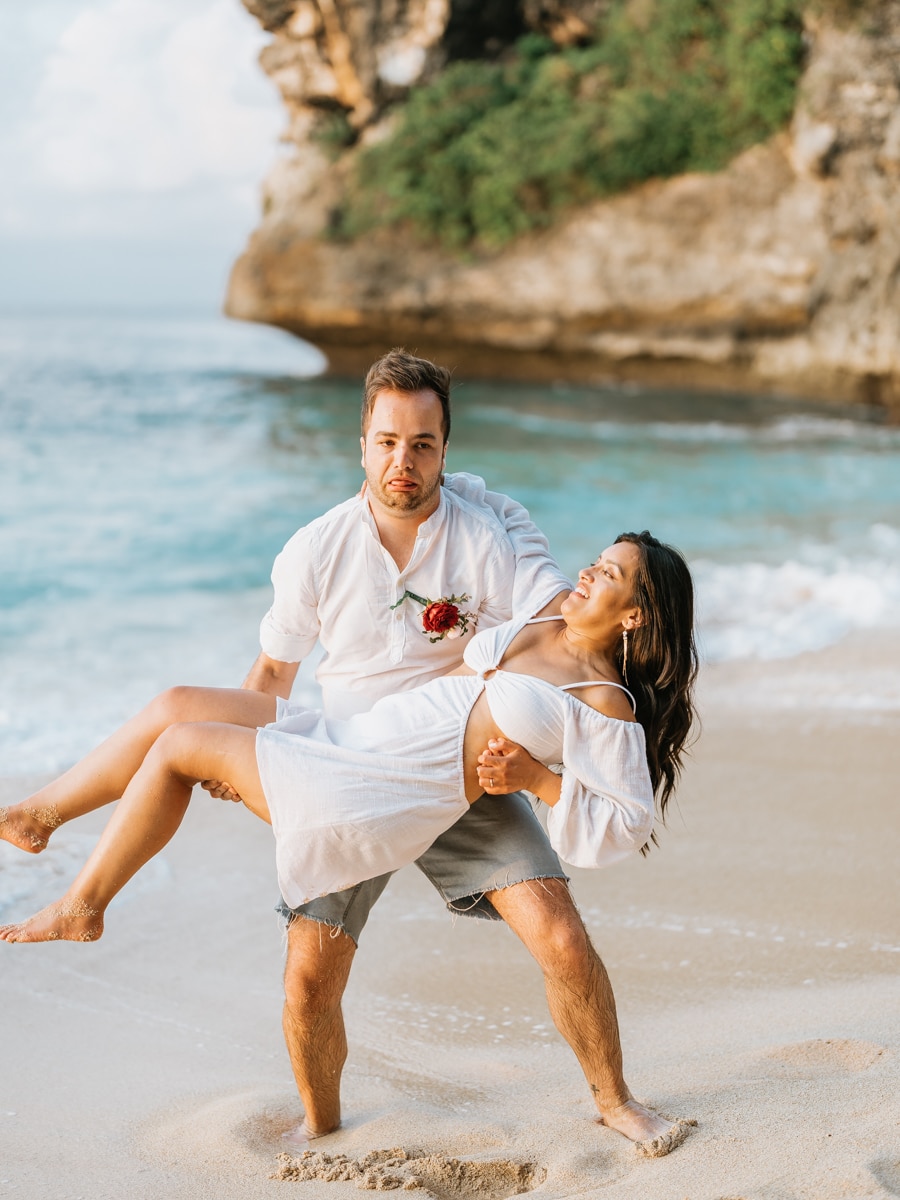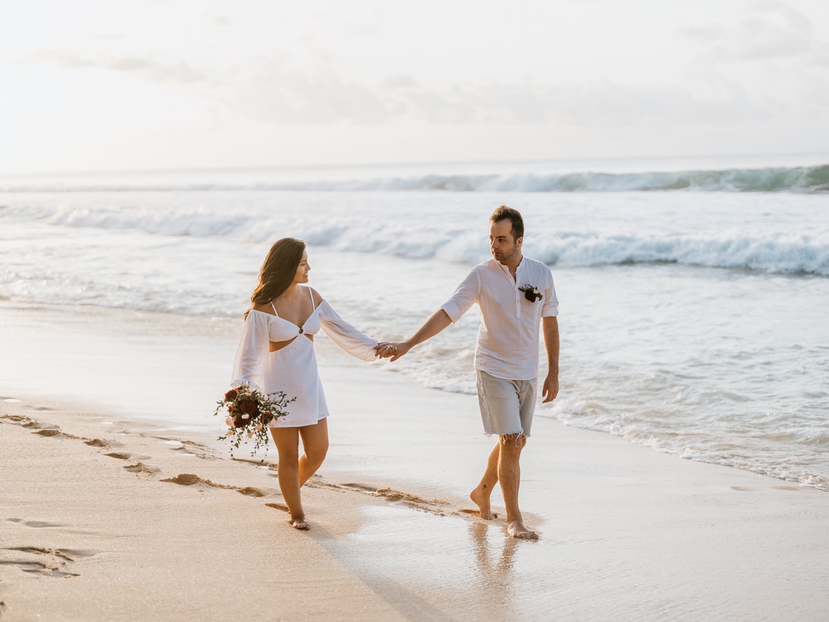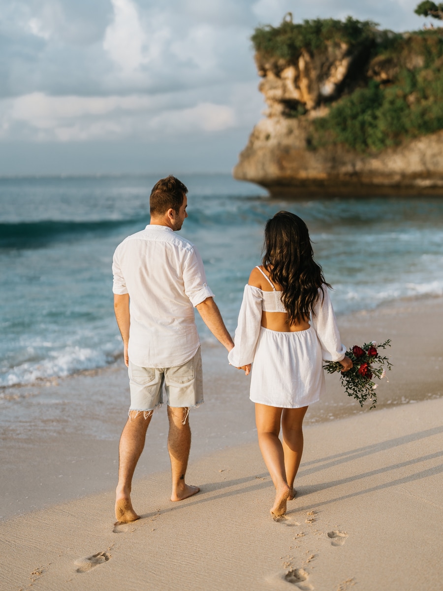À la fin de la cérémonie, le couple s’est offert un moment magique alors que le soleil commençait à se retirer derrière l’horizon. Un photoshoot romantique a capturé l’éclat de leur amour dans les teintes chaudes du coucher de soleil balinais. La plage de Balagan, baignée dans une lumière dorée, a fourni un cadre pittoresque pour immortaliser les moments de complicité partagés par Karen et Mauricio.