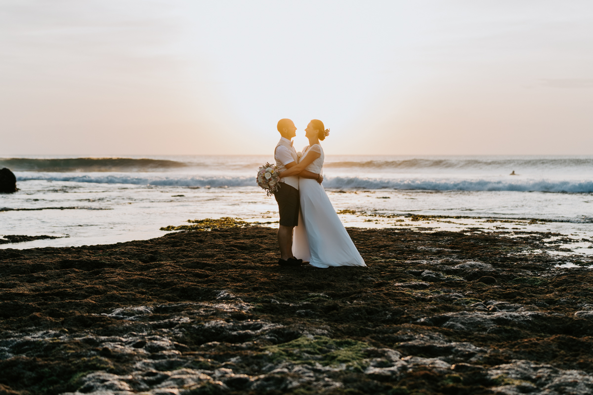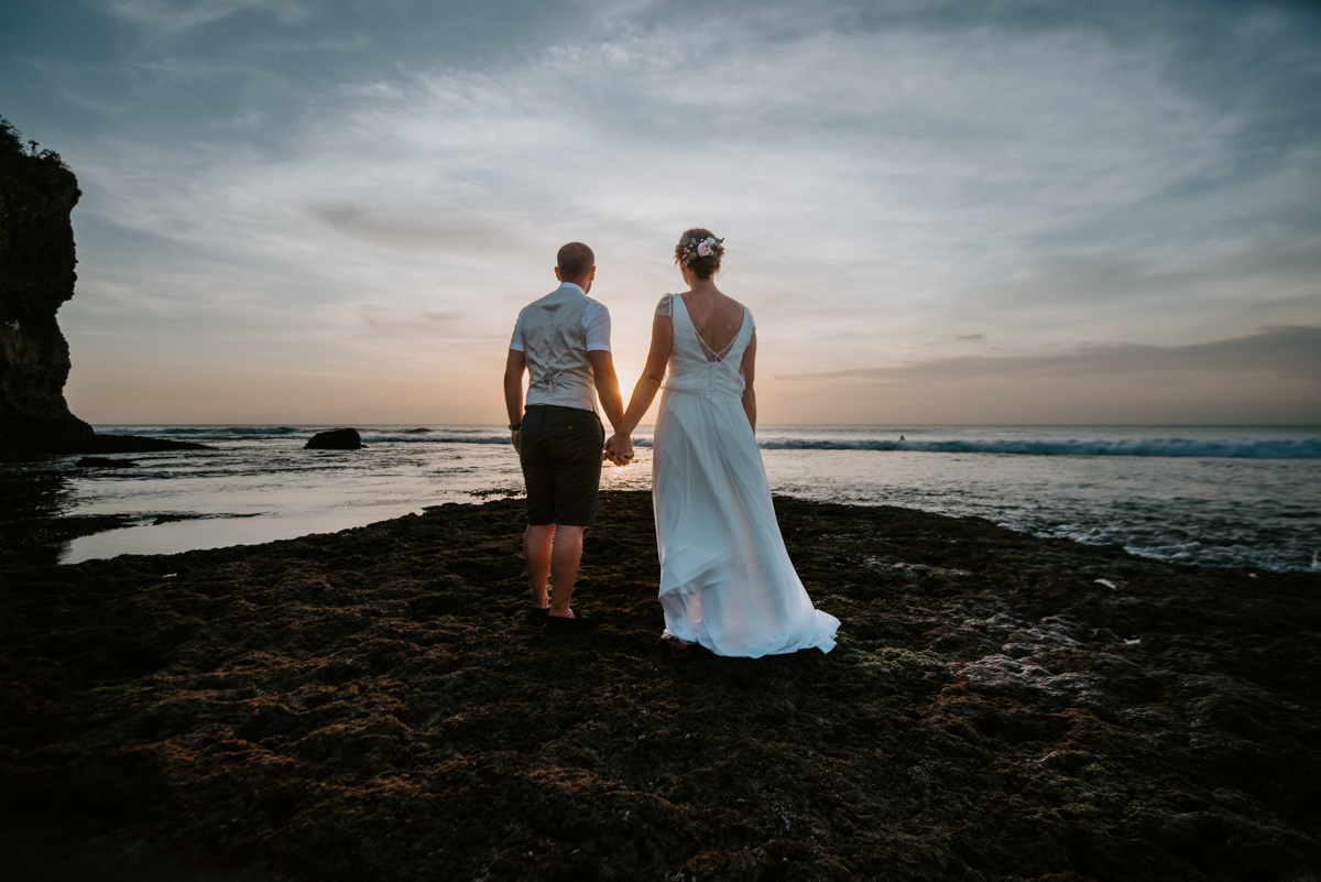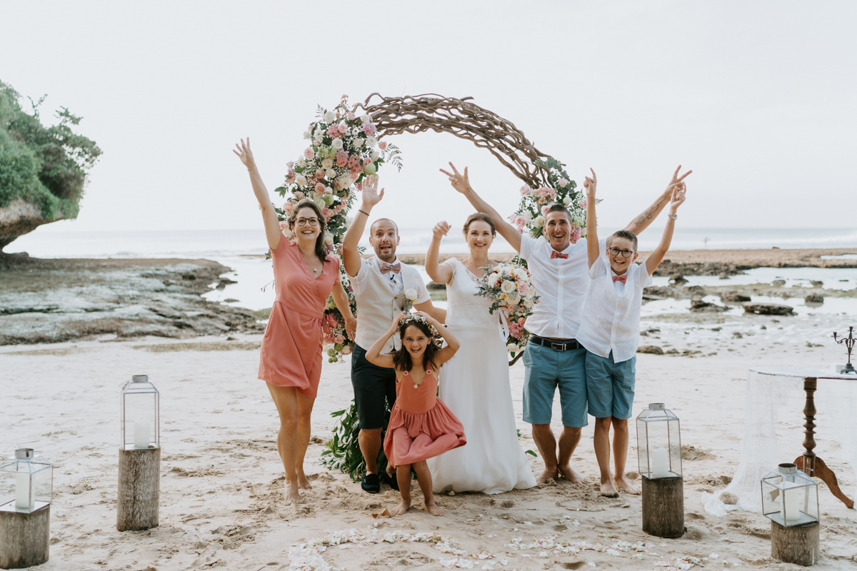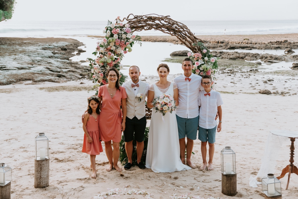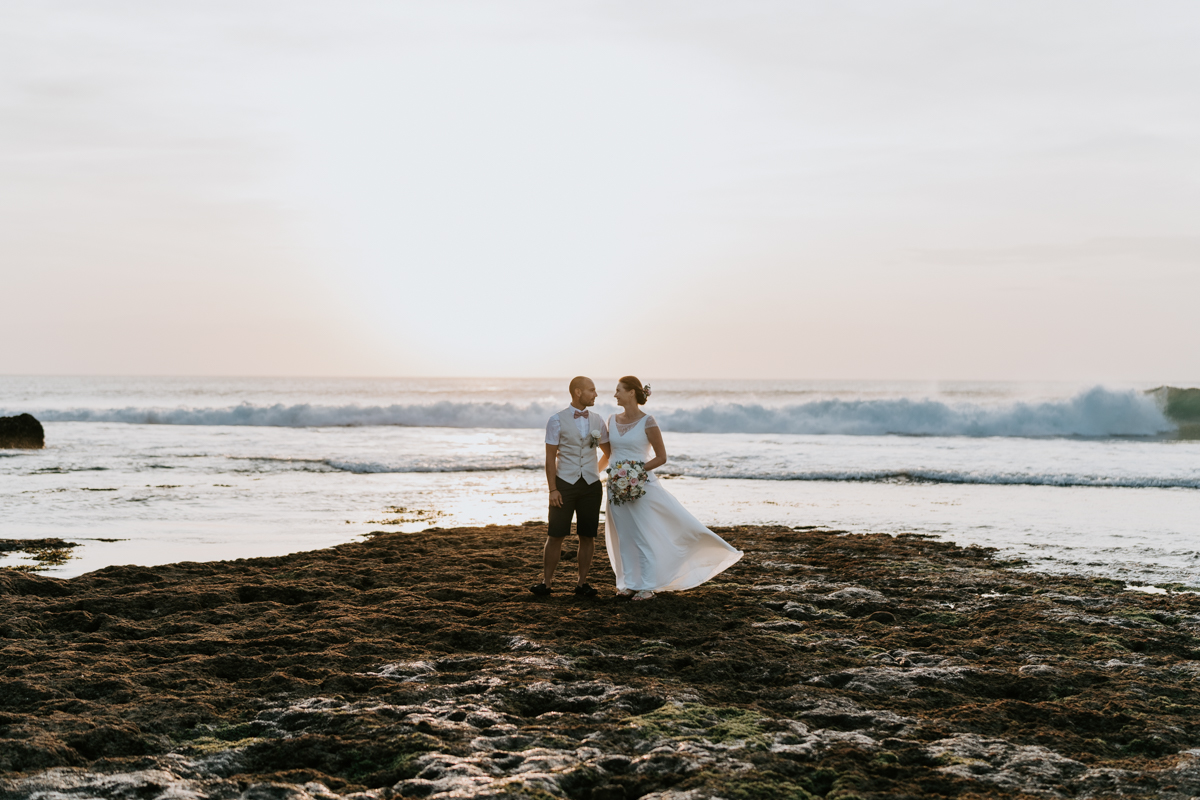Le mariage de Laurine et Alexandre sur une petite plage privee du Sud de Bali. Un magnifique mariage en petit comite avec la famille proche. Cloture par un coucher de soleil epoustouflant.