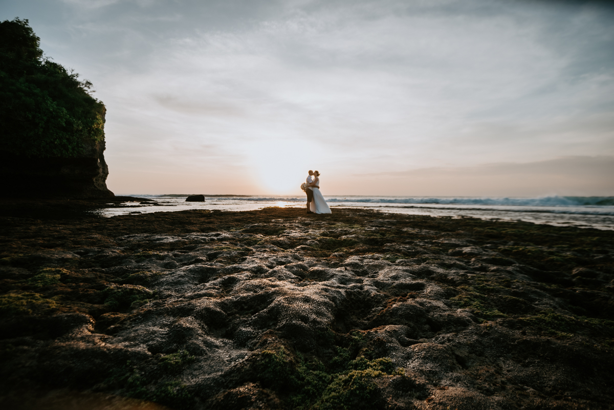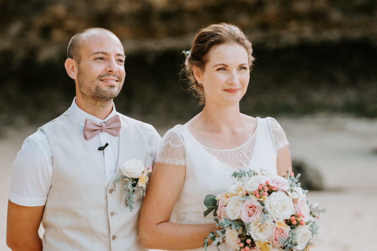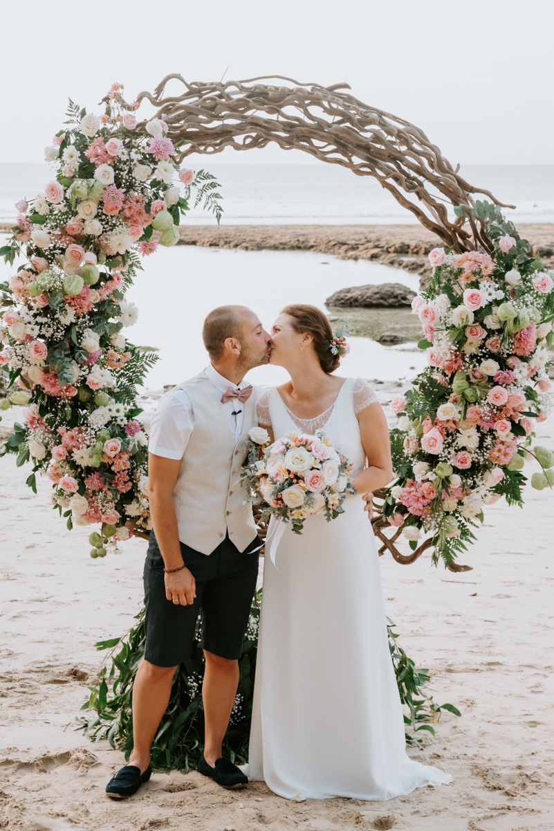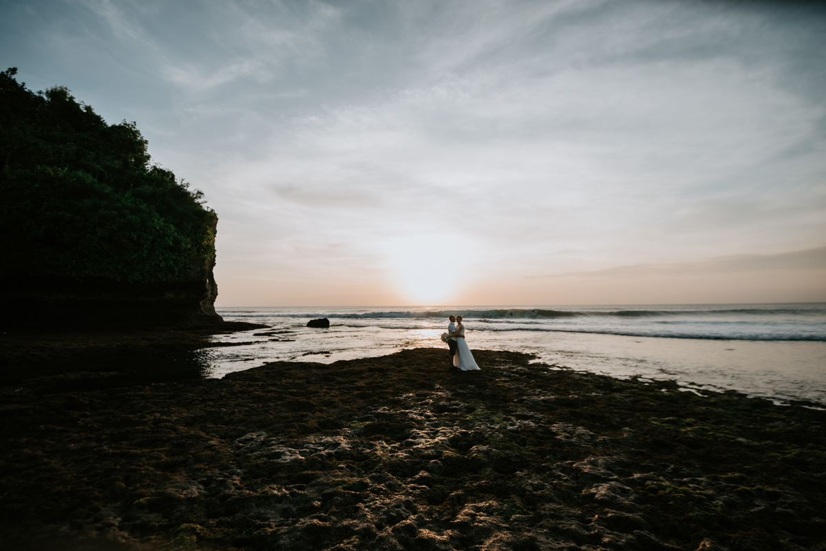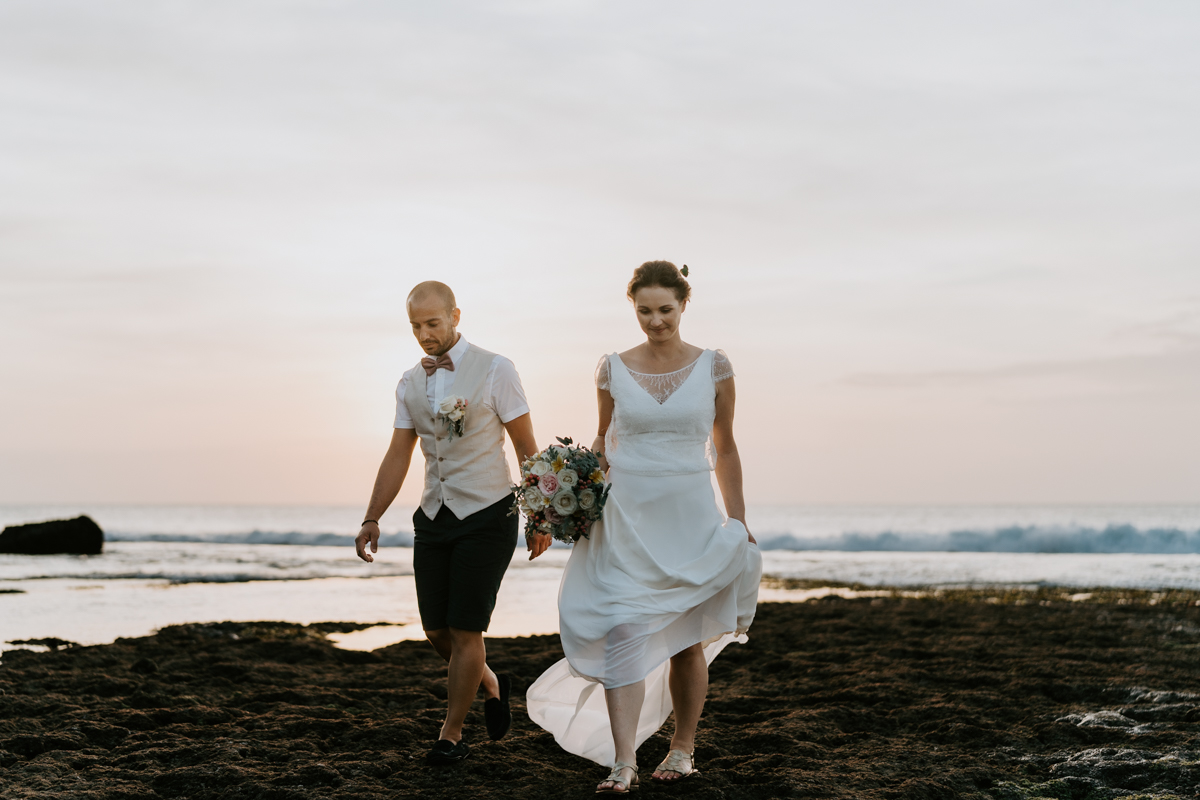 Le mariage de Laurine et Alexandre sur une petite plage privee du Sud de Bali. Un magnifique mariage en petit comite avec la famille proche. Cloture par un coucher de soleil epoustouflant.