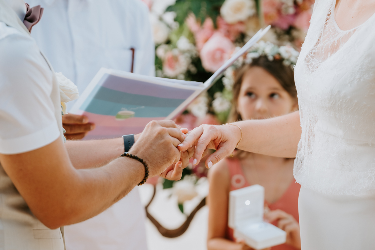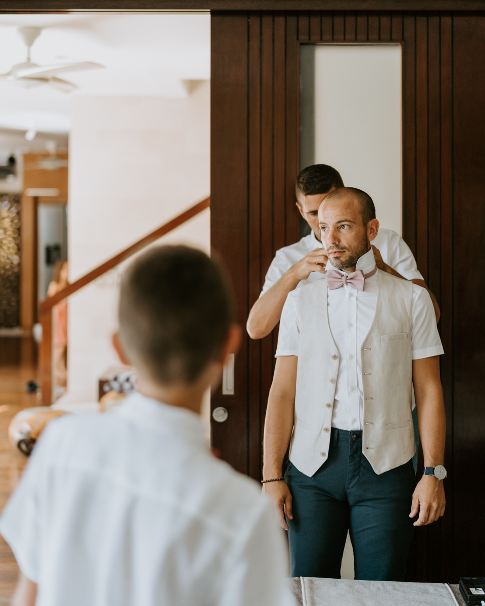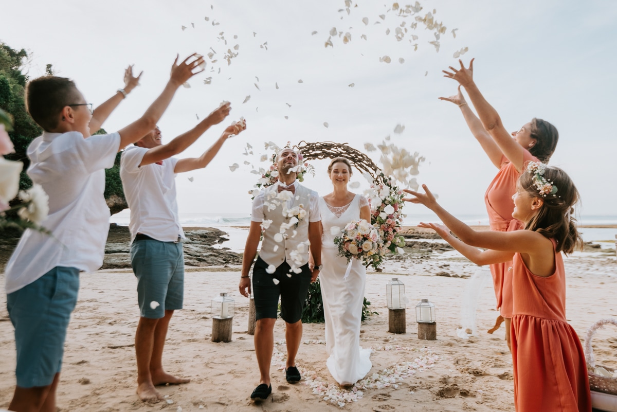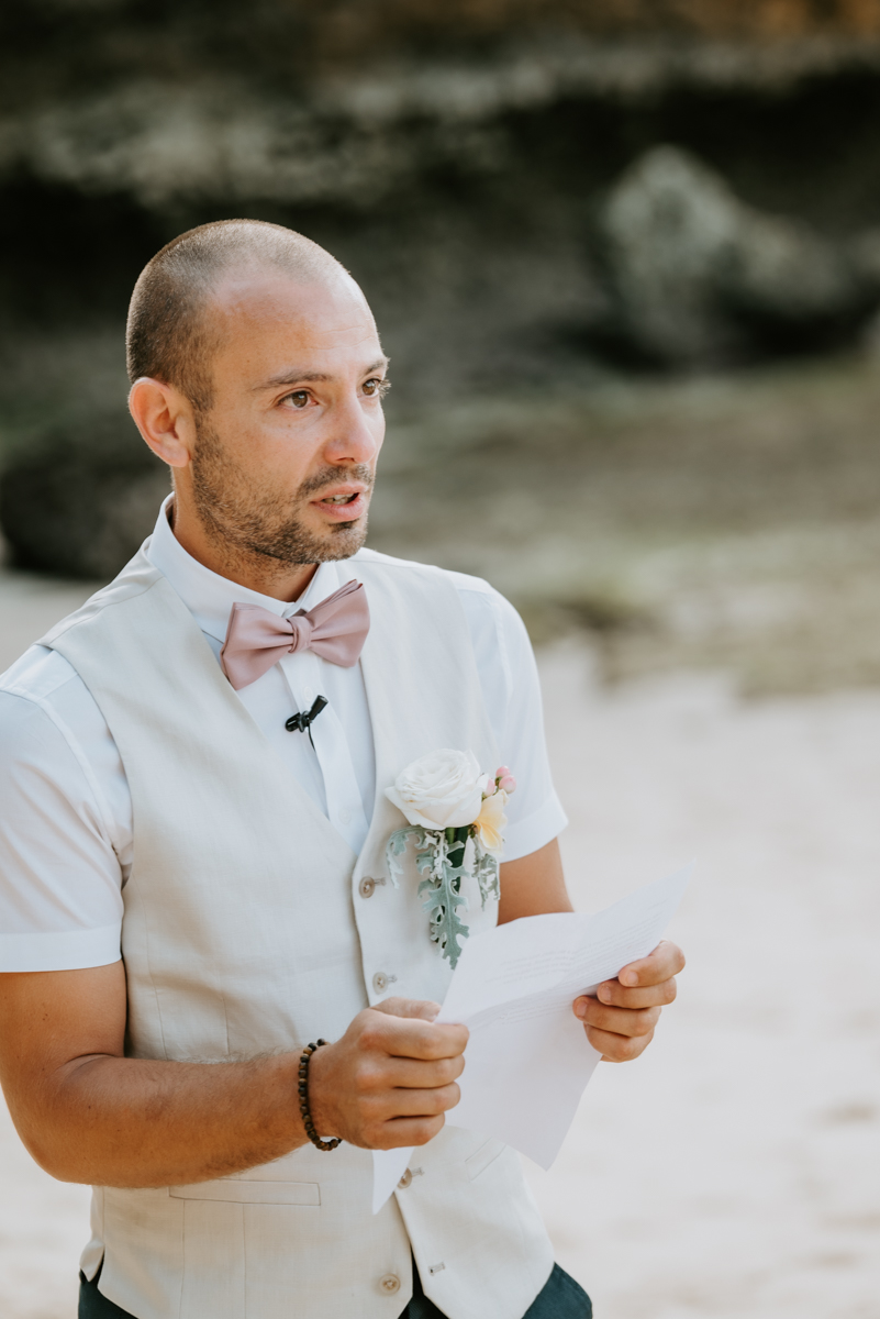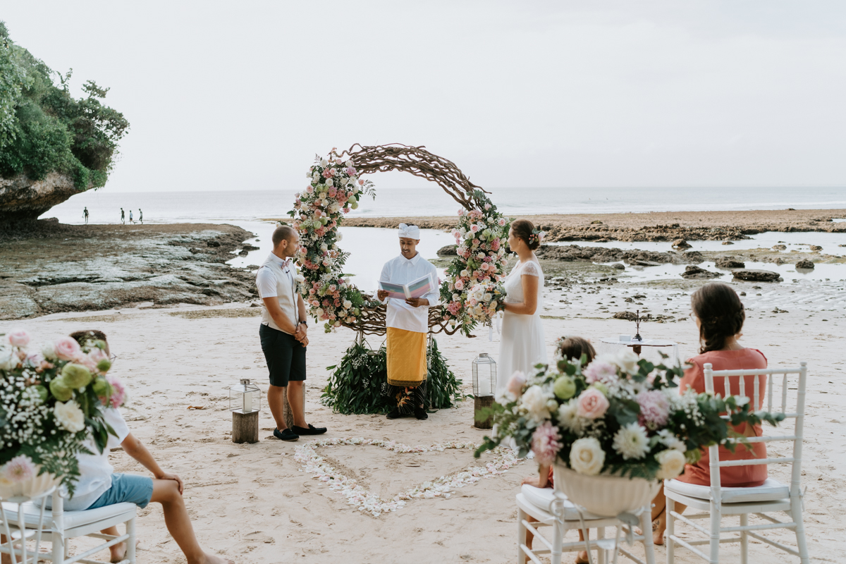 Le mariage de Laurine et Alexandre sur une petite plage privee du Sud de Bali. Un magnifique mariage en petit comite avec la famille proche. Cloture par un coucher de soleil epoustouflant.