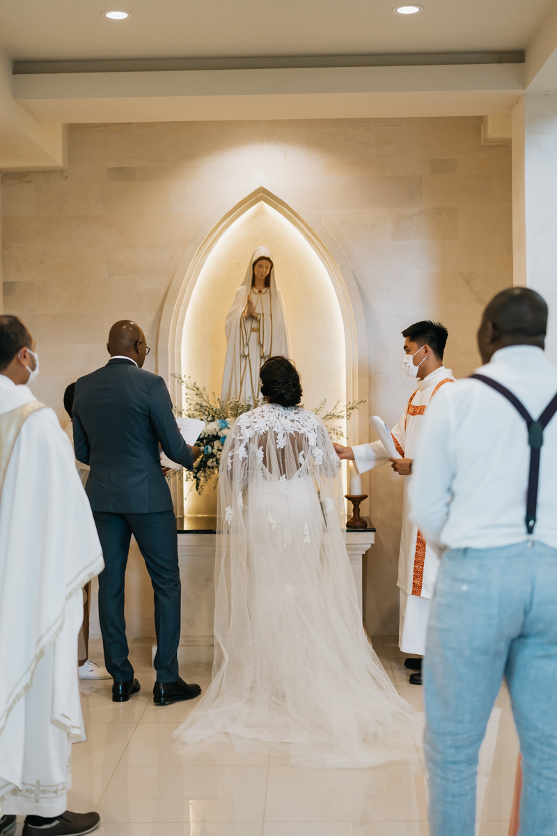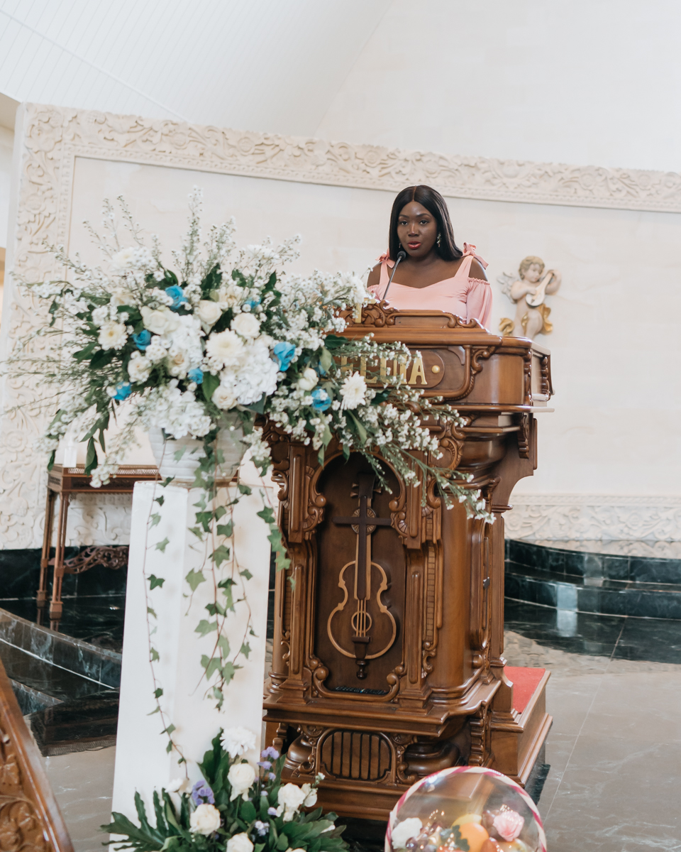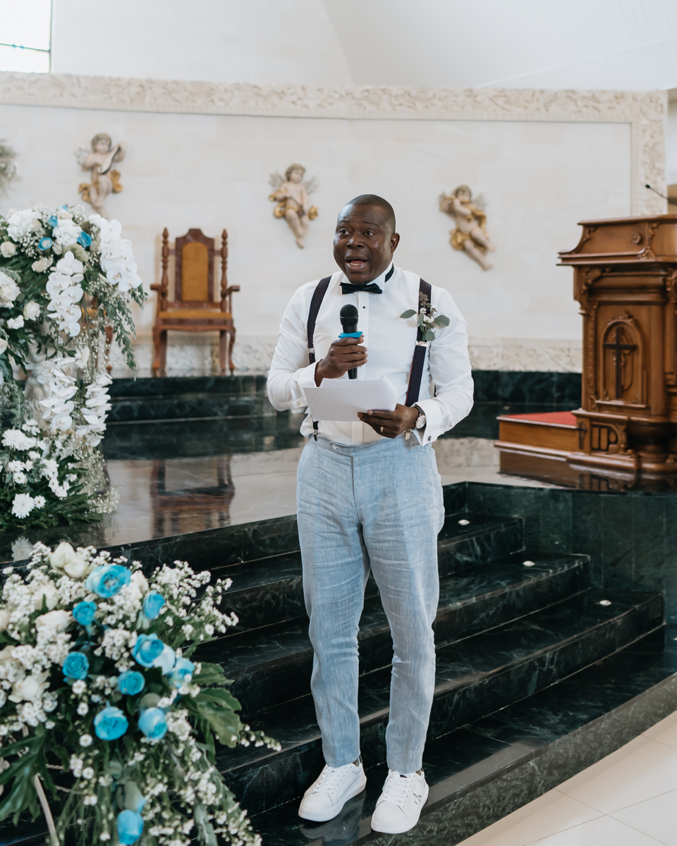 La cérémonie elle-même s’est déroulée dans une magnifique église catholique, offrant un cadre enchanteur pour leur engagement. L’église était ornée de fleurs exotiques et était baignée de lumière naturelle, créant une atmosphère véritablement magique. Un chœur de chanteurs talentueux a ajouté une dimension spirituelle à la cérémonie avec leurs voix angéliques.