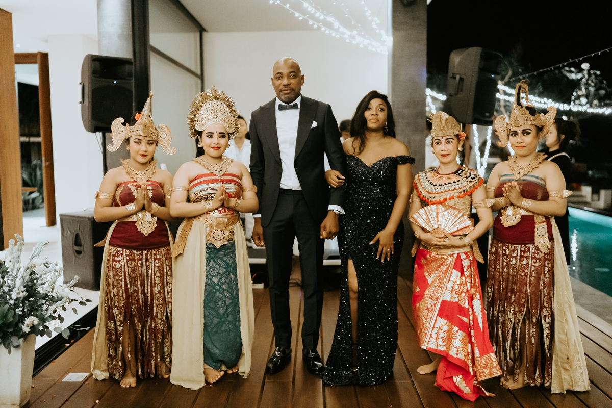 Le mariage d’Hermine et Romuald à Bali était une célébration vraiment mémorable. Ce couple venu du Bénin avait choisi cette magnifique île indonésienne comme cadre idyllique pour leur union, et ils étaient entourés de leurs amis et de leur famille venus avec eux pour partager ce moment spécial.