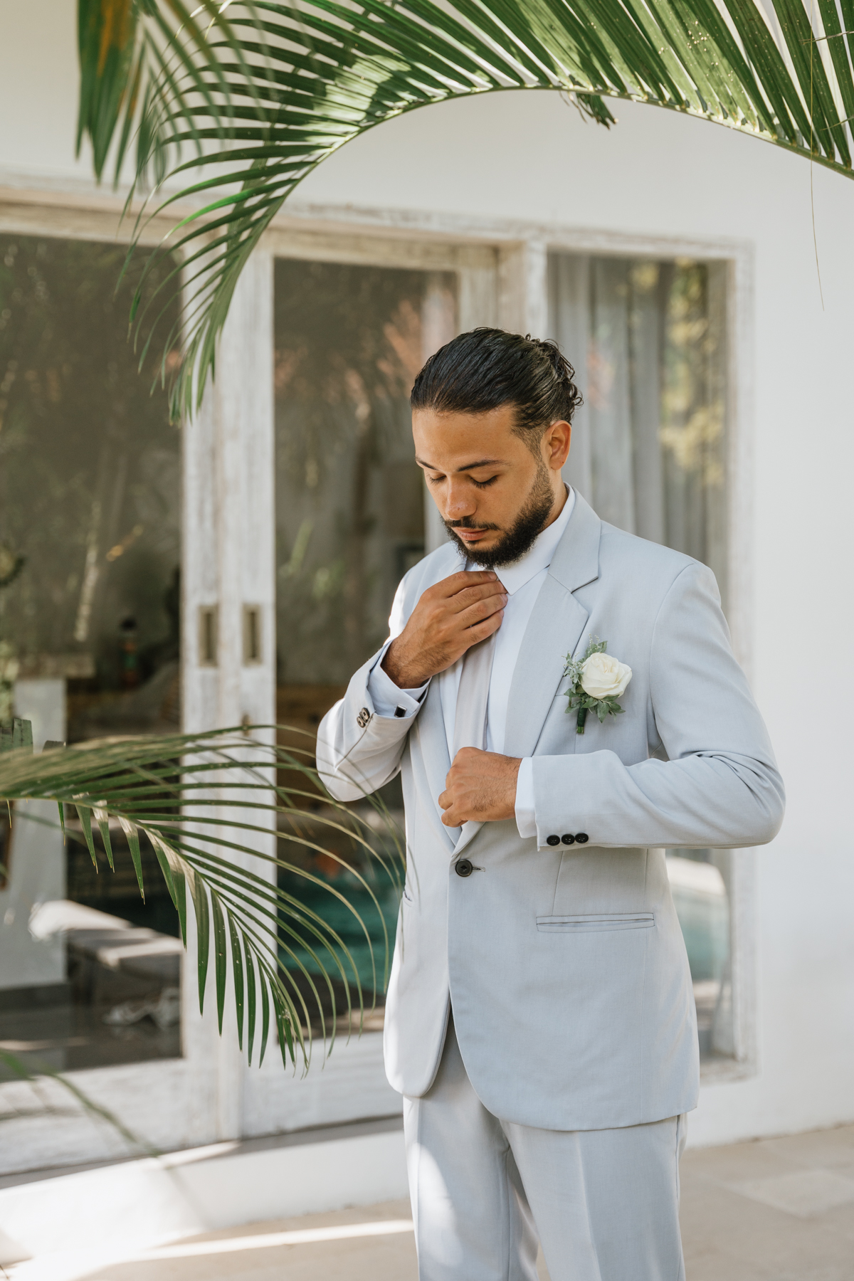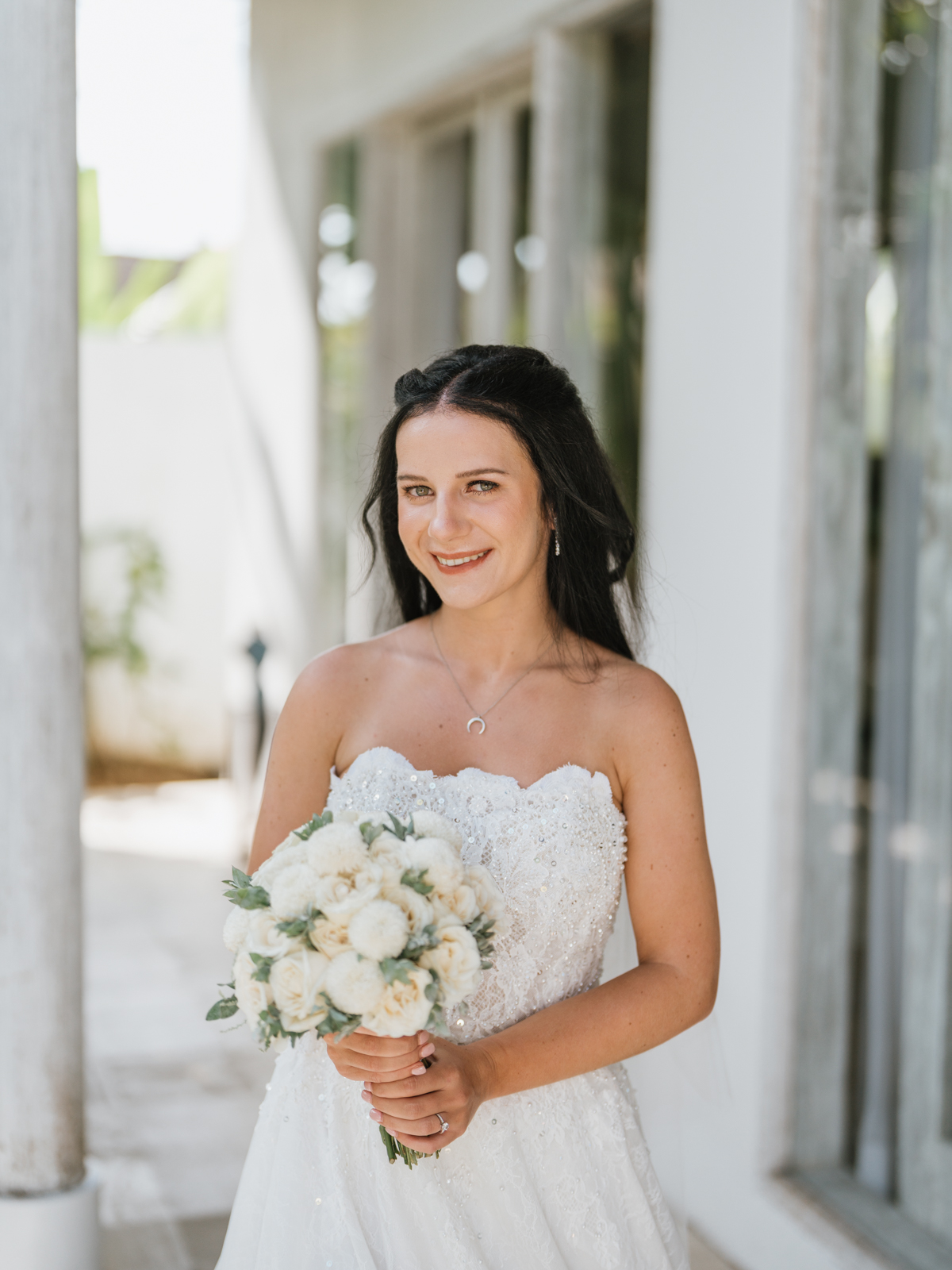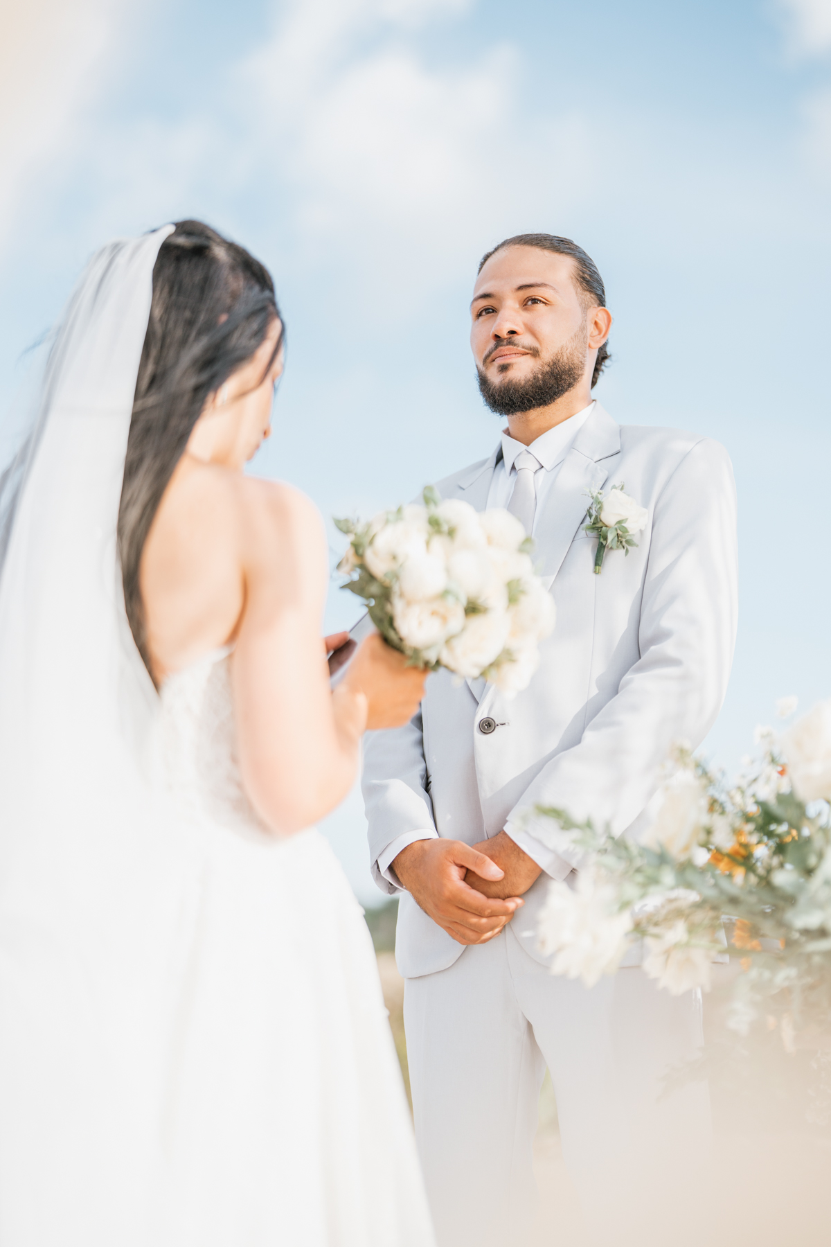 La journée a commencé dans leur villa, où une maquilleuse-coiffeuse professionnelle a pris soin de la mise en beauté d’Estelle. Dans une atmosphère calme et détendue, le couple a pu se préparer avec tout le confort et le luxe nécessaires, se laissant imprégner par la beauté des lieux et l’intensité de ce moment unique.