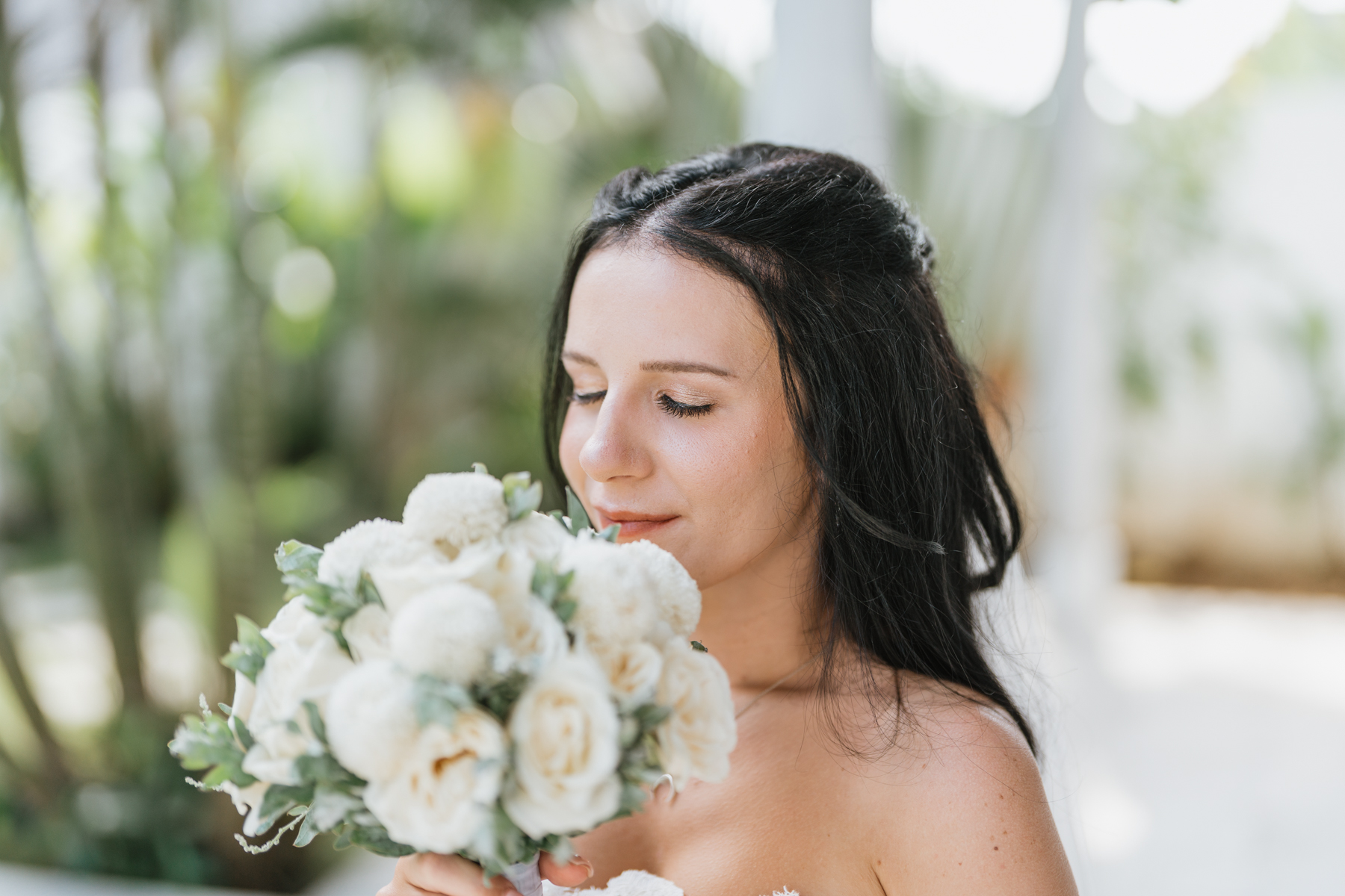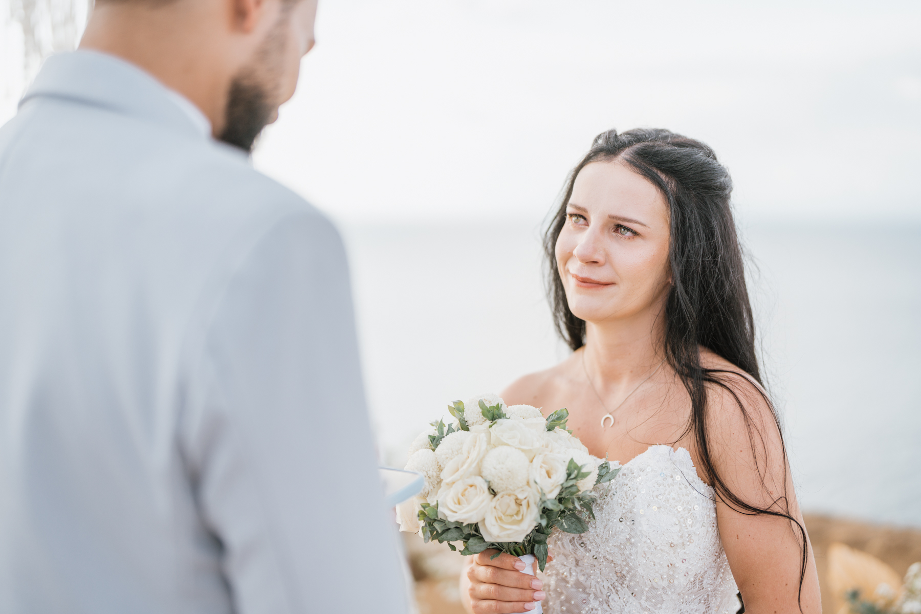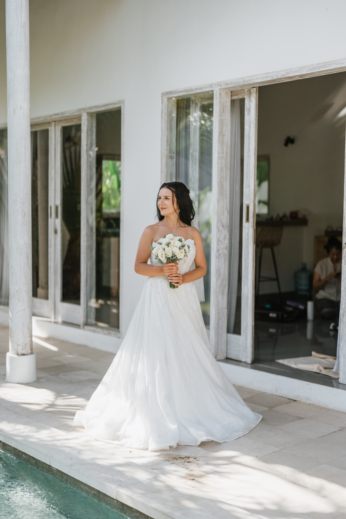 La journée a commencé dans leur villa, où une maquilleuse-coiffeuse professionnelle a pris soin de la mise en beauté d’Estelle. Dans une atmosphère calme et détendue, le couple a pu se préparer avec tout le confort et le luxe nécessaires, se laissant imprégner par la beauté des lieux et l’intensité de ce moment unique.
