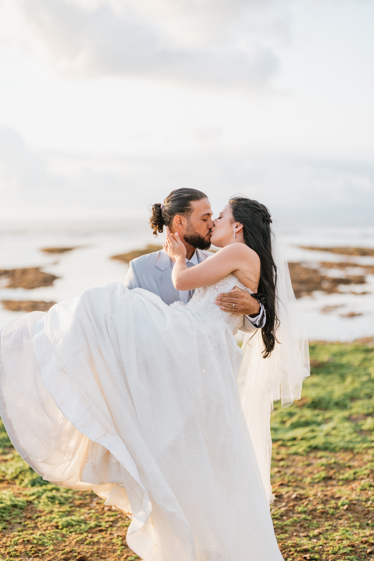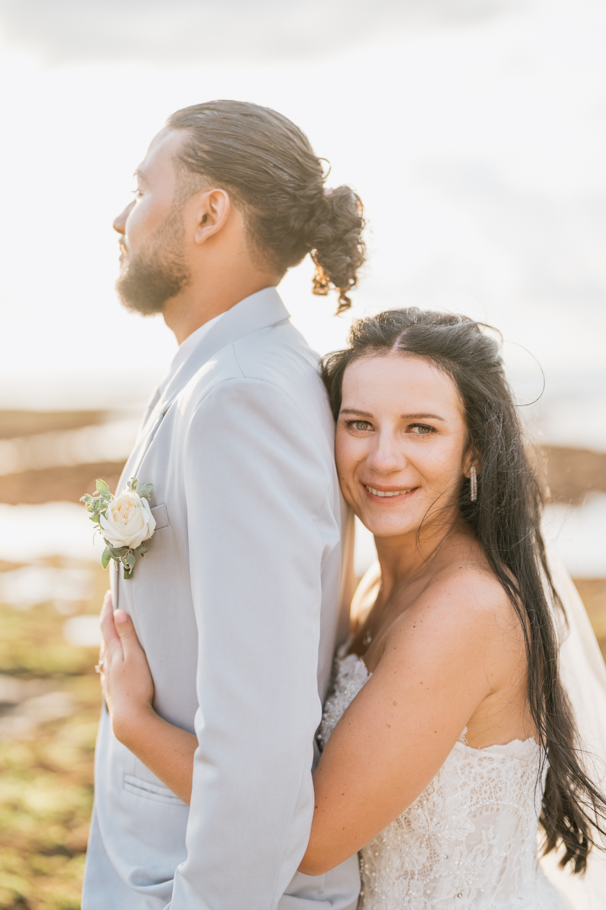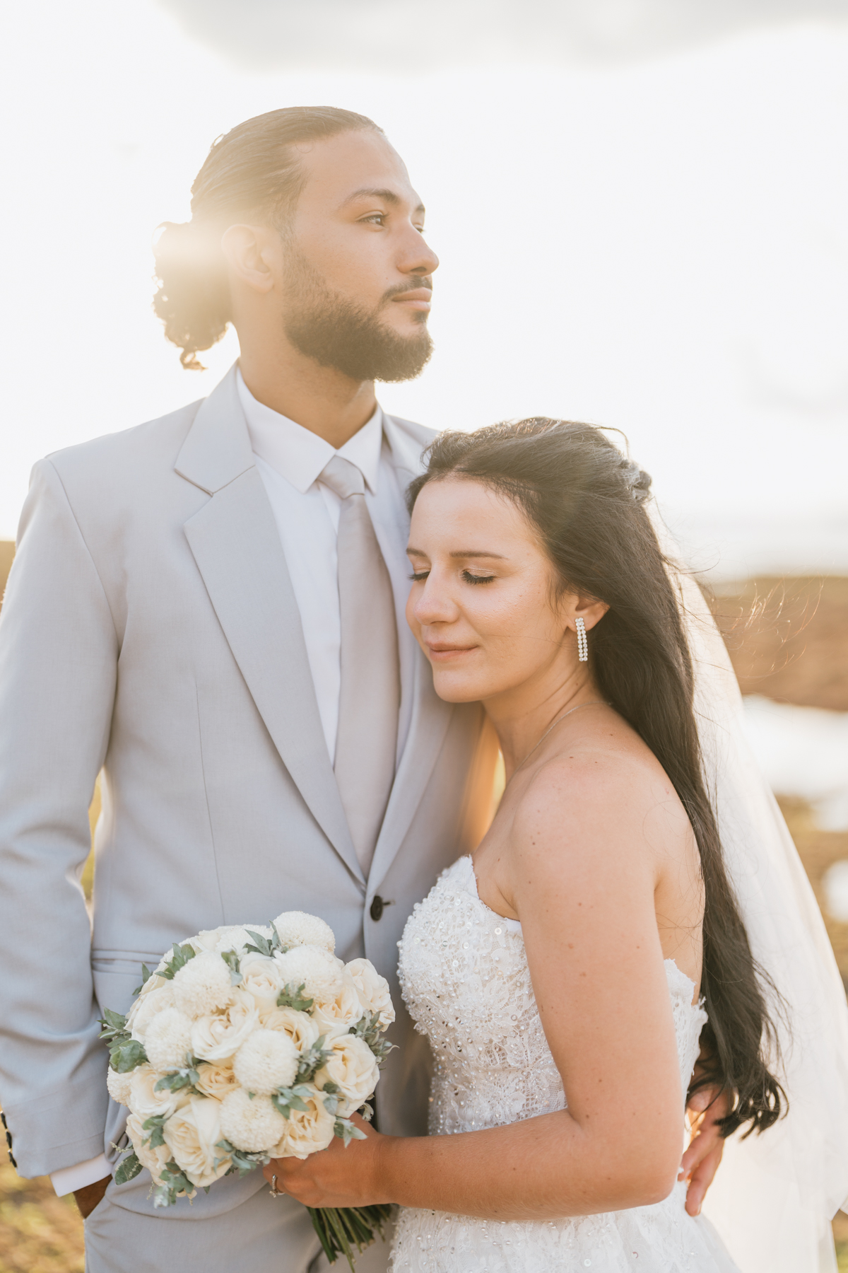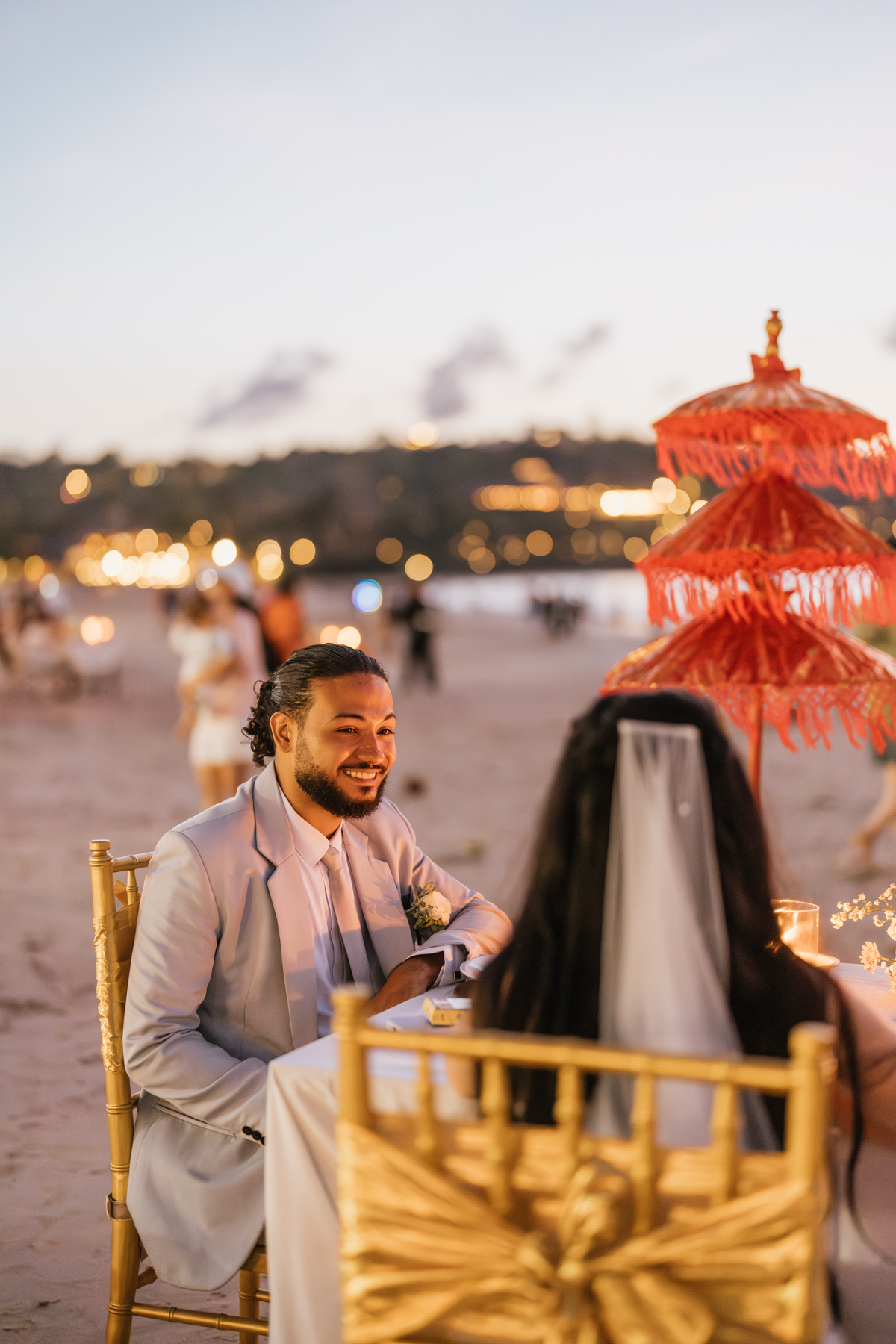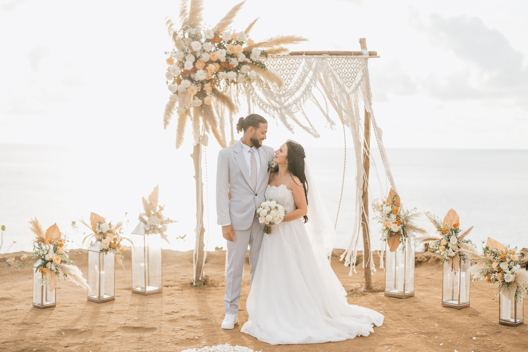 Après la cérémonie, les nouveaux mariés ont pu immortaliser leur amour au cours d’une séance photo sur une plage voisine, alors que le soleil se couchait à l’horizon, teintant le ciel de couleurs dorées et rosées. La lumière douce du crépuscule a offert un cadre idéal pour des photos inoubliables, capturant l’essence et la beauté de leur amour.