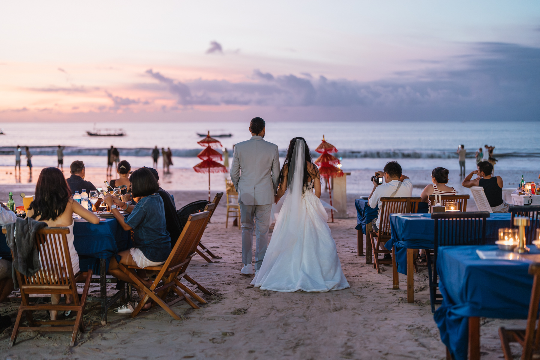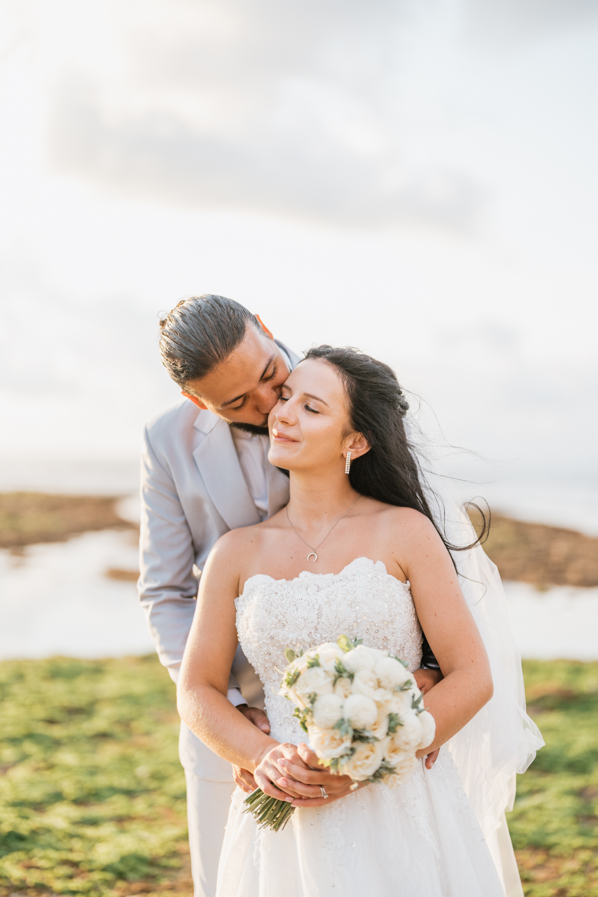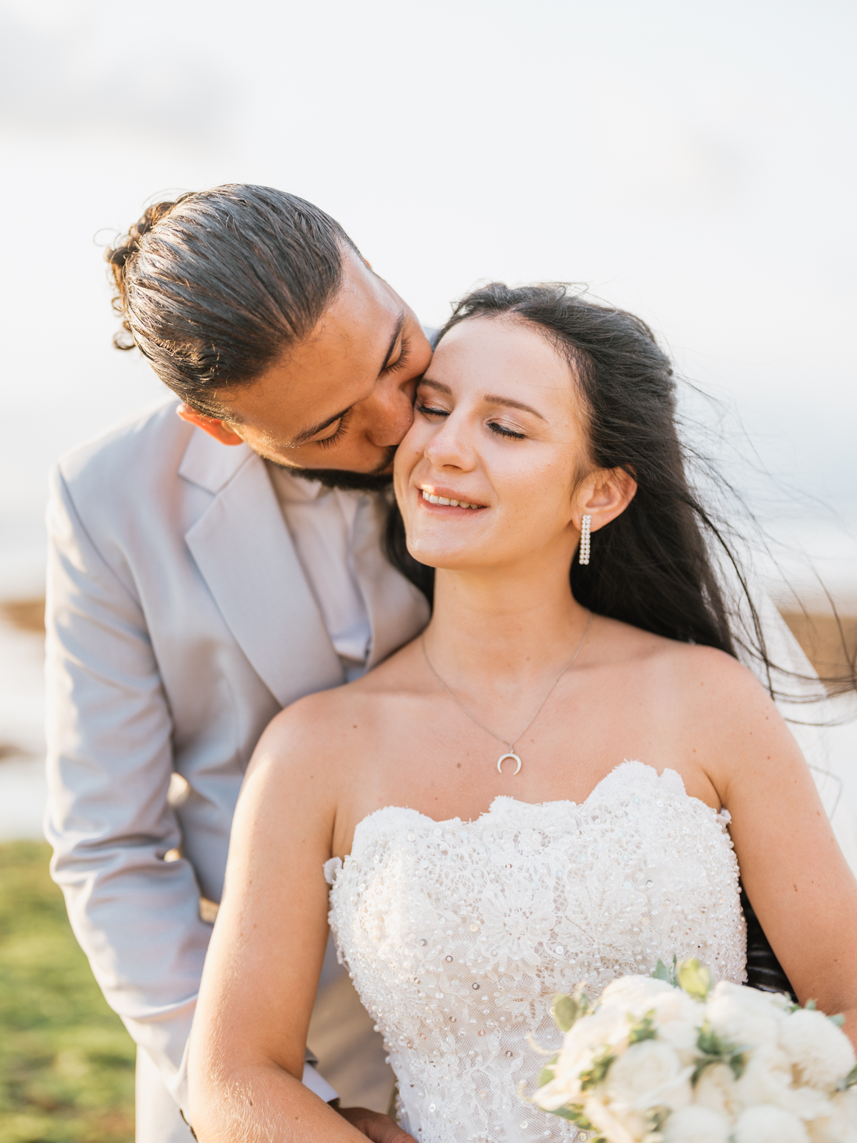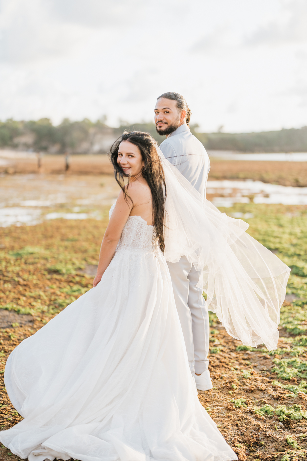 Après la cérémonie, les nouveaux mariés ont pu immortaliser leur amour au cours d’une séance photo sur une plage voisine, alors que le soleil se couchait à l’horizon, teintant le ciel de couleurs dorées et rosées. La lumière douce du crépuscule a offert un cadre idéal pour des photos inoubliables, capturant l’essence et la beauté de leur amour.