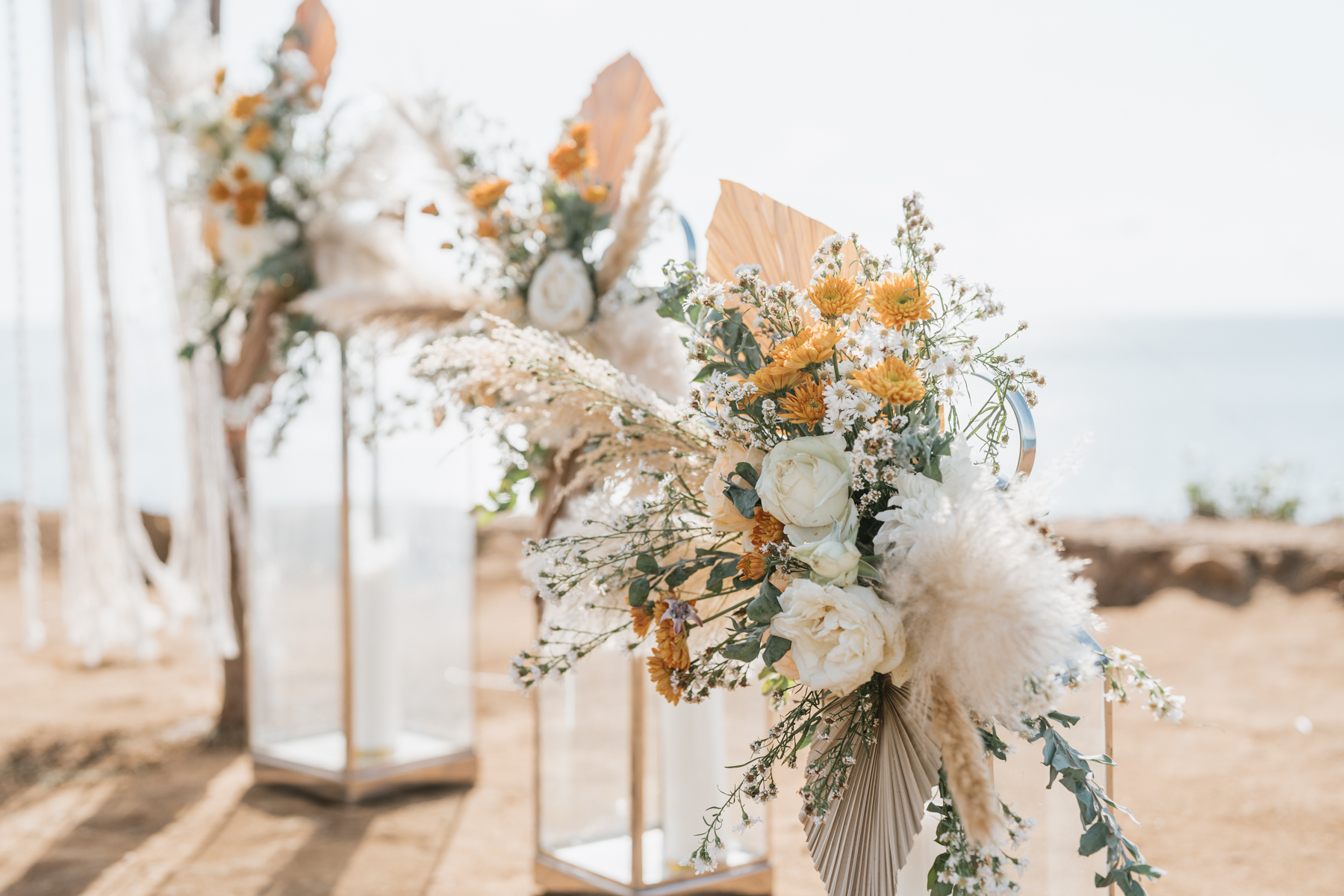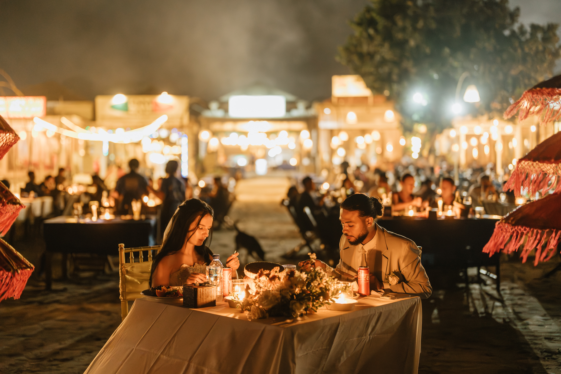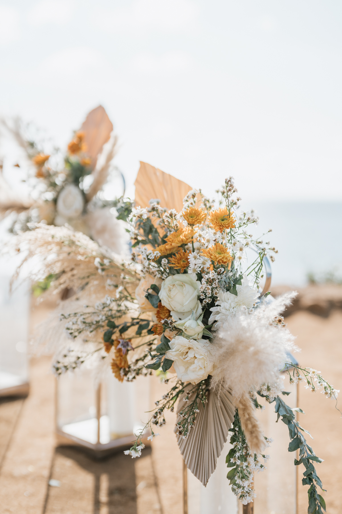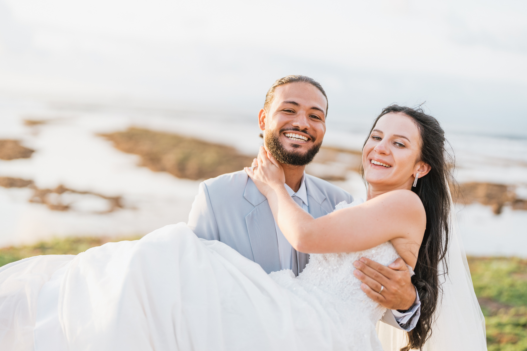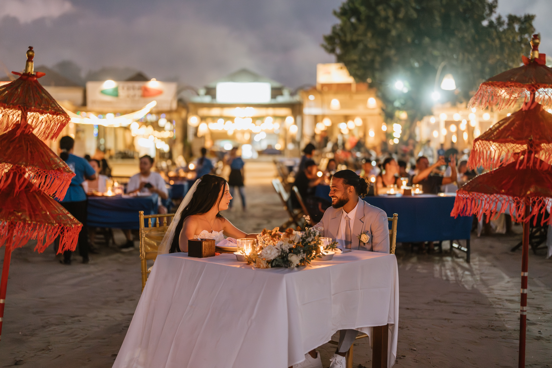 Après la cérémonie, les nouveaux mariés ont pu immortaliser leur amour au cours d’une séance photo sur une plage voisine, alors que le soleil se couchait à l’horizon, teintant le ciel de couleurs dorées et rosées. La lumière douce du crépuscule a offert un cadre idéal pour des photos inoubliables, capturant l’essence et la beauté de leur amour.
